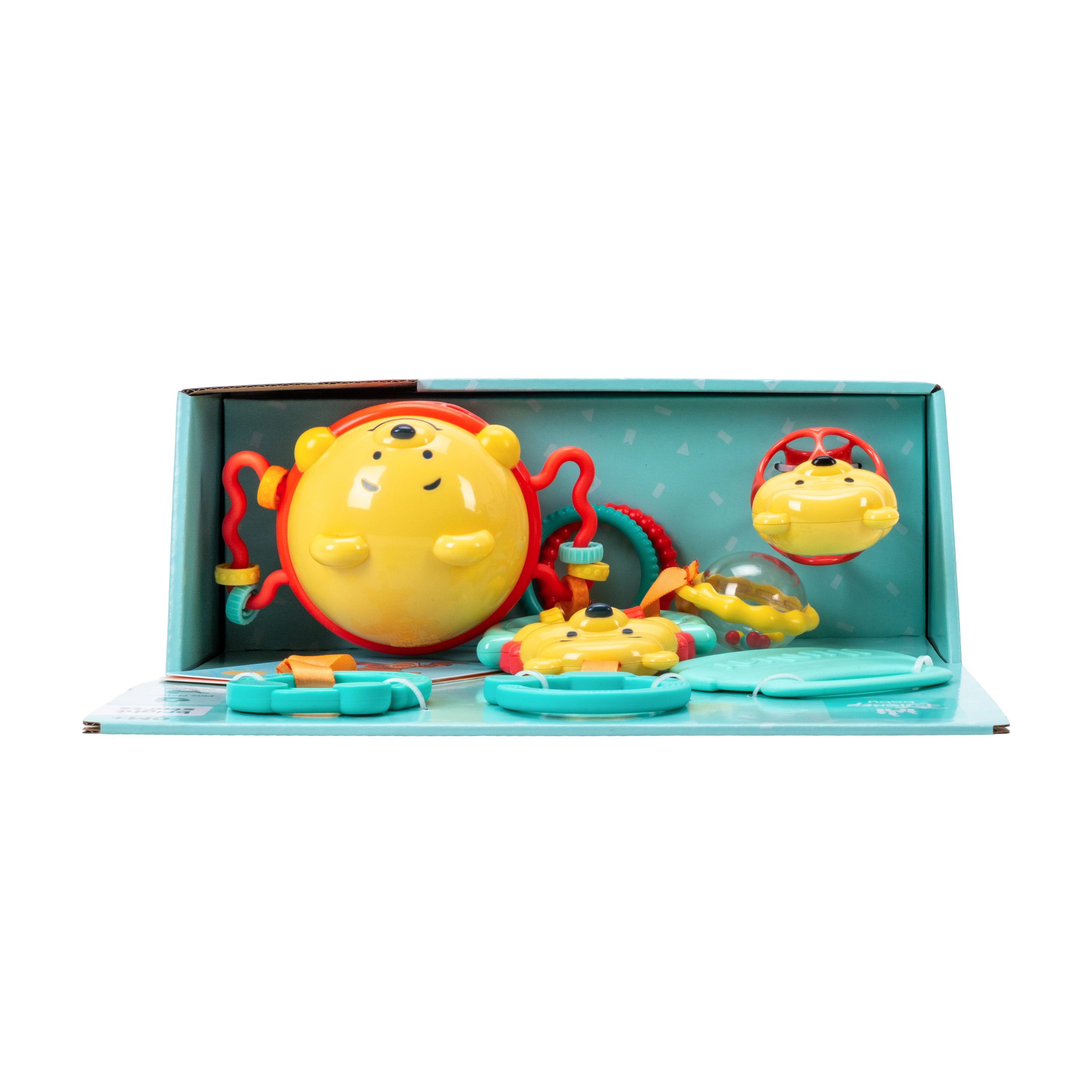 - Fomenta las habilidades motoras finas del bebé, como el agarre con los dedos; los juguetes sensoriales para bebés proporcionan estimulación multisensorial, incluyendo auditiva, visual y táctil; alcanza hitos clave del desarrollo durante el tiempo de juego.