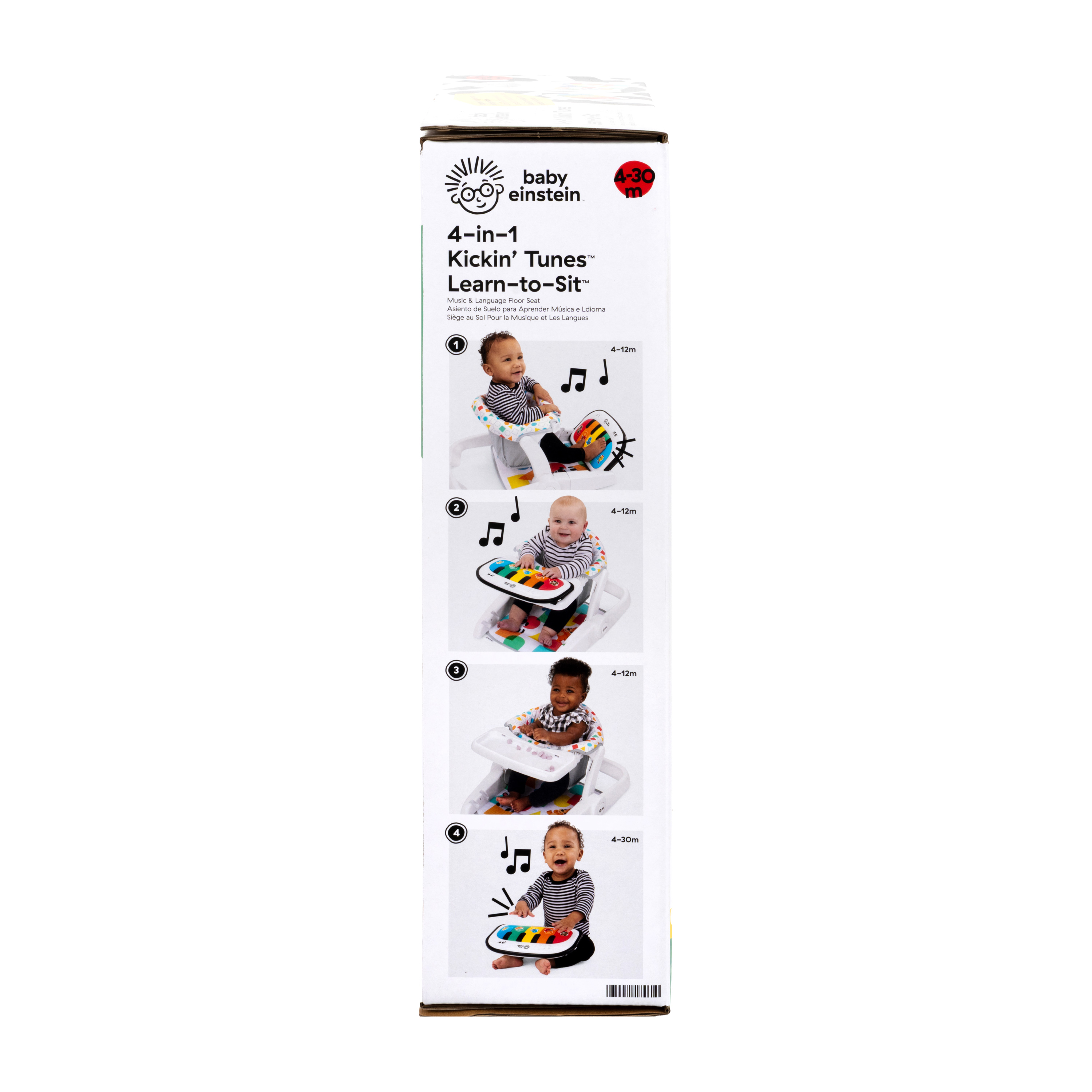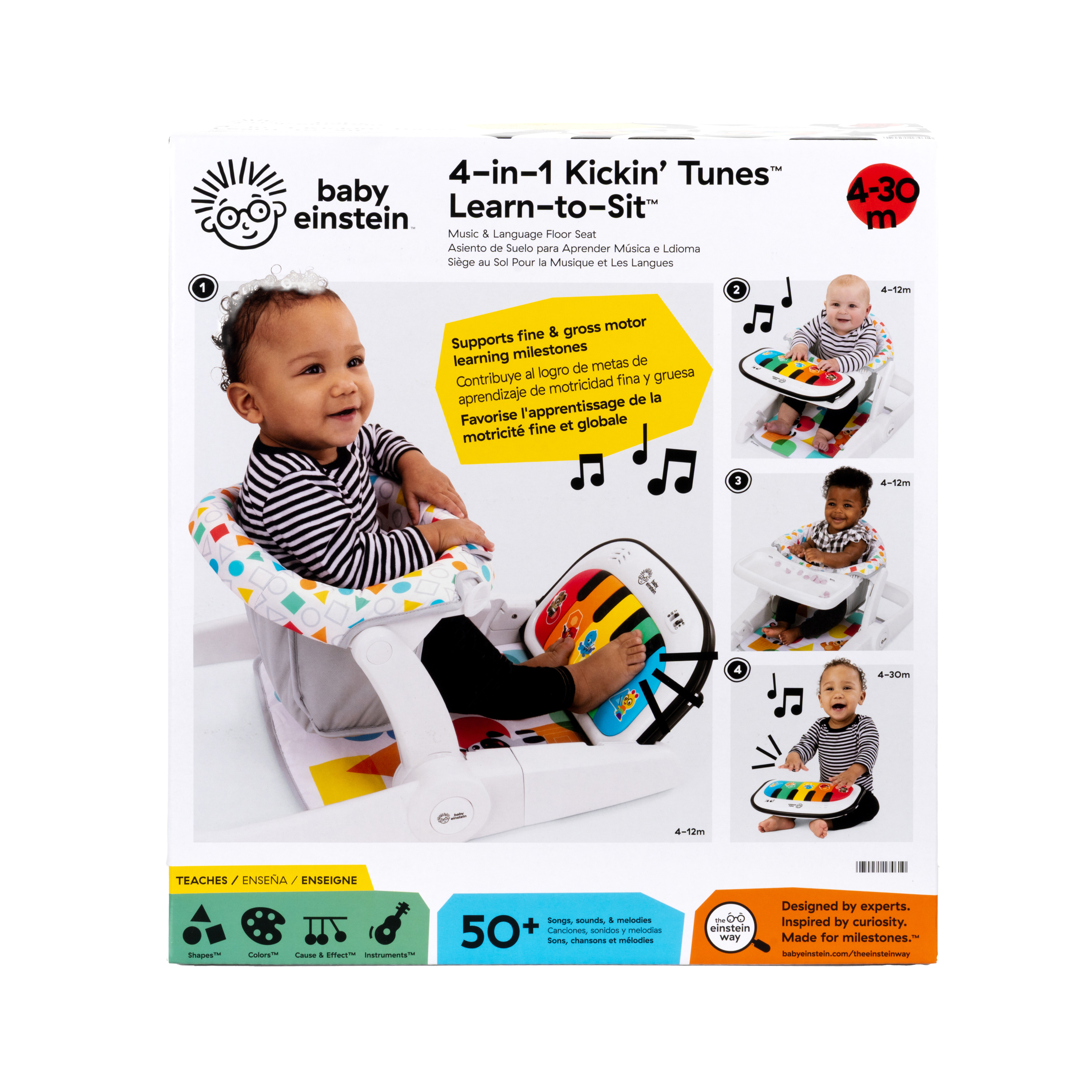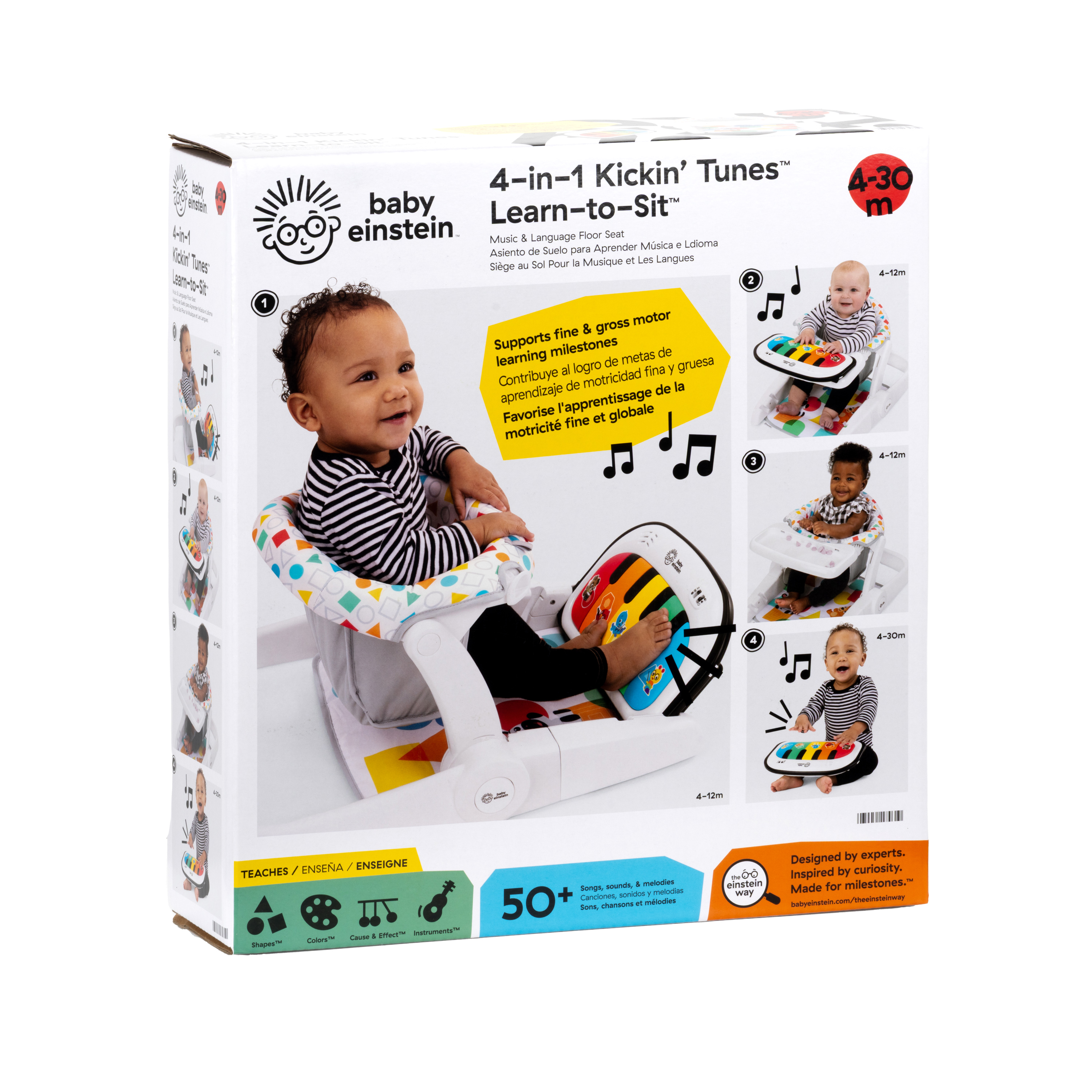 - El asiento de piso 4-en-1 Kickin' Tunes Learn-to-Sit Music & Language de Baby Einstein acompaña a tu bebé mientras aprende a sentarse por sí solo; el juguete desmontable estimula su aprendizaje y desarrollo