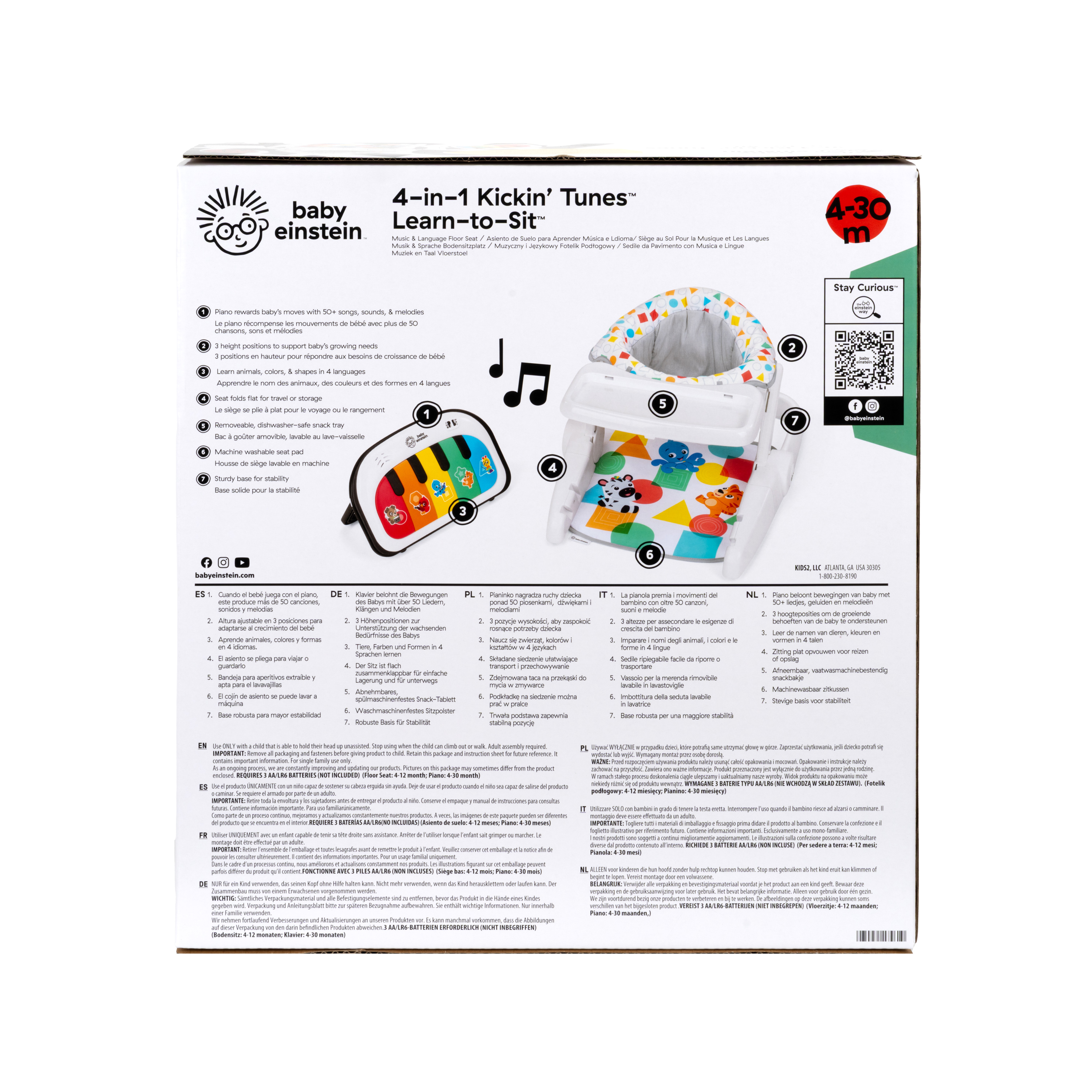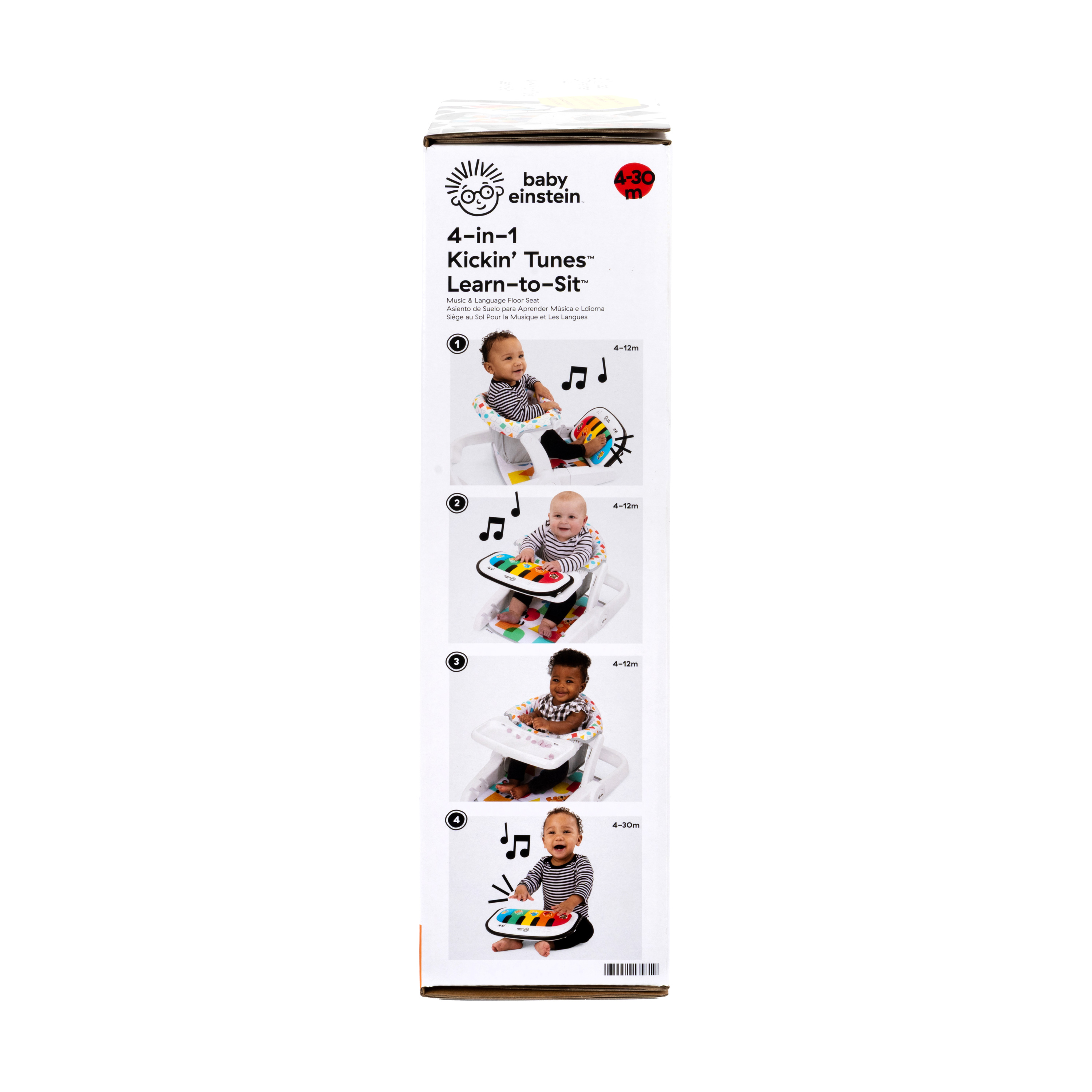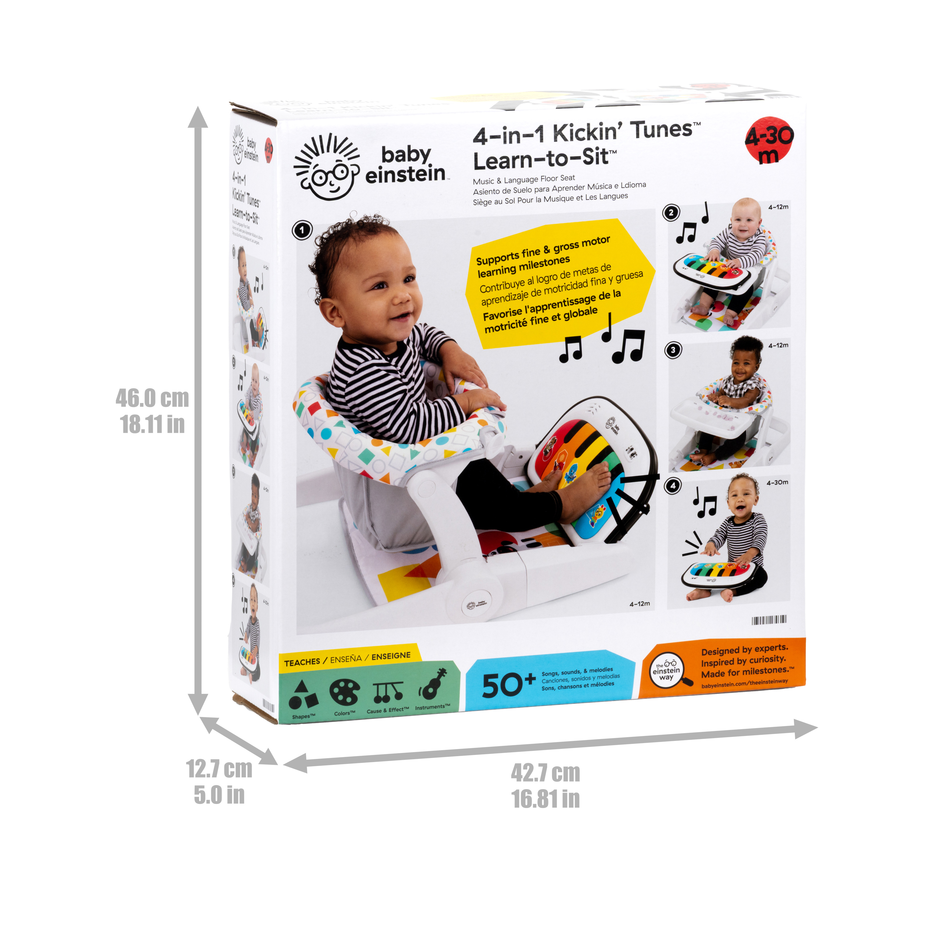 - El asiento de piso 4-en-1 Kickin' Tunes Learn-to-Sit Music & Language de Baby Einstein acompaña a tu bebé mientras aprende a sentarse por sí solo; el juguete desmontable estimula su aprendizaje y desarrollo