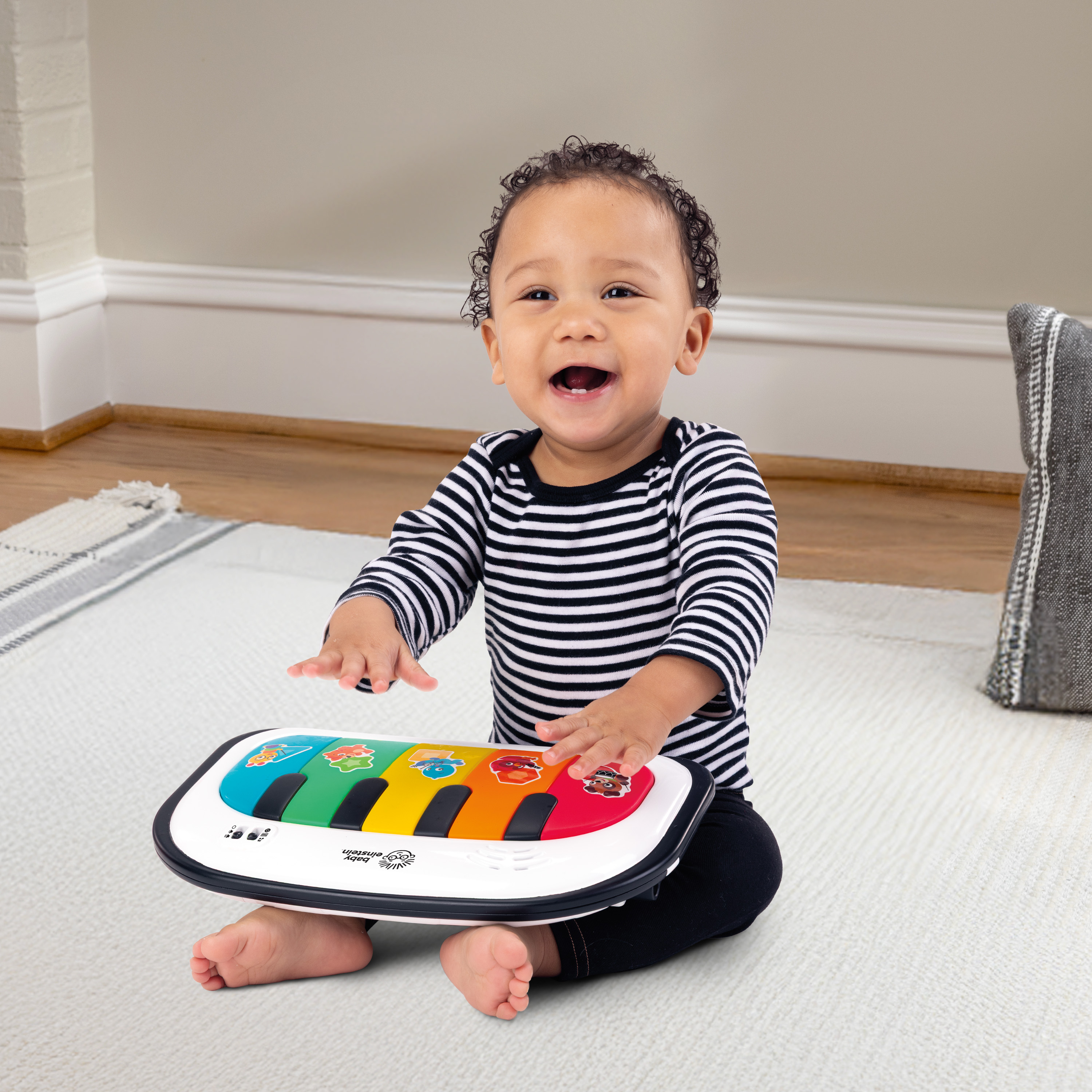 - El piano para patear incluye más de 50 canciones, sonidos y frases; a medida que tu bebé crece, el piano también se puede colocar sobre la bandeja o desmontar para jugar en el piso o llevarlo a todas partes