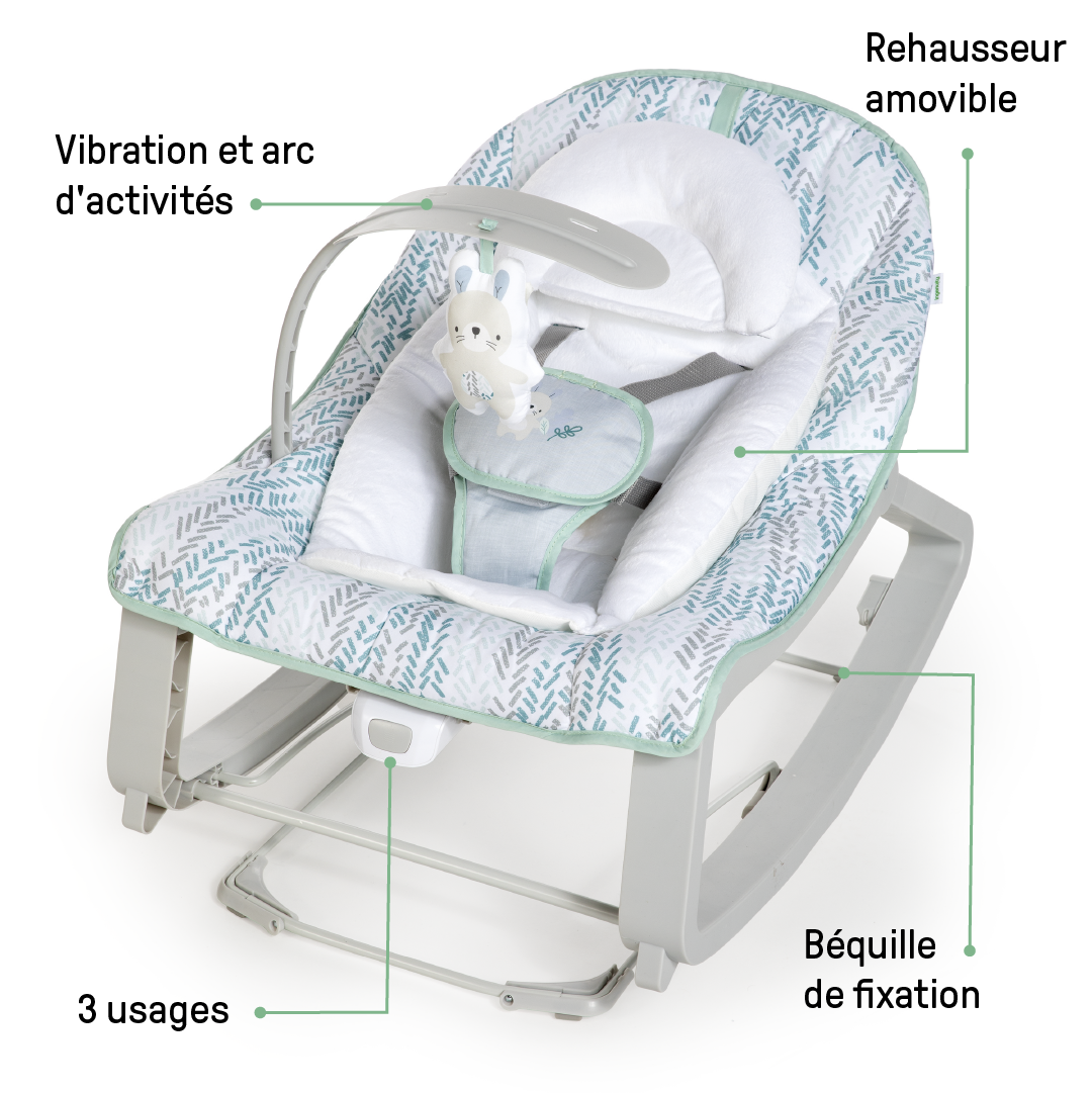 - 3 modes d'utilisation : balancement relax, balancement rapide, position fixe