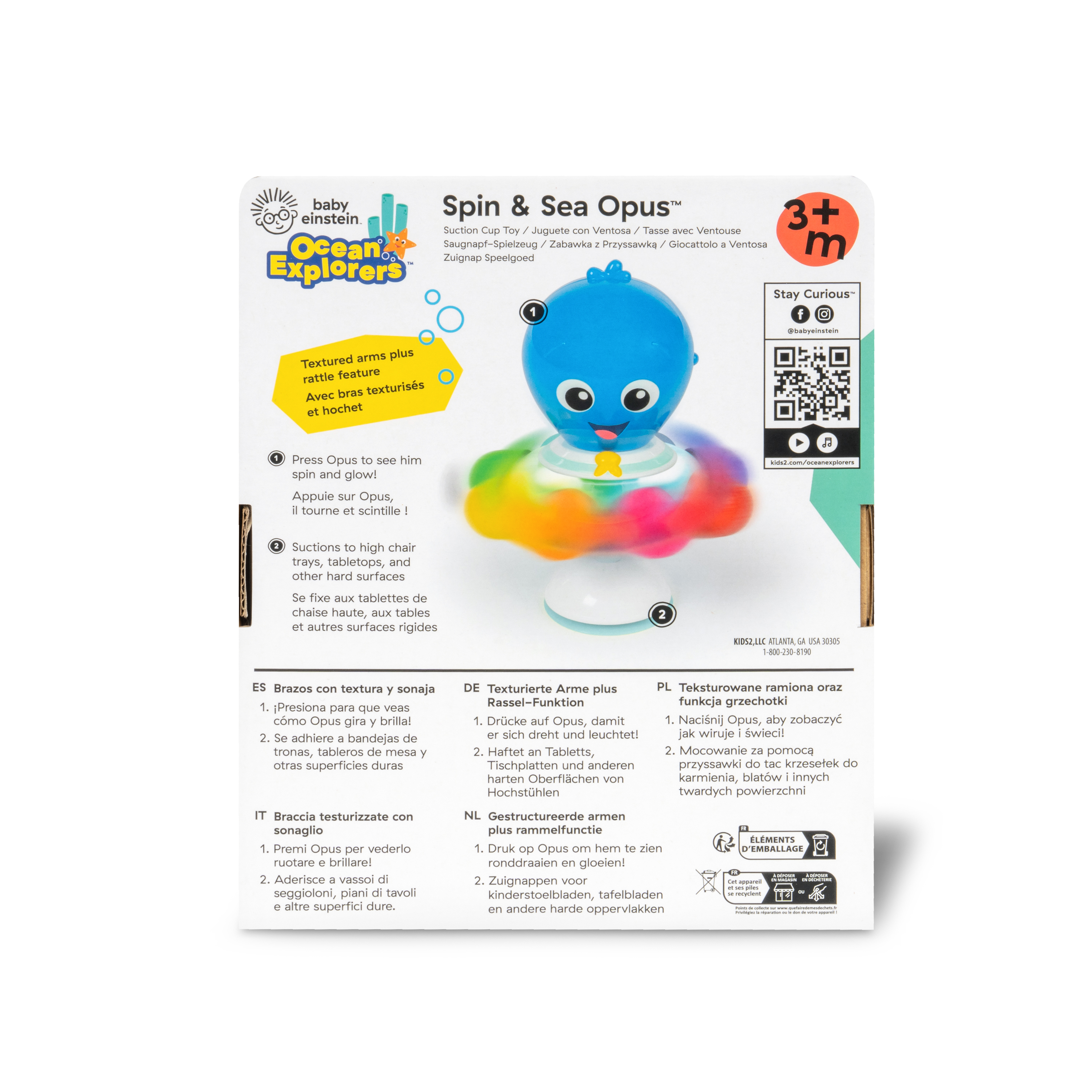 - Avec le jouet activités marines Ocean Explorers Opus Spin & Sea Activity Toy de Baby Einstein bébé développe ses sens à la maison ou en promenade avec les lumières, hochets, tentacules texturisées et couleurs vives.