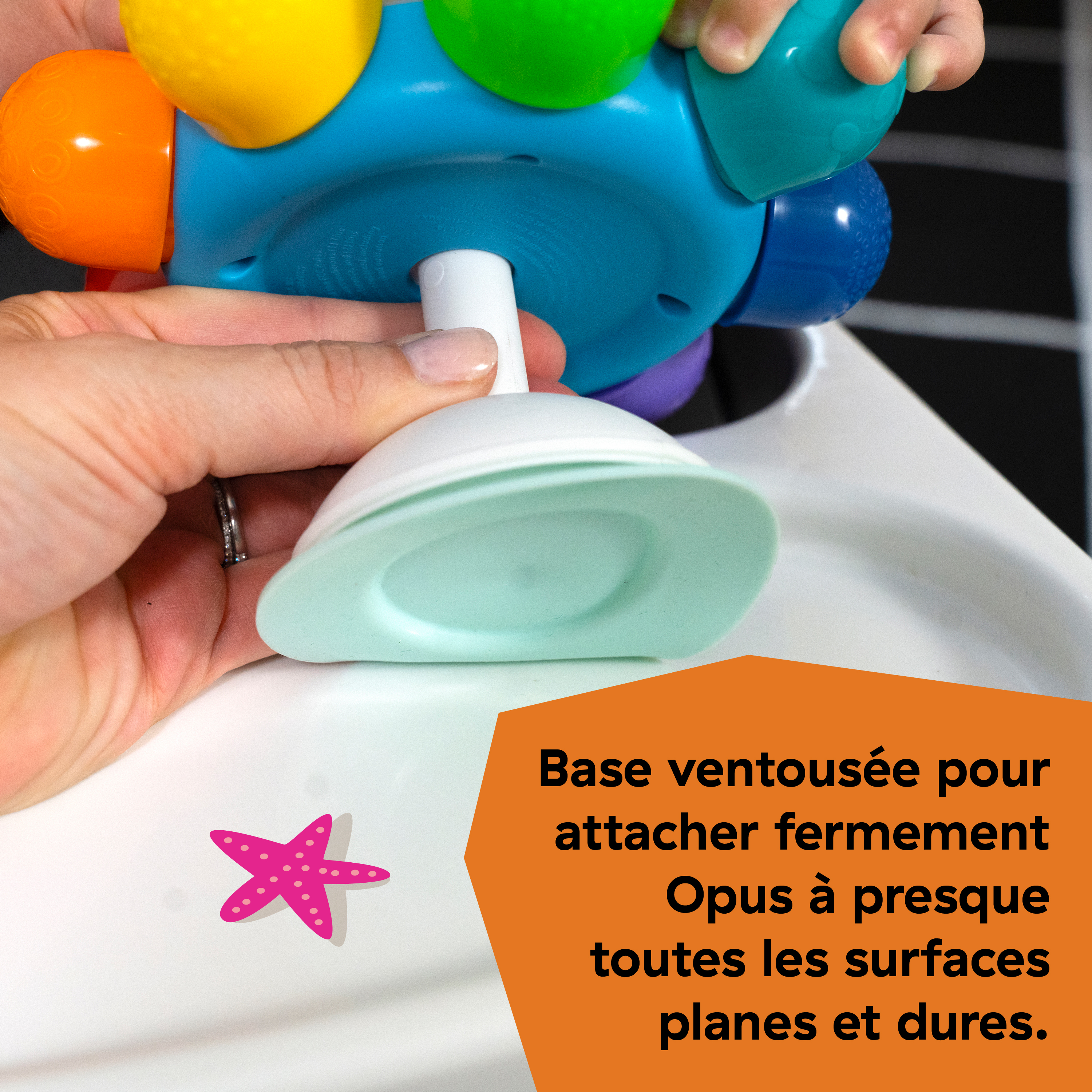 - Base ventousée s'attachant fermement à pratiquement toutes les surfaces planes et dures pour des heures de jeux à la maison ou en déplacement.