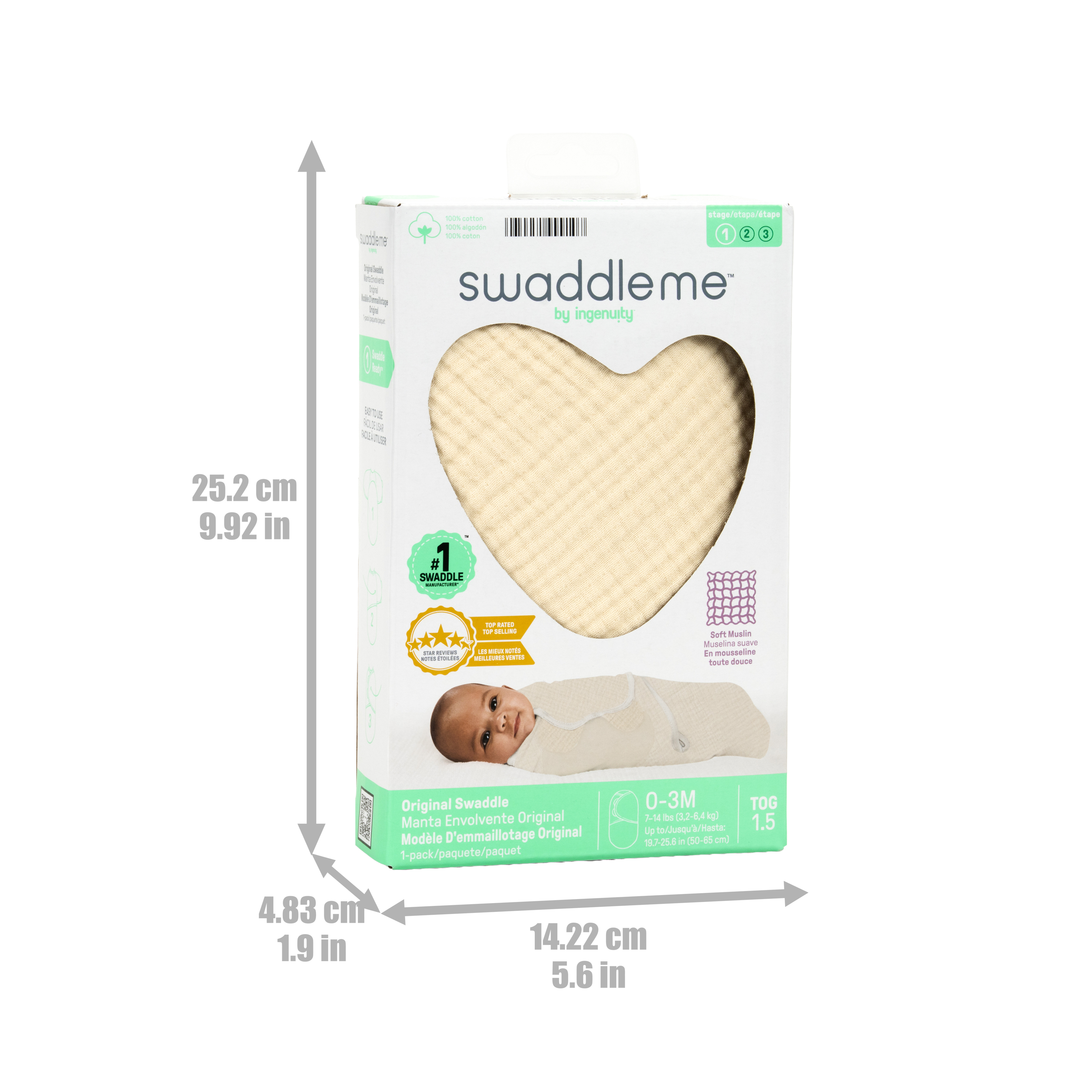 - Votre petit trésor est calme et se sent bien dans son nouveau SwaddleMe by Ingenuity Original Swaddle, modèle petit/ moyen. Couverture d'emmaillotage pour enfants de 0 à 3 mois, 7 à 14 livres, et jusqu'à 26 pouces de long. 1.0 TOG