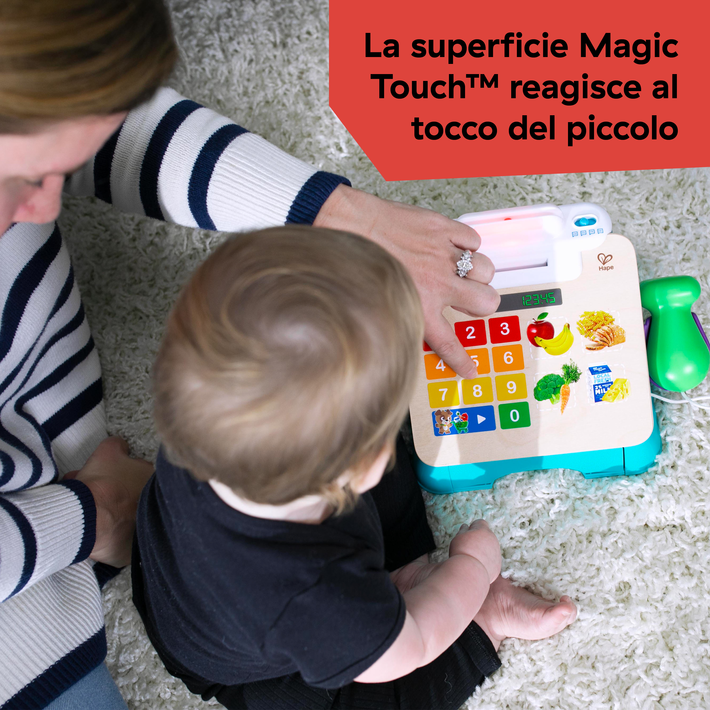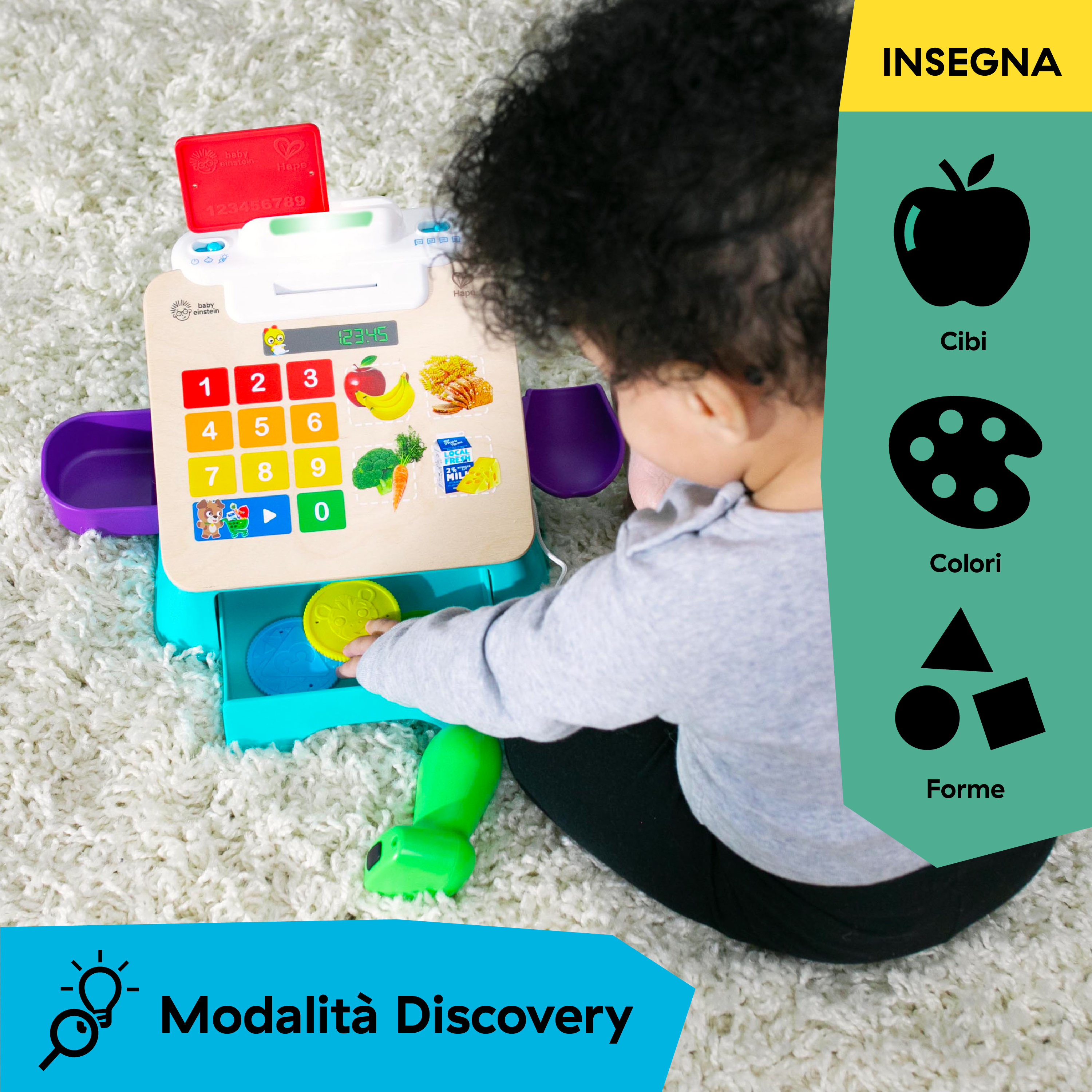 - Il registratore di cassa Magic Touch di Baby Einstein è un giocattolo con luci, musica, suoni e frasi che promuovono l'apprendimento del mondo reale e lo sviluppo delle capacità motorie dai 9 mesi 4 anni.