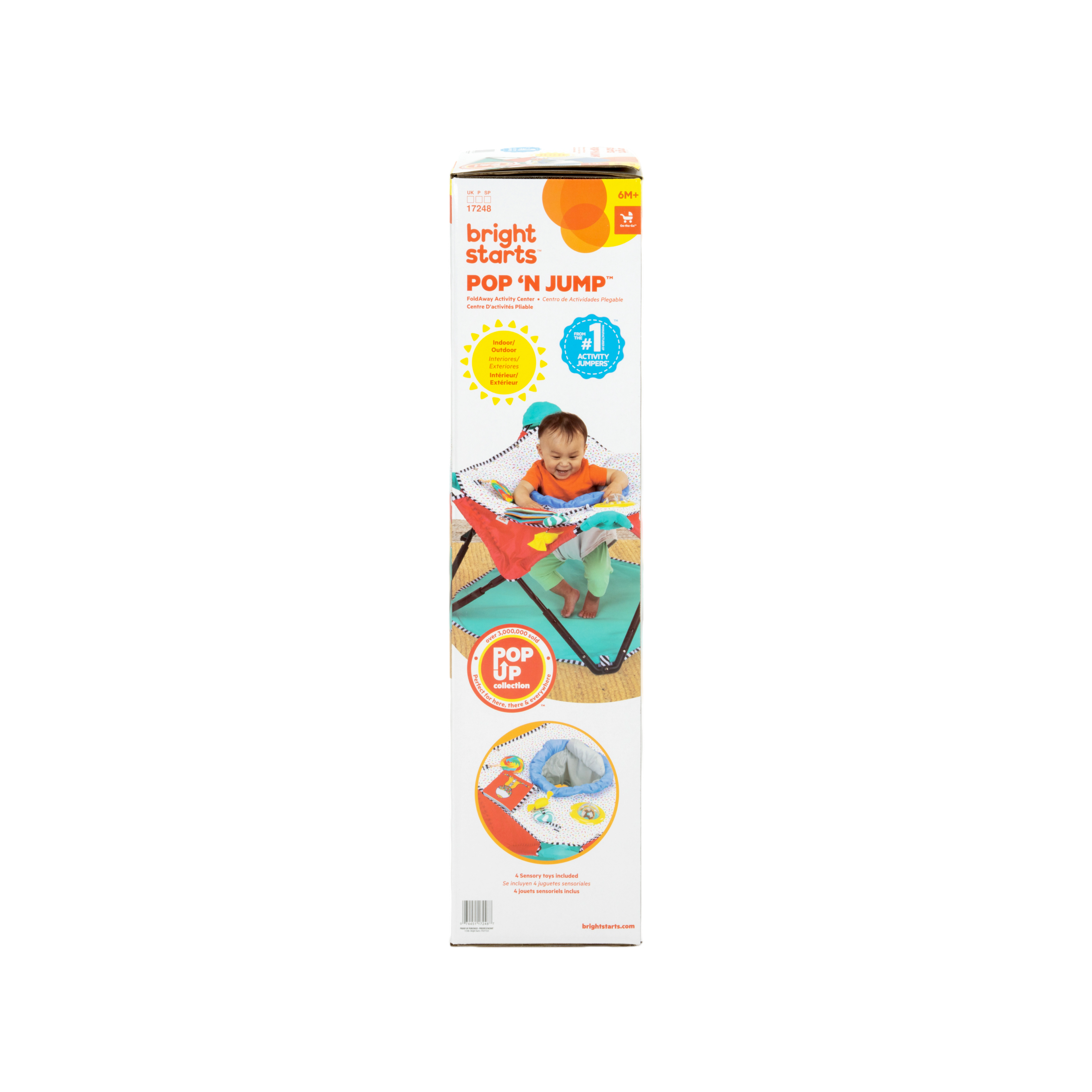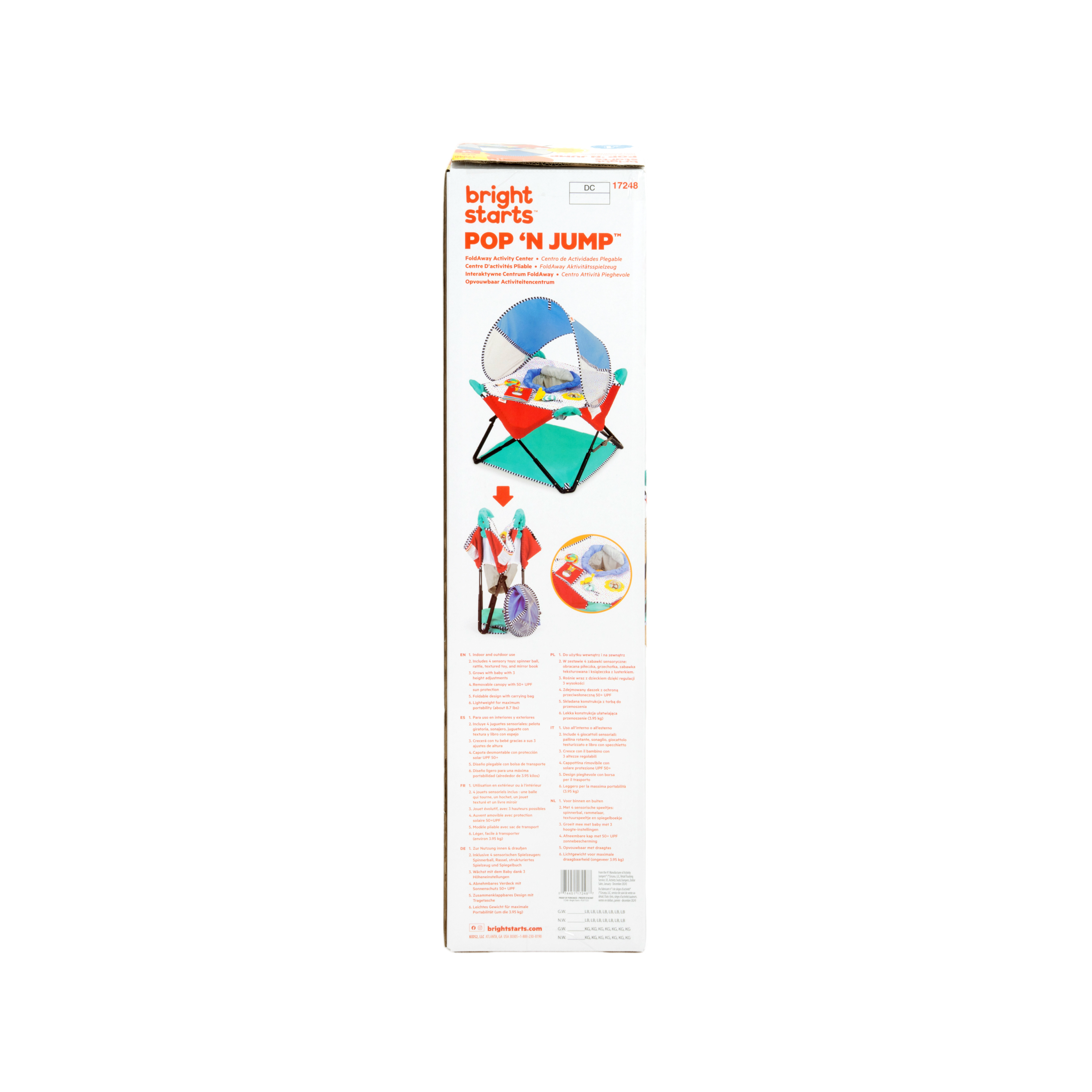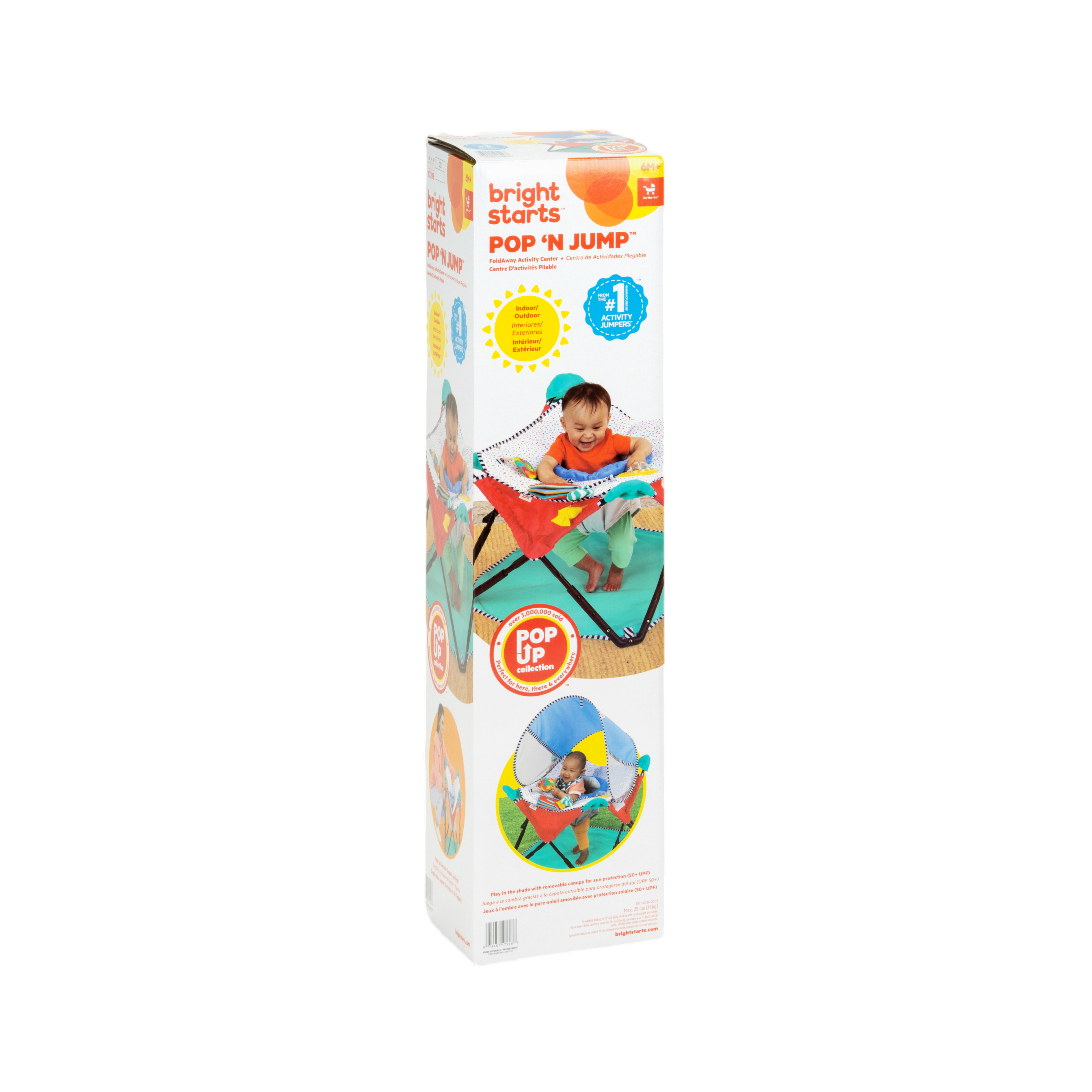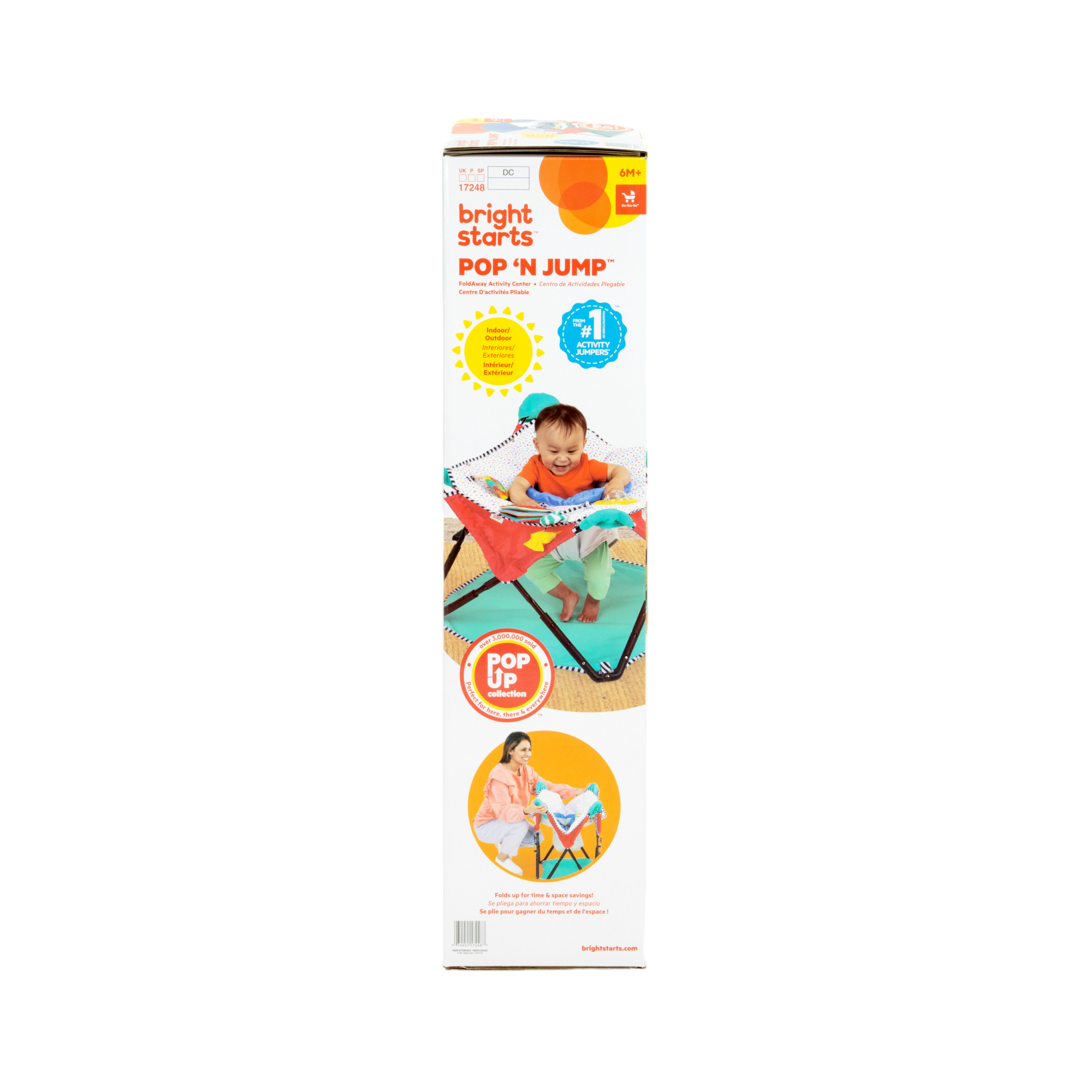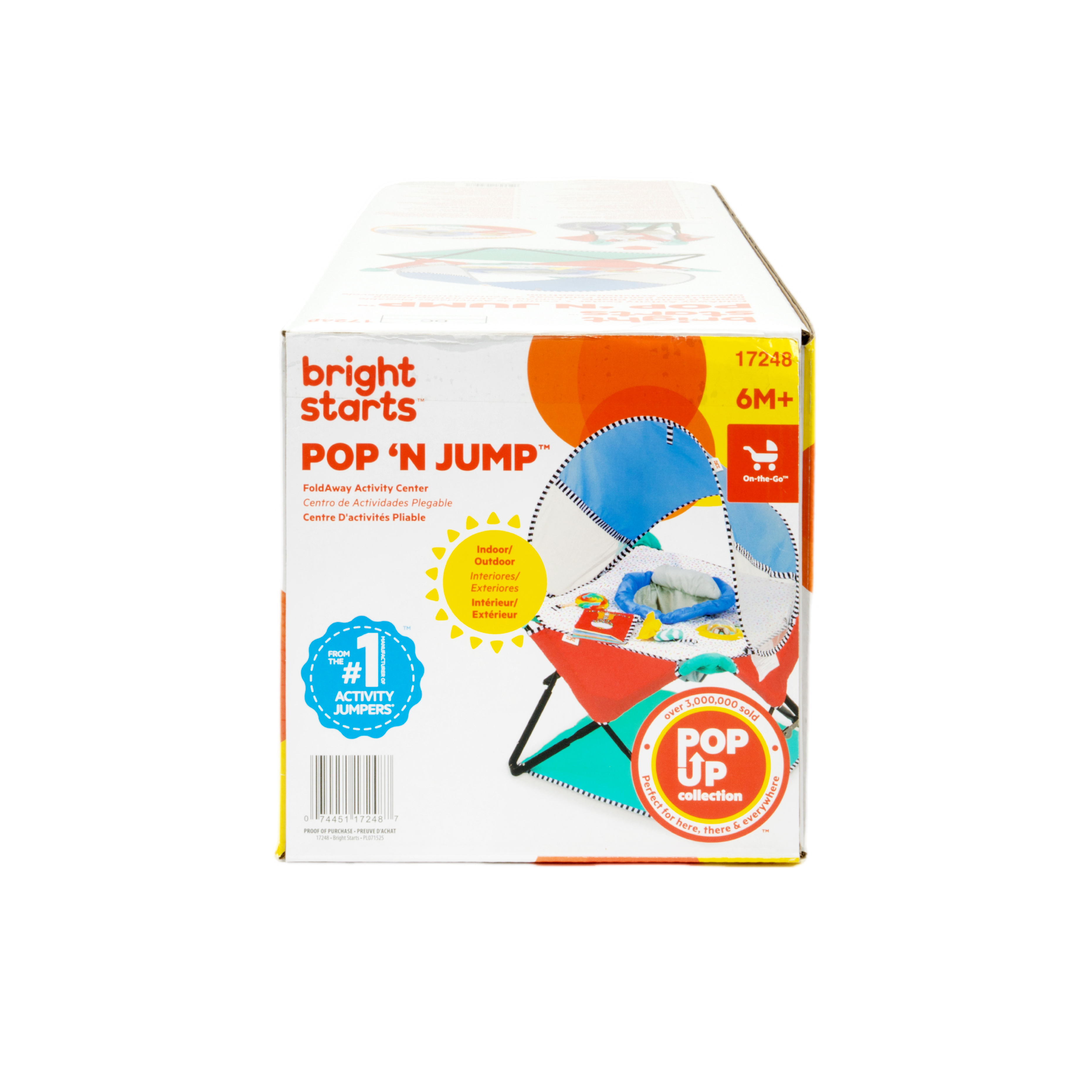 - Divertiti con l'innovativo jumper Pop 'N Jump di Bright Starts, caratterizzato da un pratico design pieghevole, ideale per l'uso in ambienti interni ed esterni e facile da trasportare