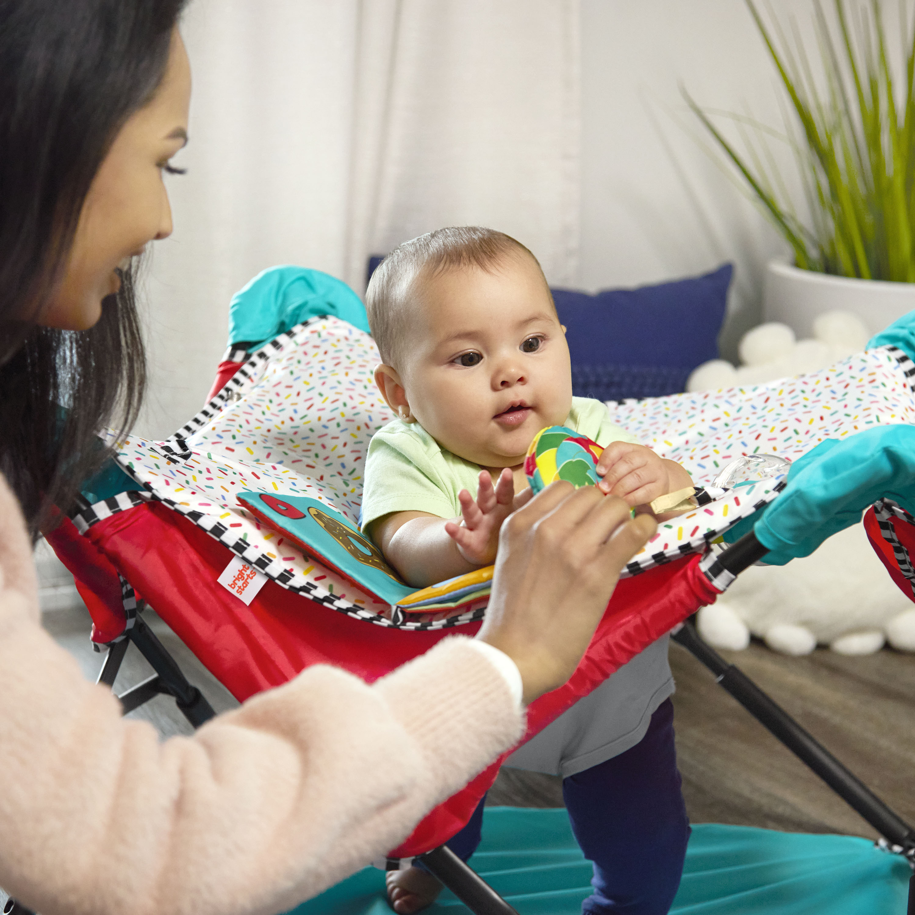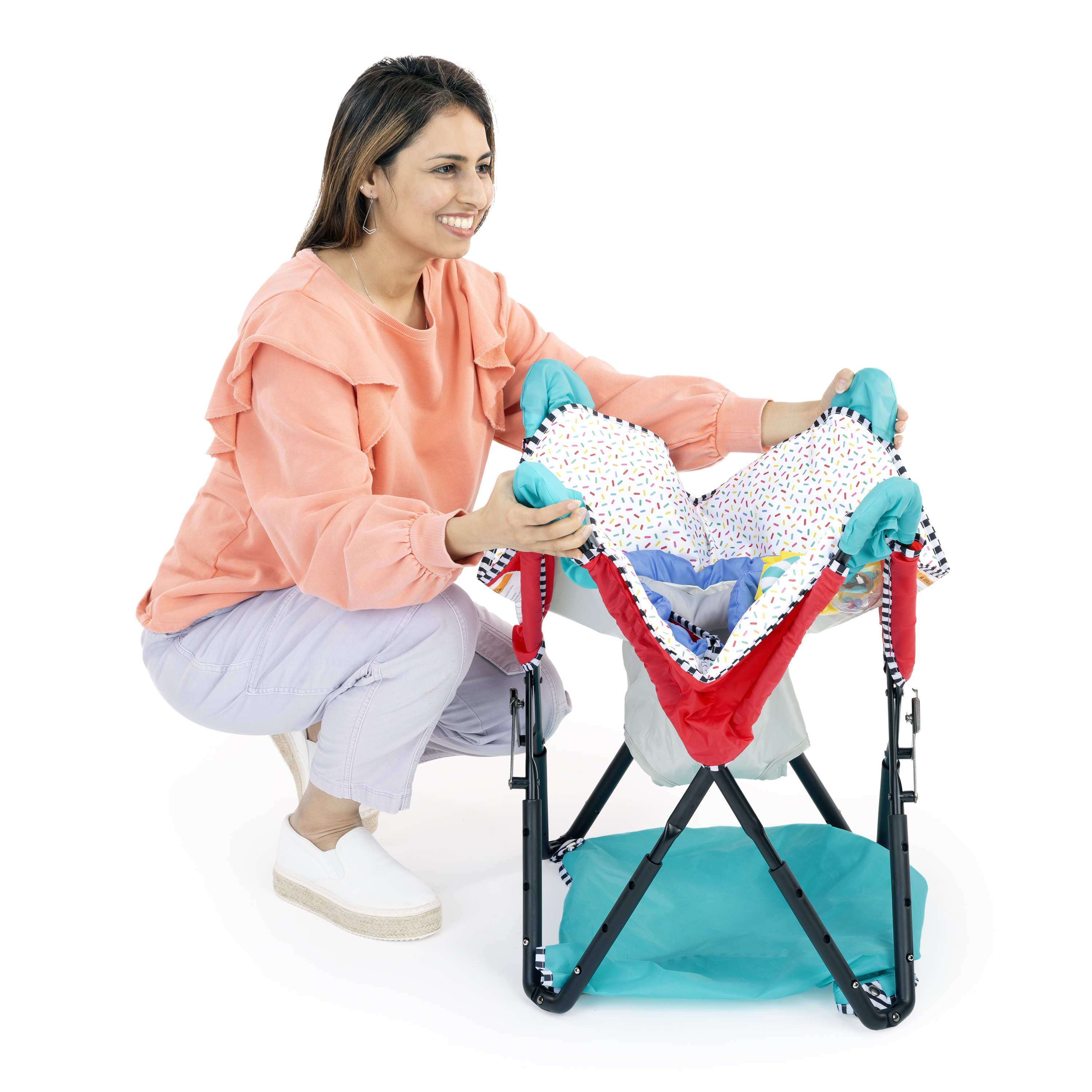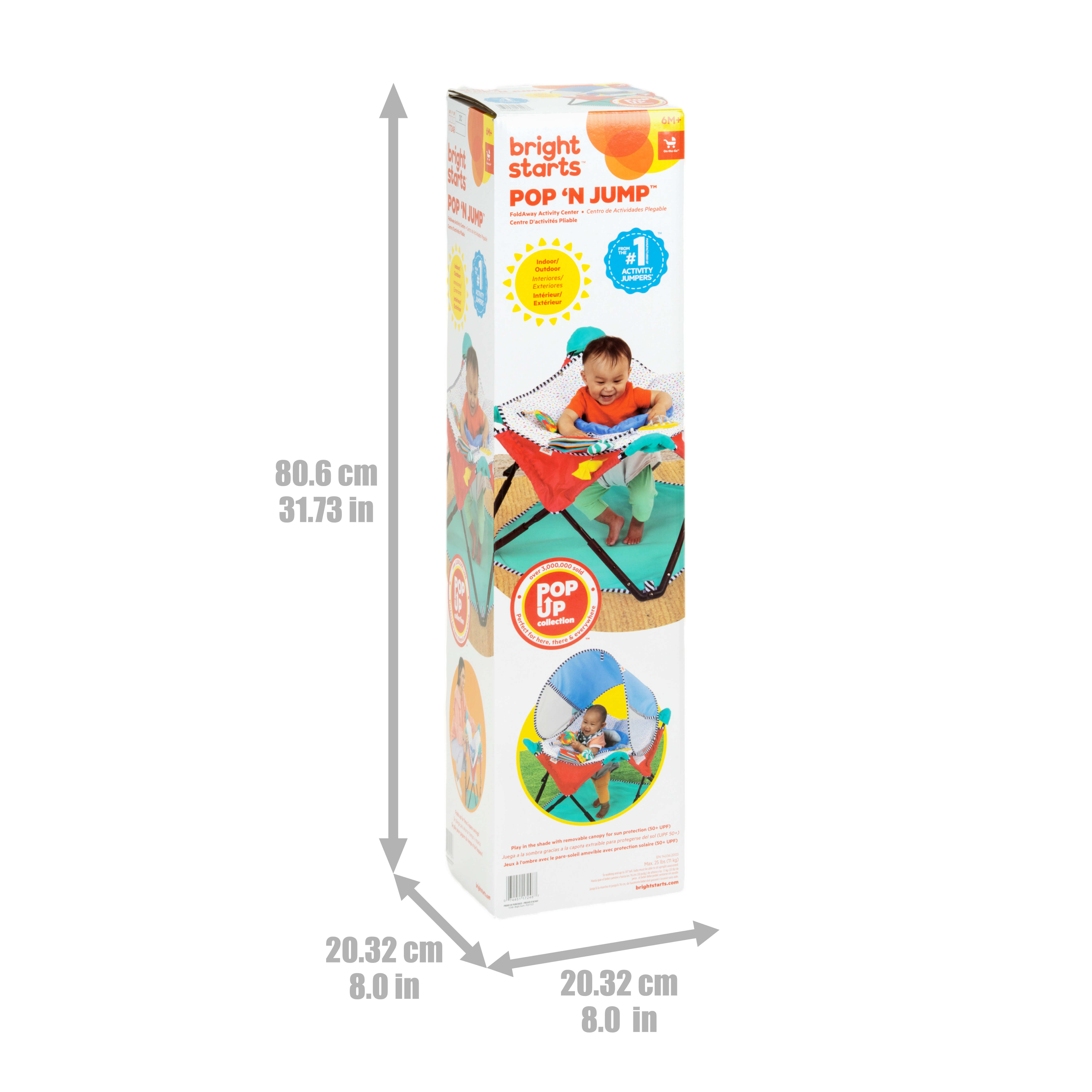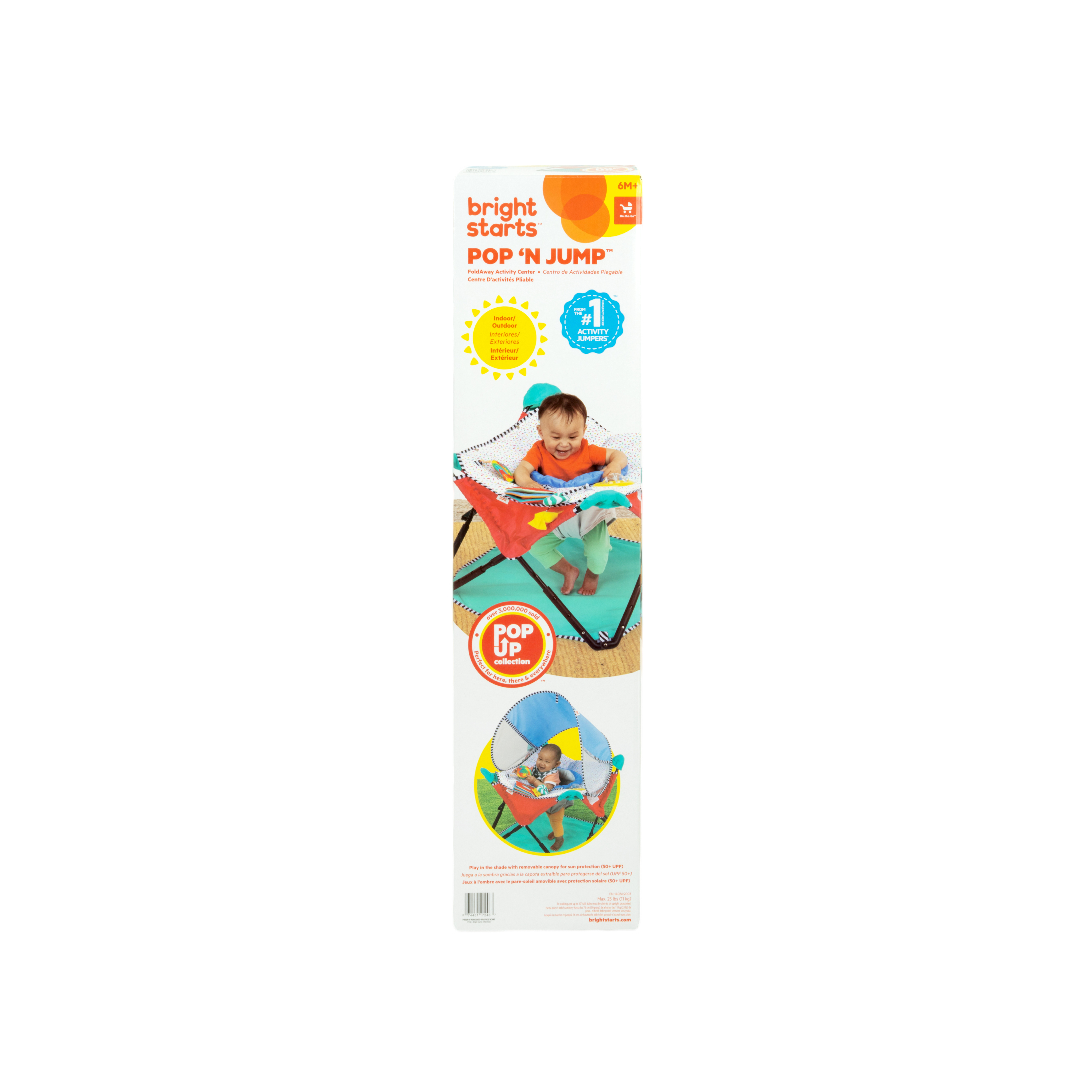 - Divertiti con l'innovativo jumper Pop 'N Jump di Bright Starts, caratterizzato da un pratico design pieghevole, ideale per l'uso in ambienti interni ed esterni e facile da trasportare
