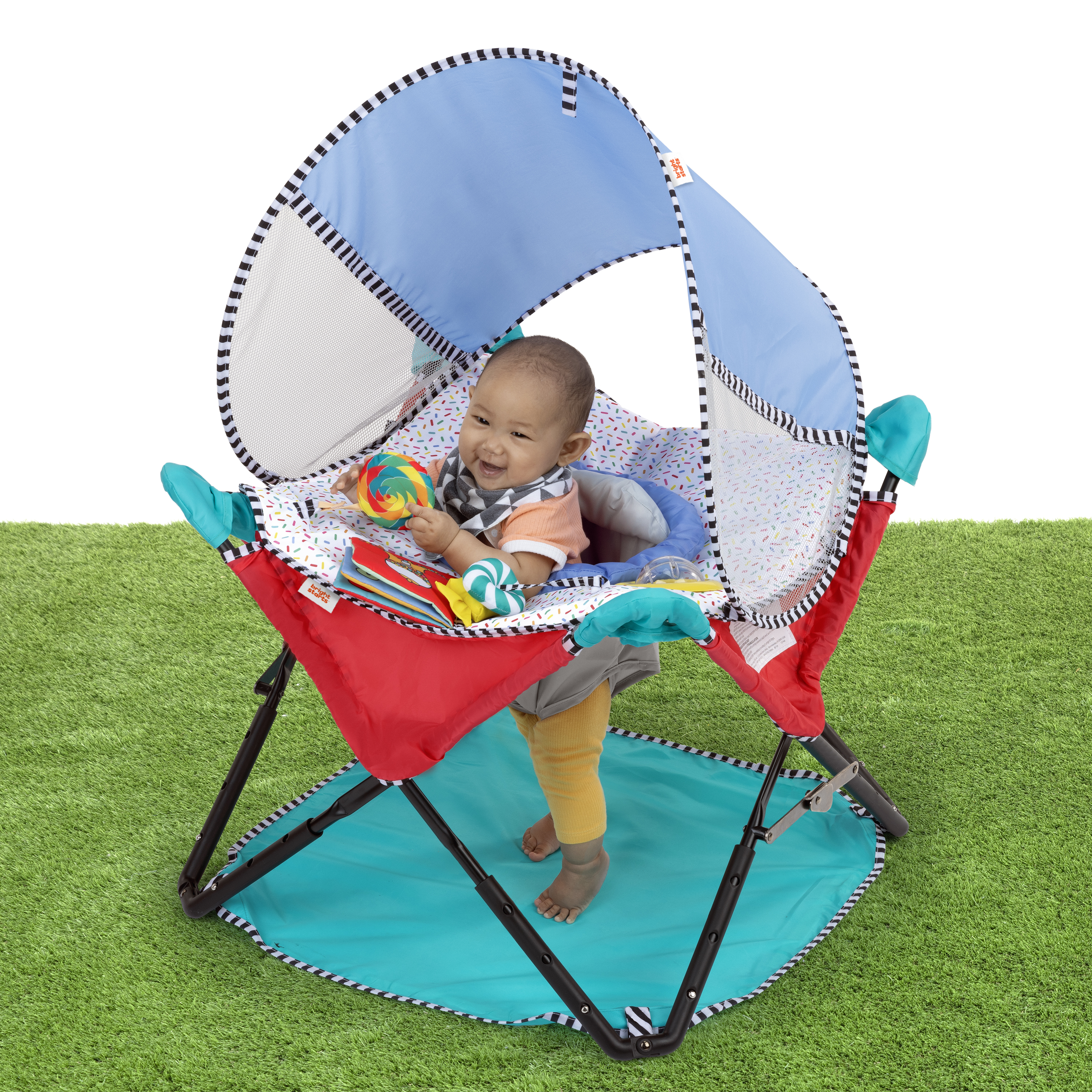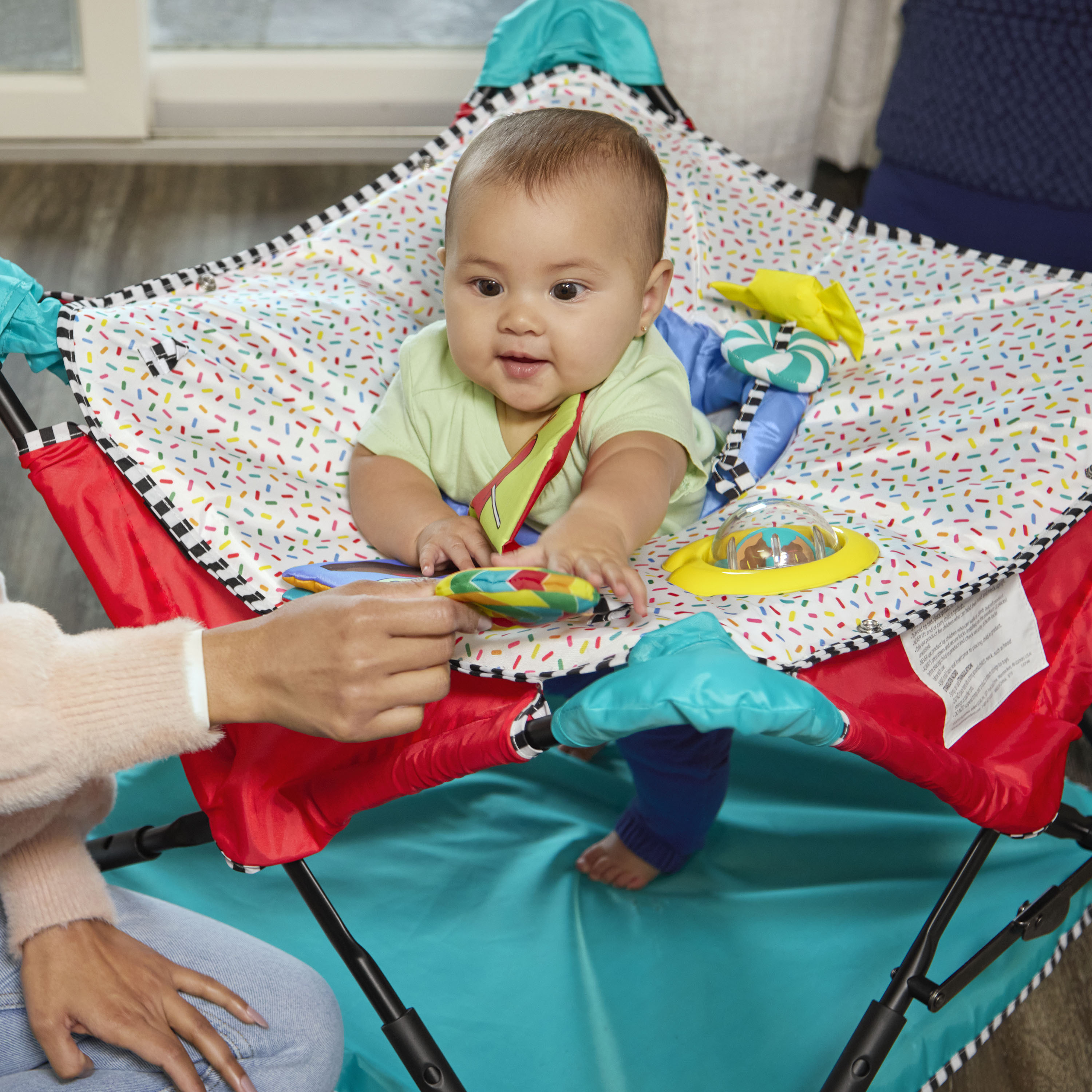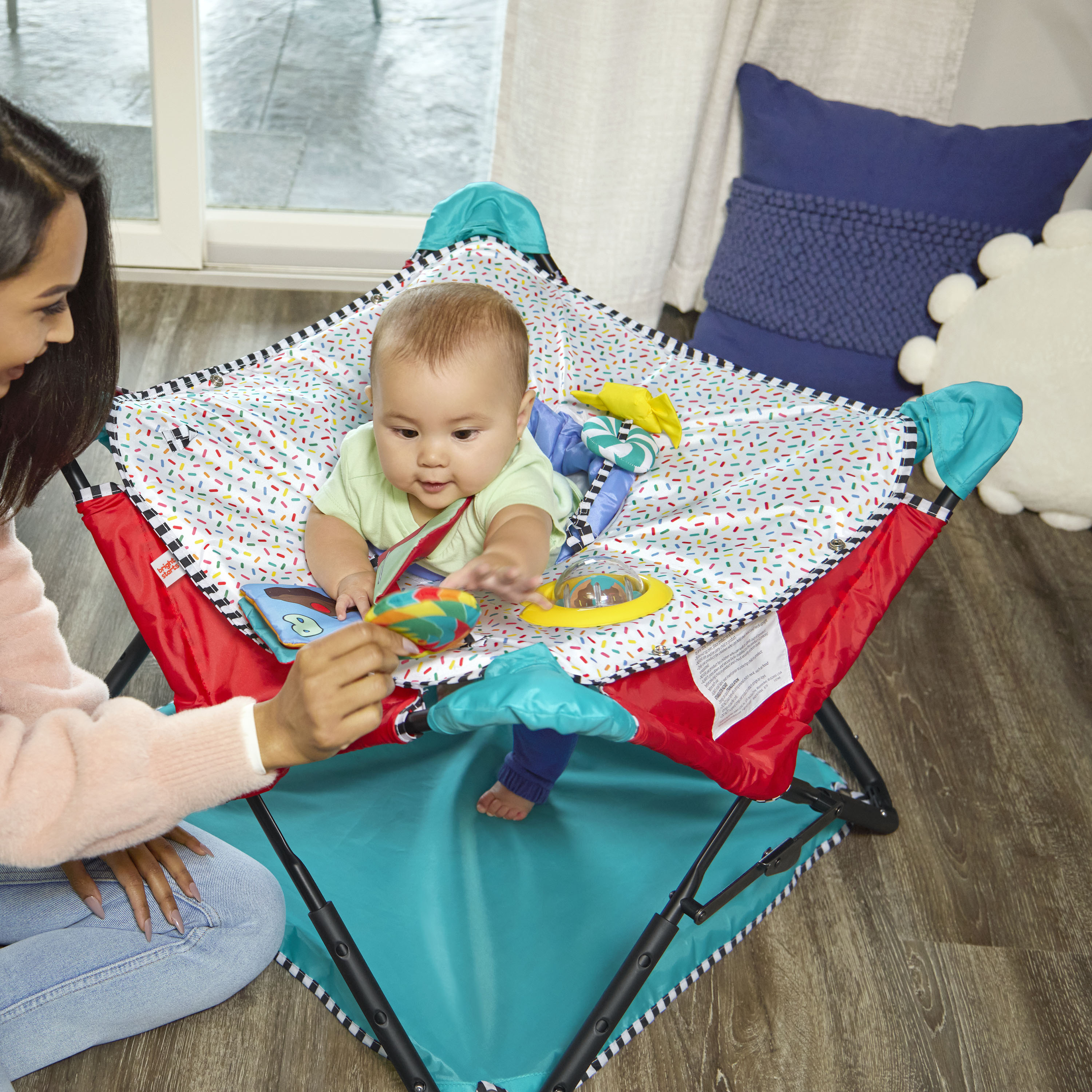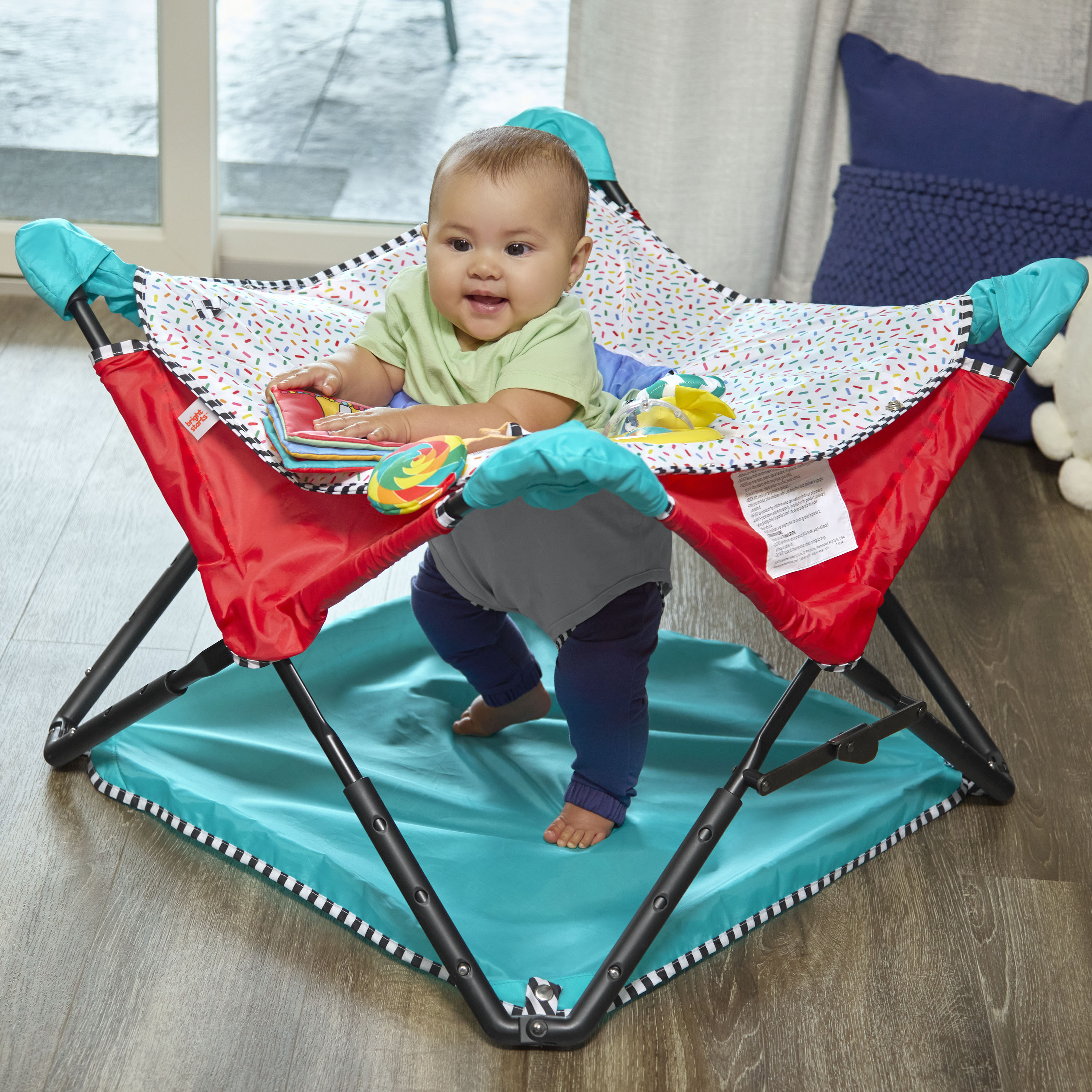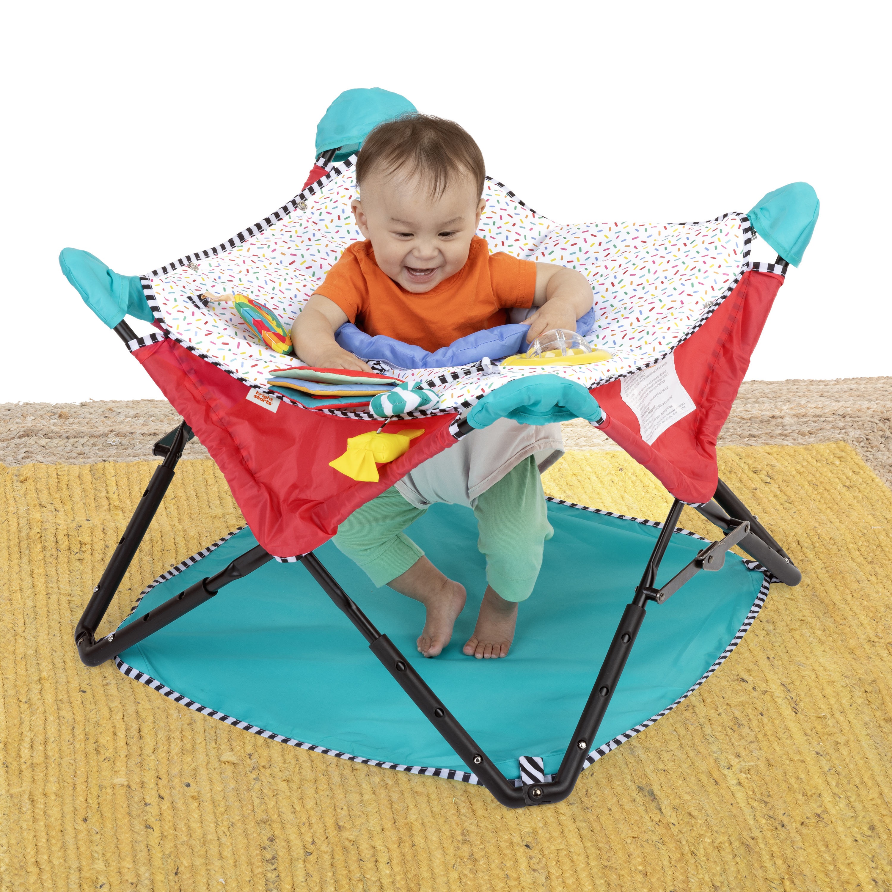 - Divertiti con l'innovativo jumper Pop 'N Jump di Bright Starts, caratterizzato da un pratico design pieghevole, ideale per l'uso in ambienti interni ed esterni e facile da trasportare