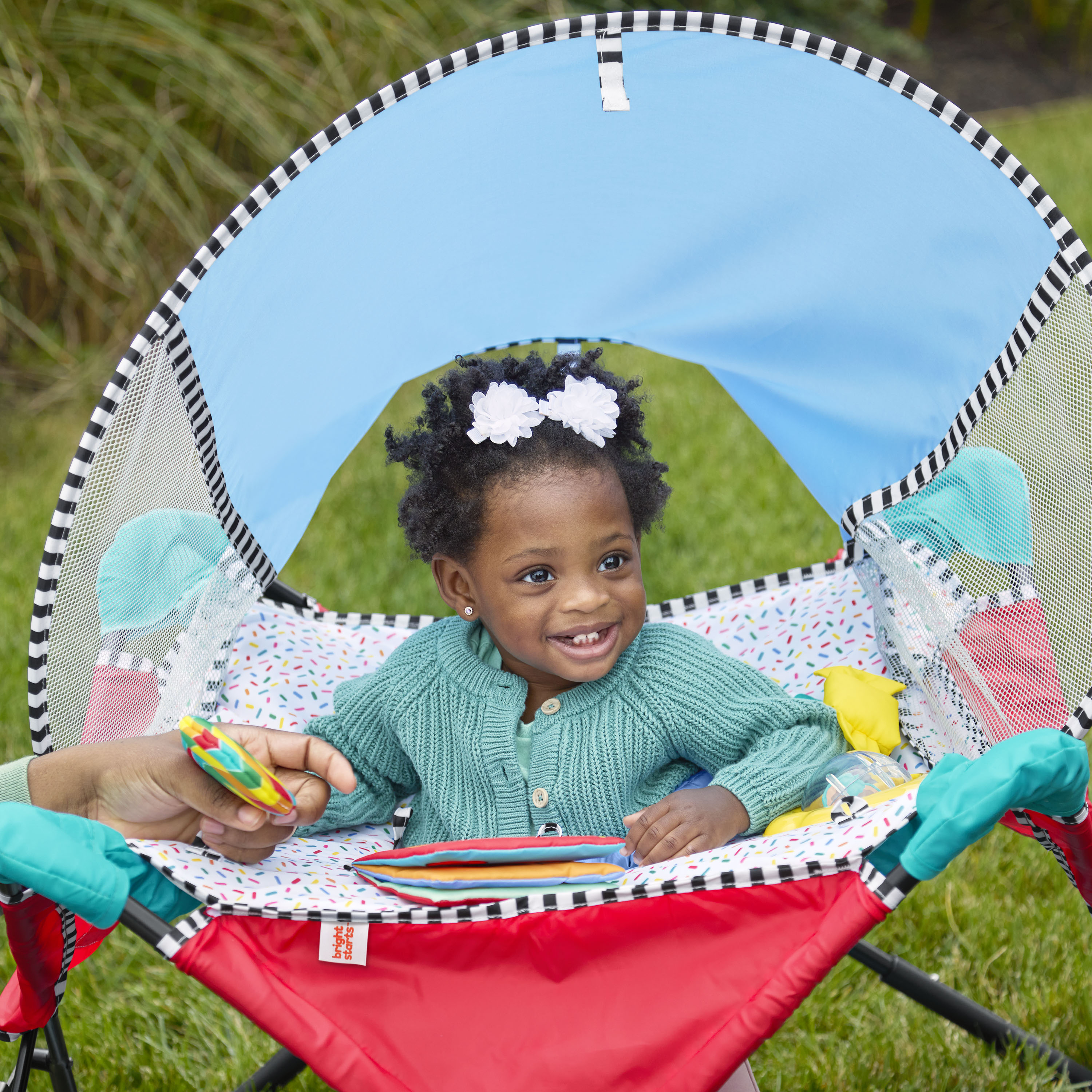 - La cappottina inclusa è rimovibile e aiuta a proteggere il bambino dai raggi UV mentre gioca all'esterno; si monta in pochi secondi
