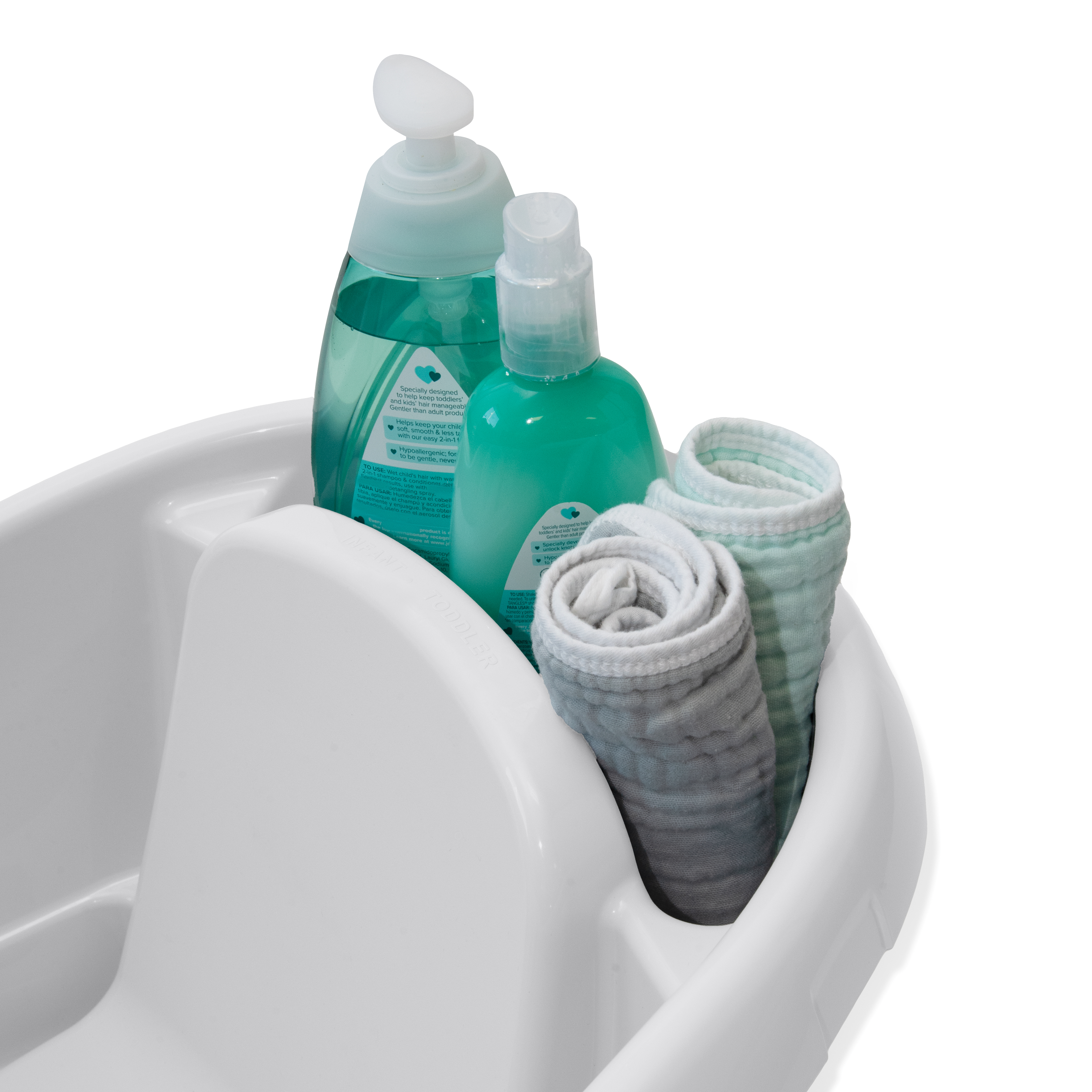- Il vassoio di supporto mantiene a portata di mano i prodotti essenziali, così da poterti concentrare sul bagnetto