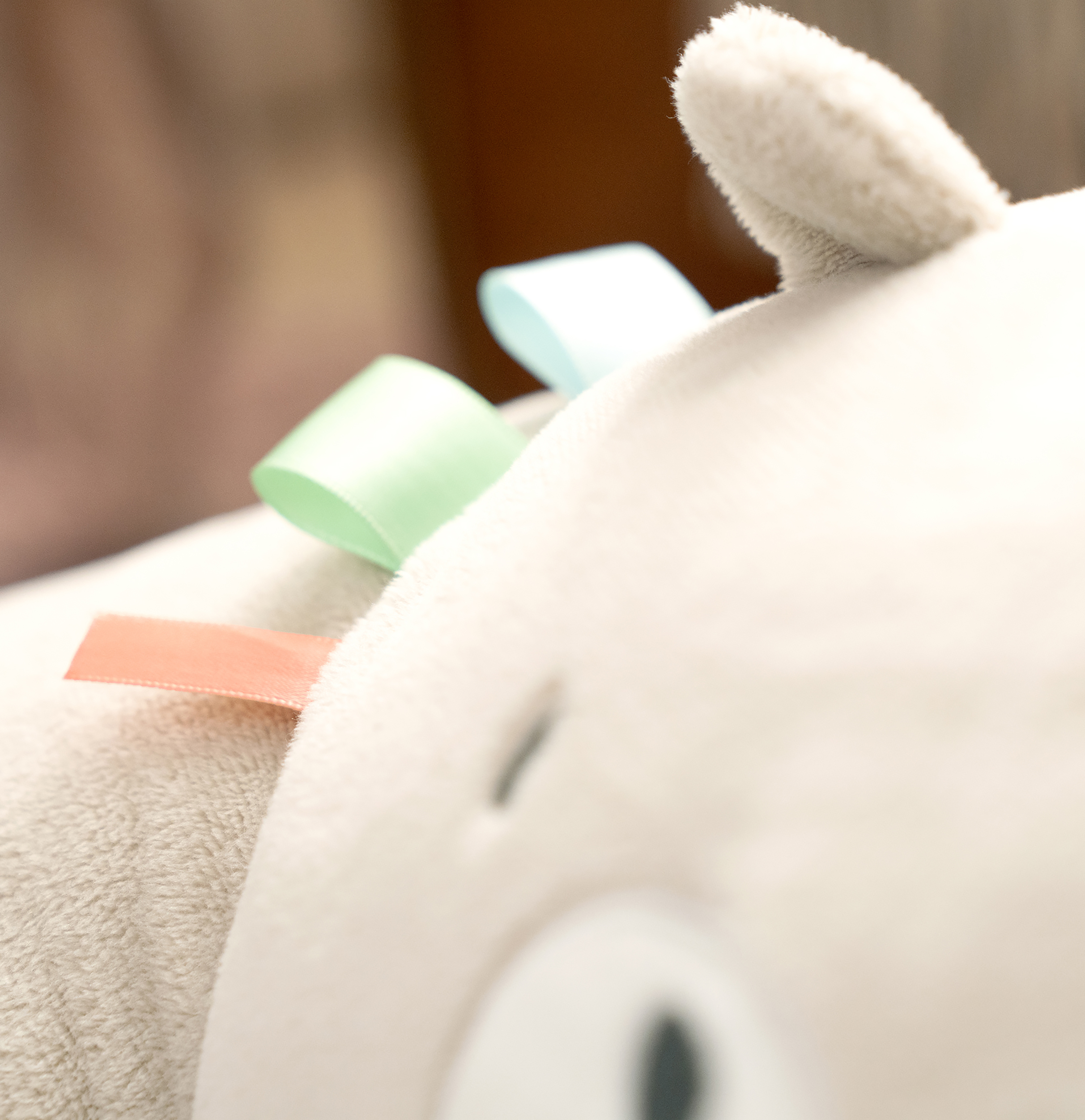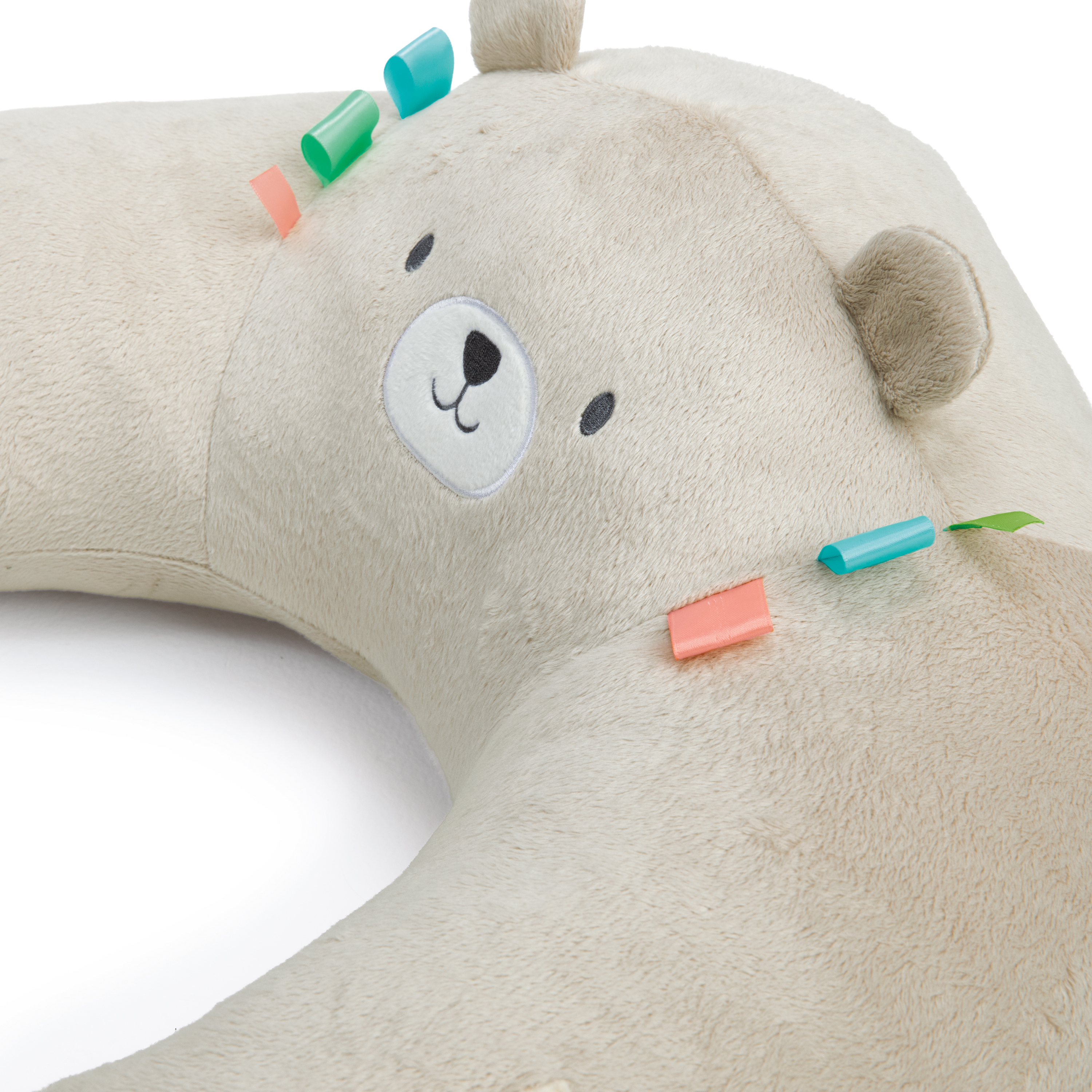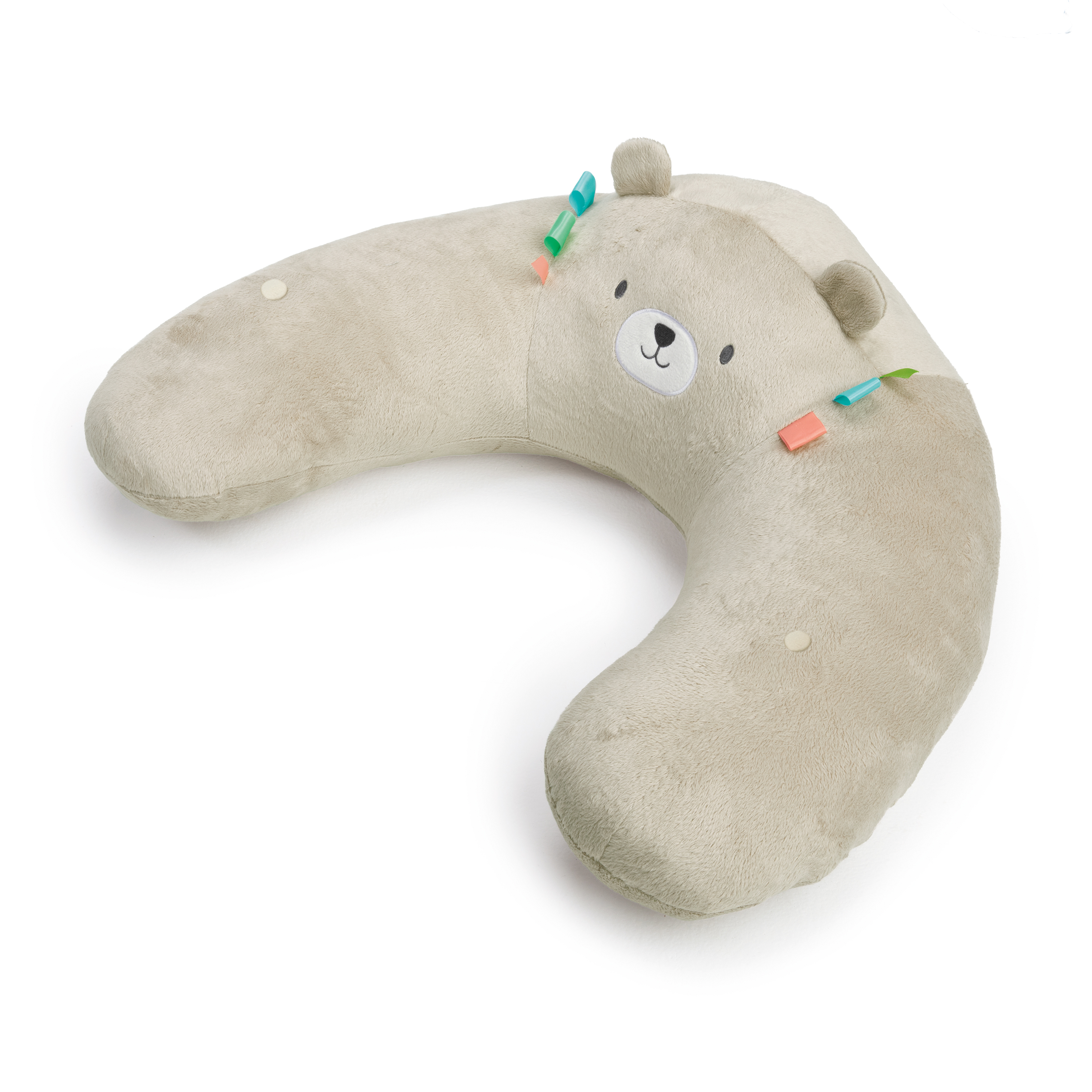 - 親切なクマのネート™ピローは、赤ちゃんのせもたれになり、お座りを支援します。