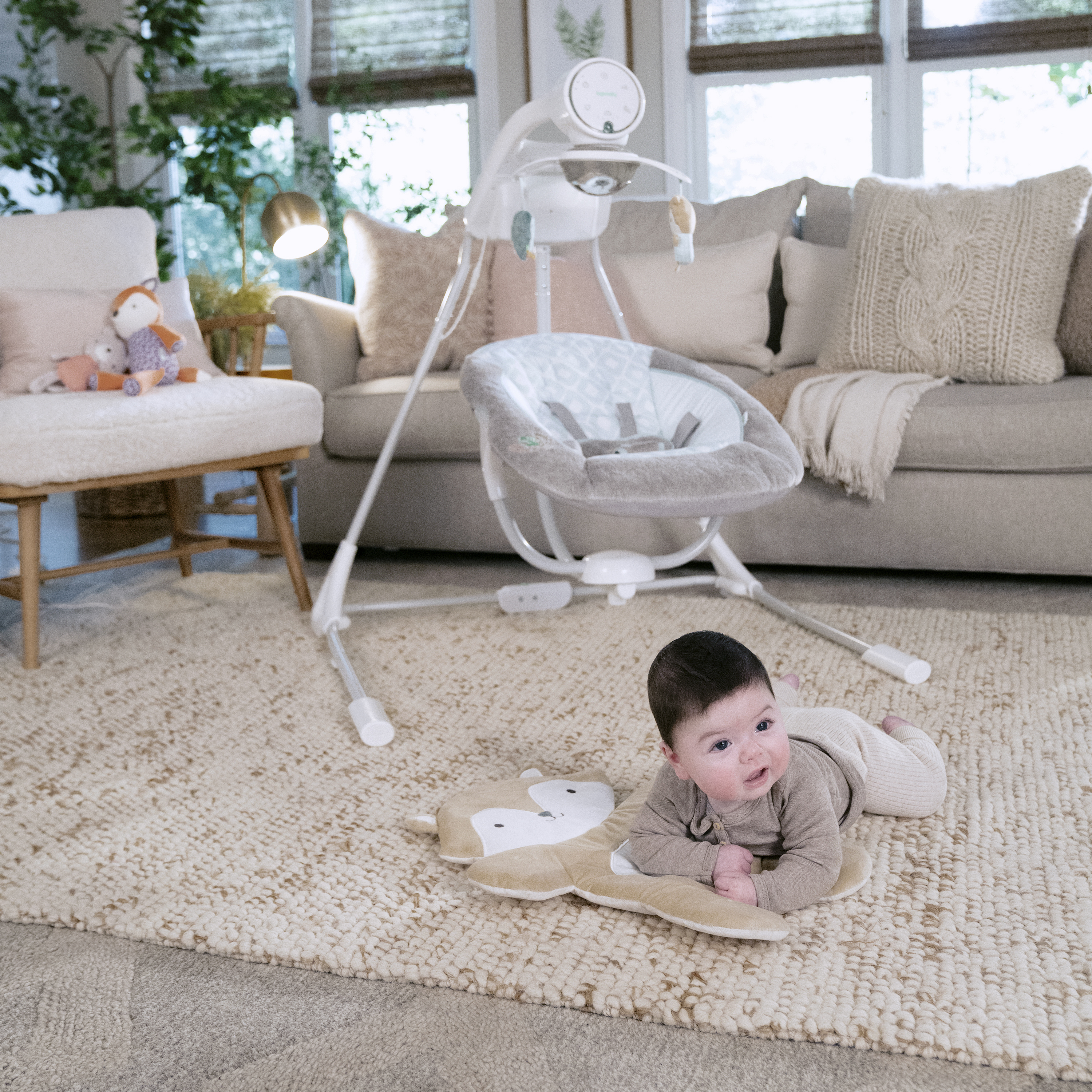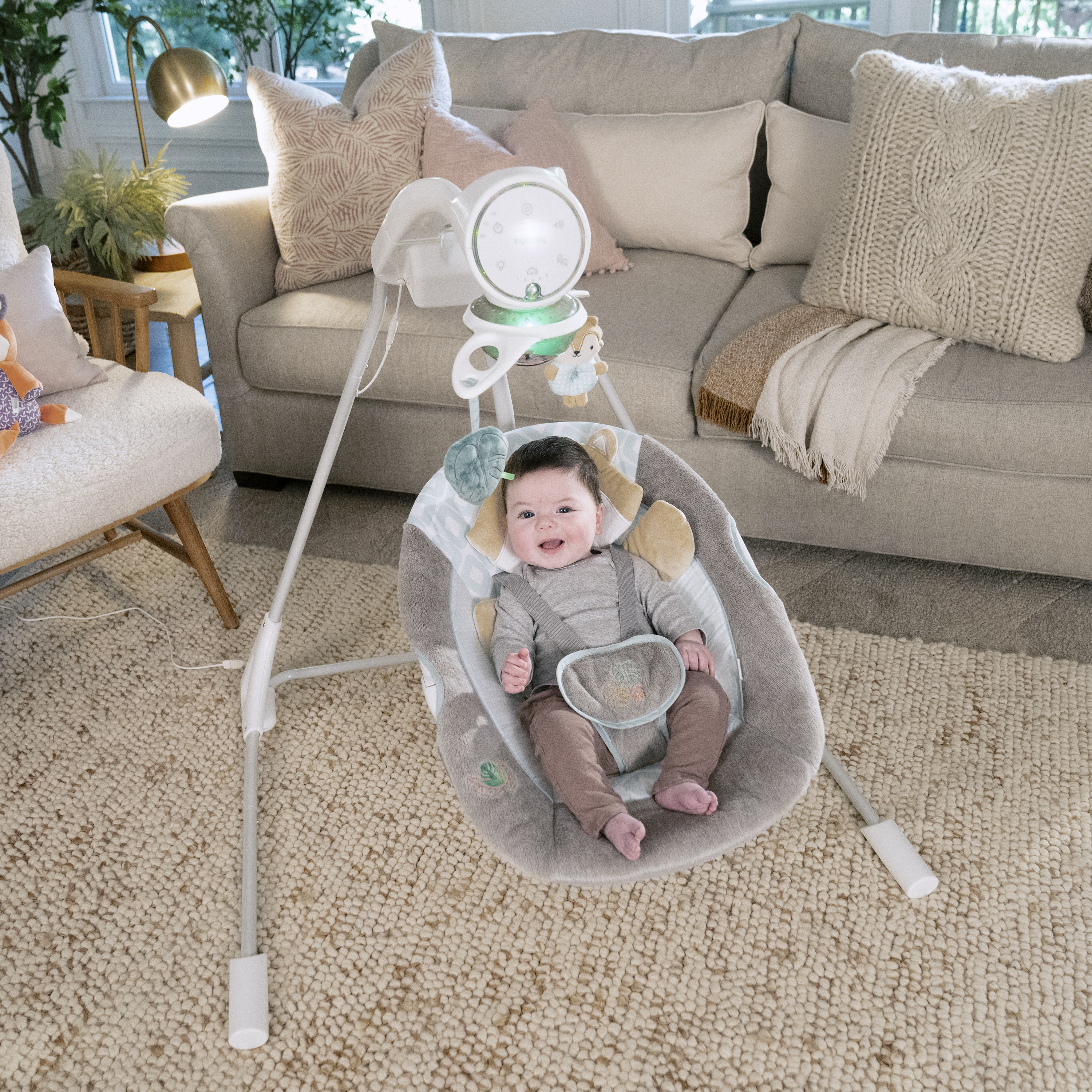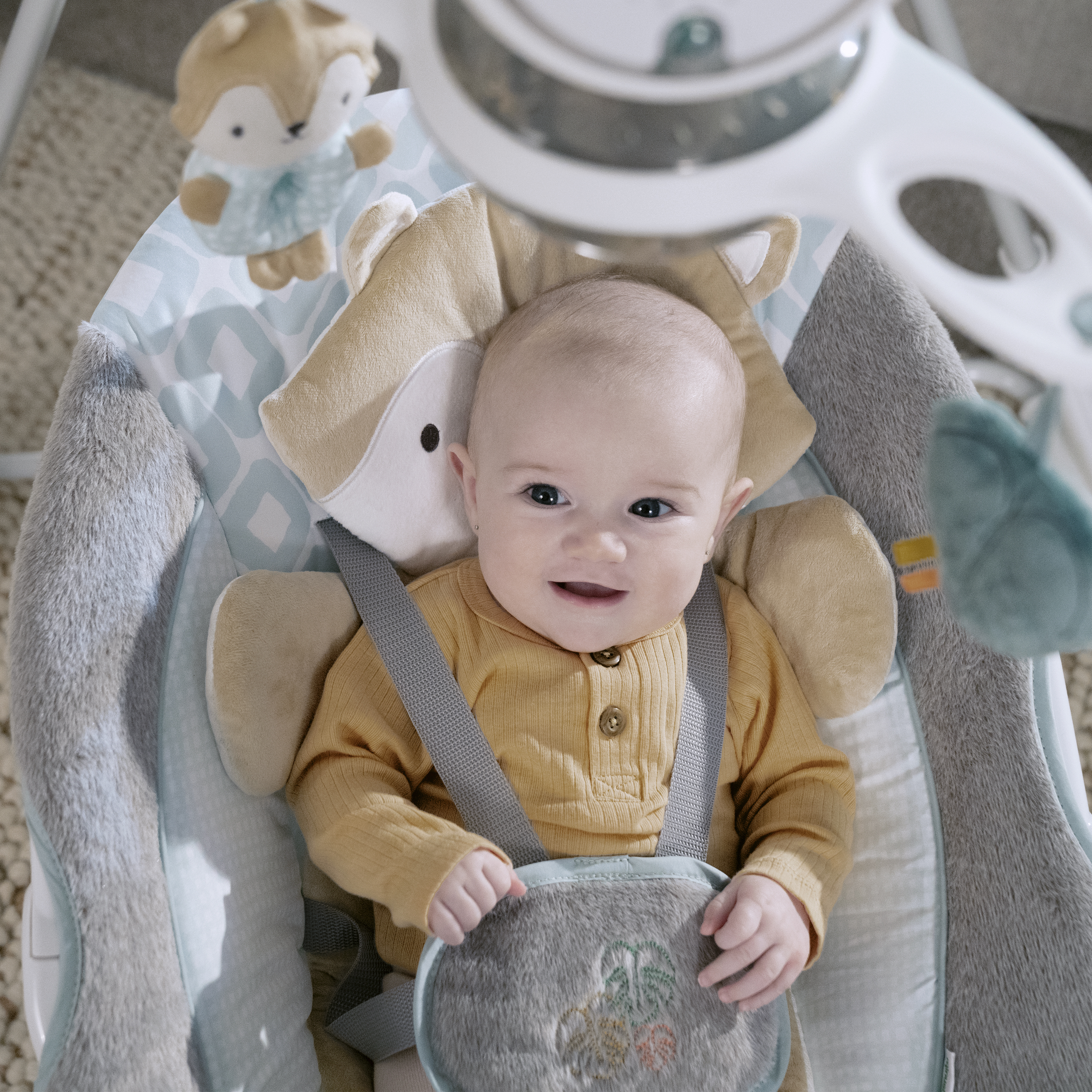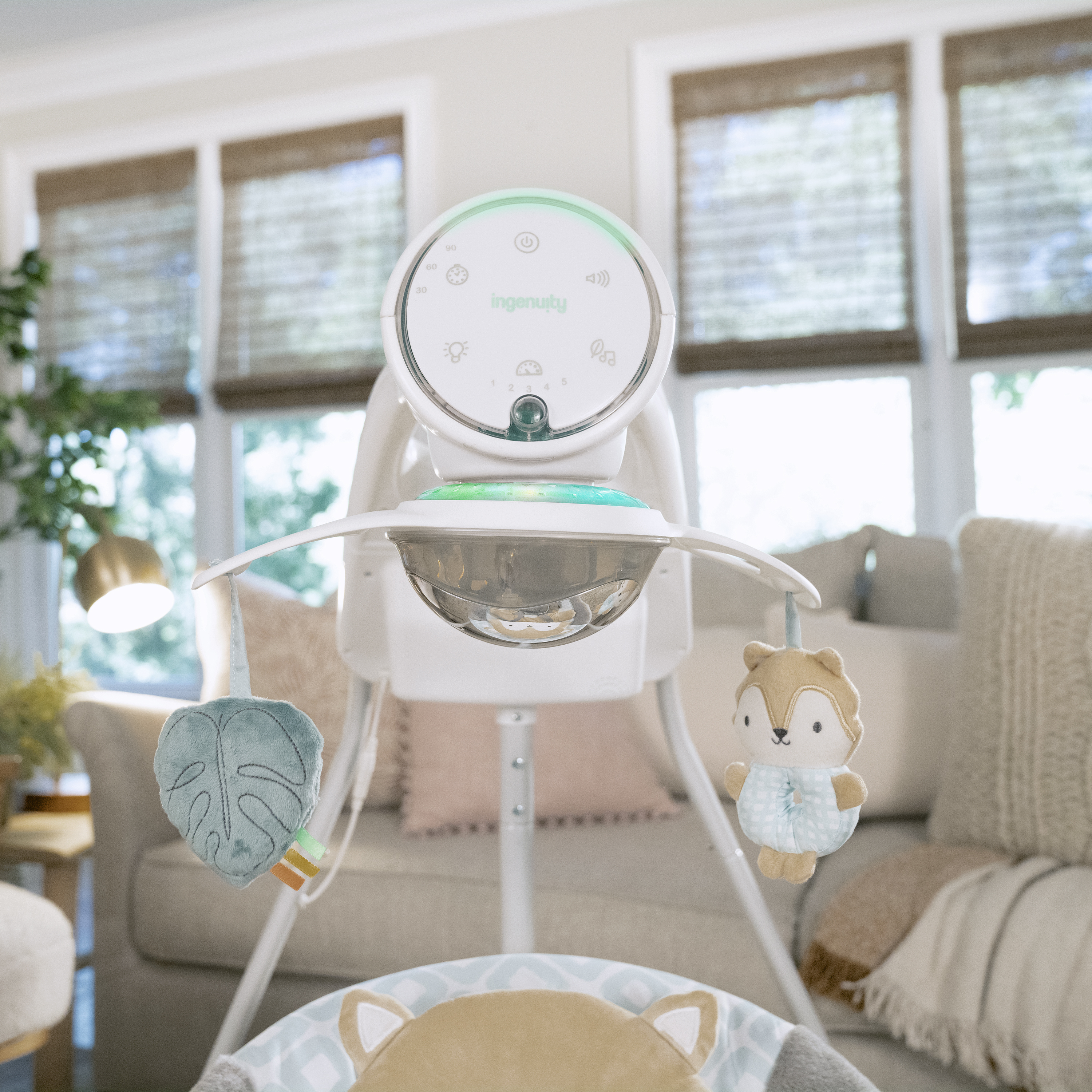 - 赤ちゃんを落ち着かせるIngenuity InLightenスージングスイングは、180度回転および3方向スイング; 愛らしい狐のディテールで男女両用の設計
