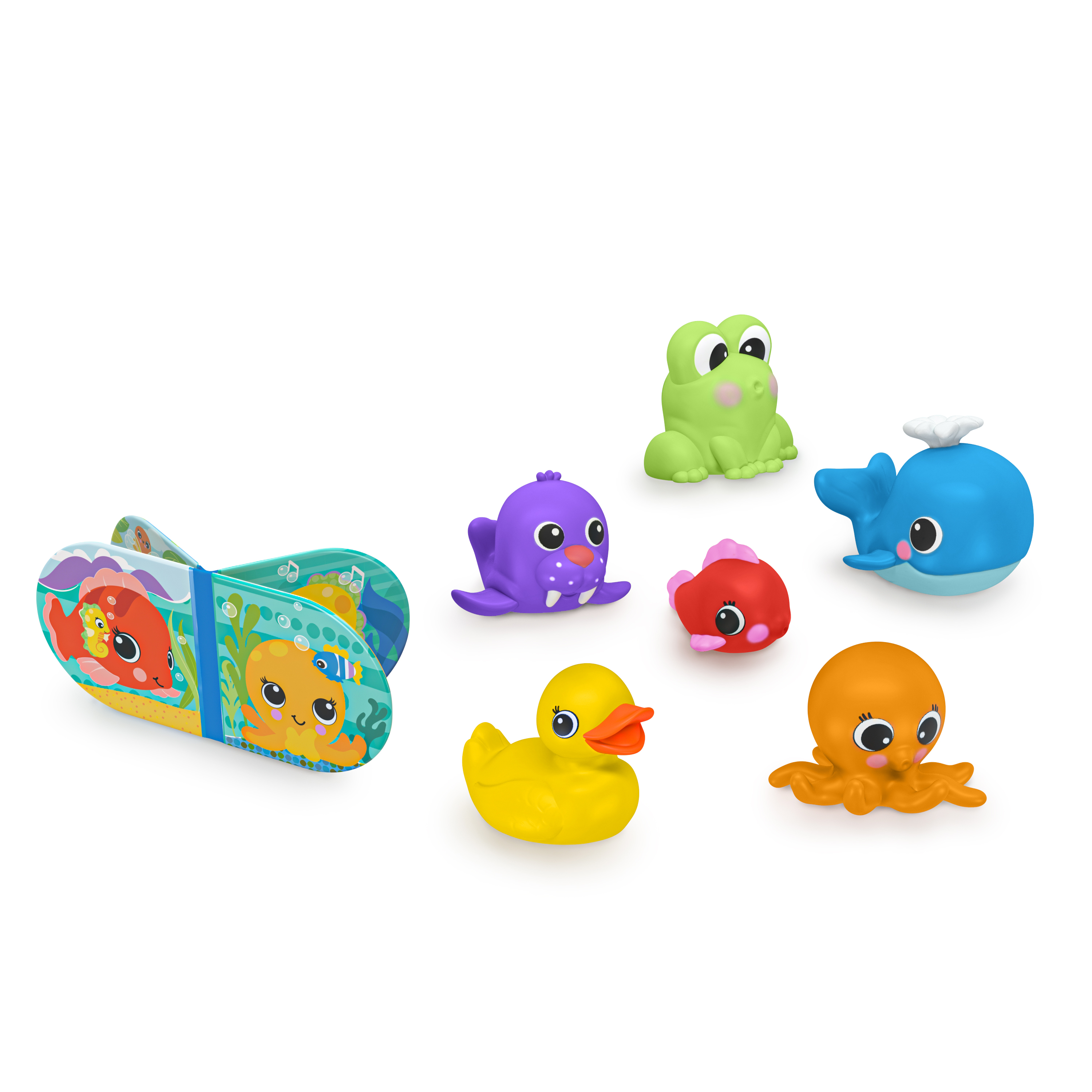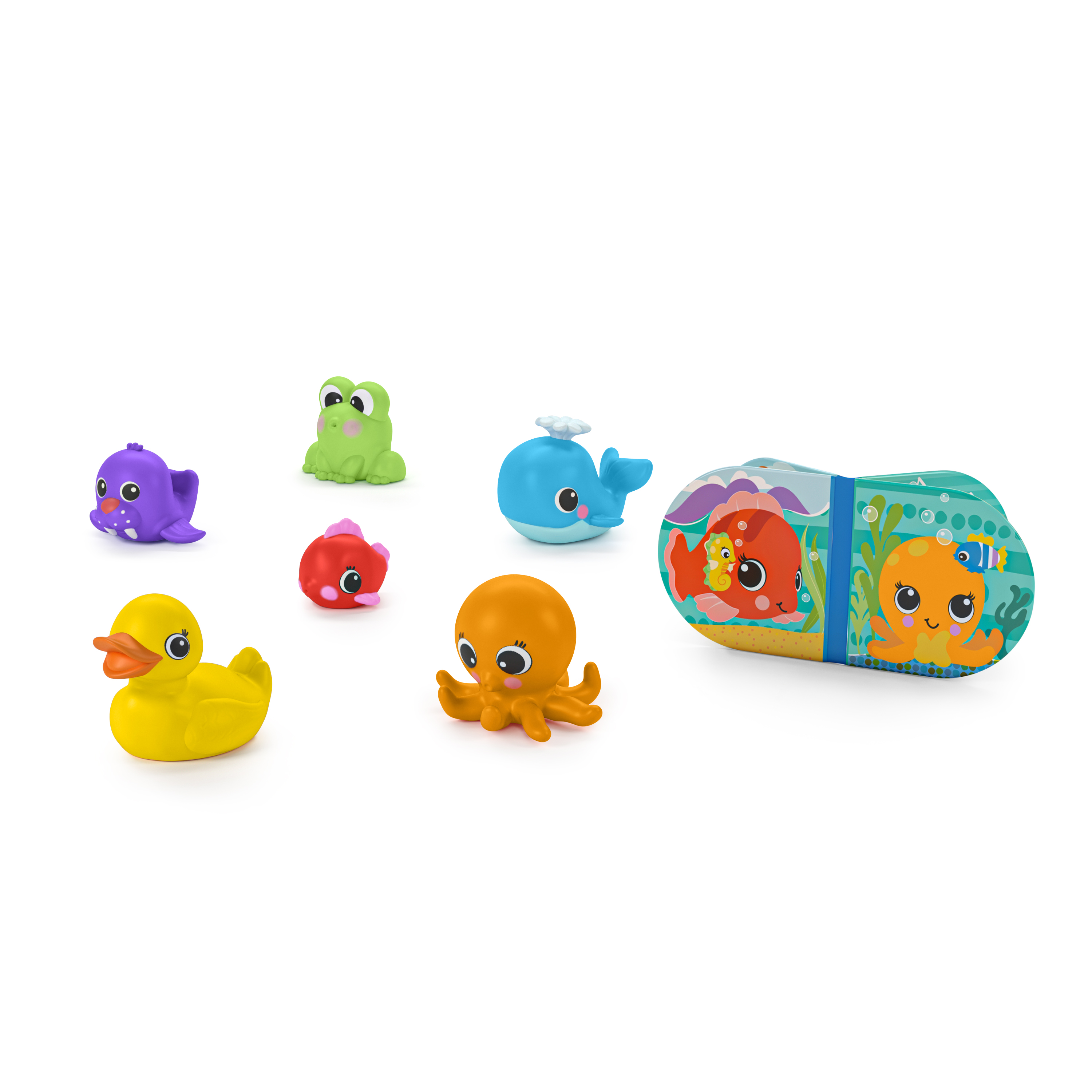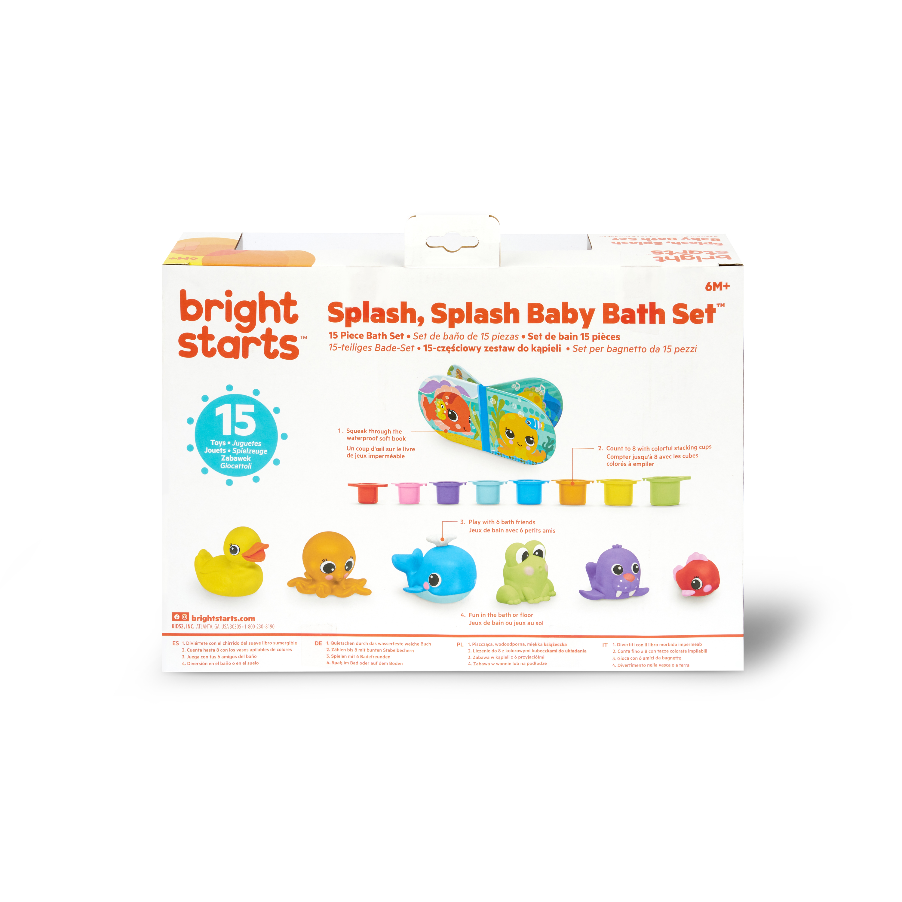 - Bright Starts Splash, Splash Babyおふろセットは15ピース入り1×クラシックなラバーダックと5つのその他のお友達(カエル、おさかな、セイウチ、クジラおよびタコ)、1冊の防水絵本と8つの虹のスタッキング・カップ