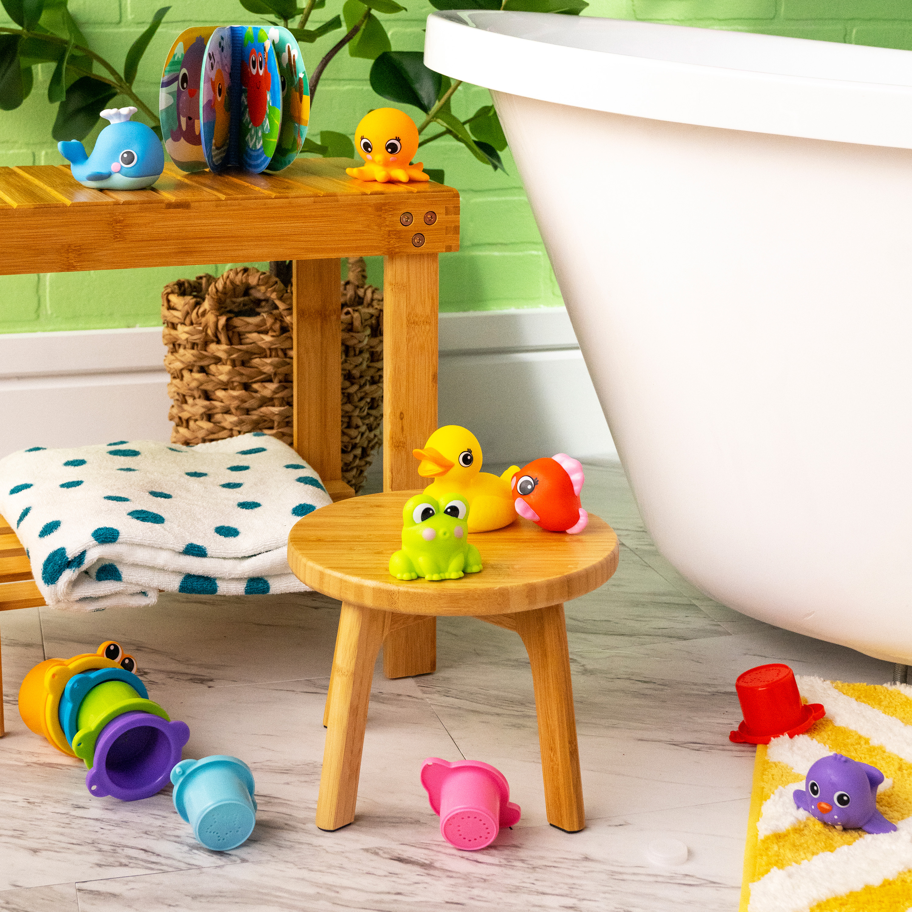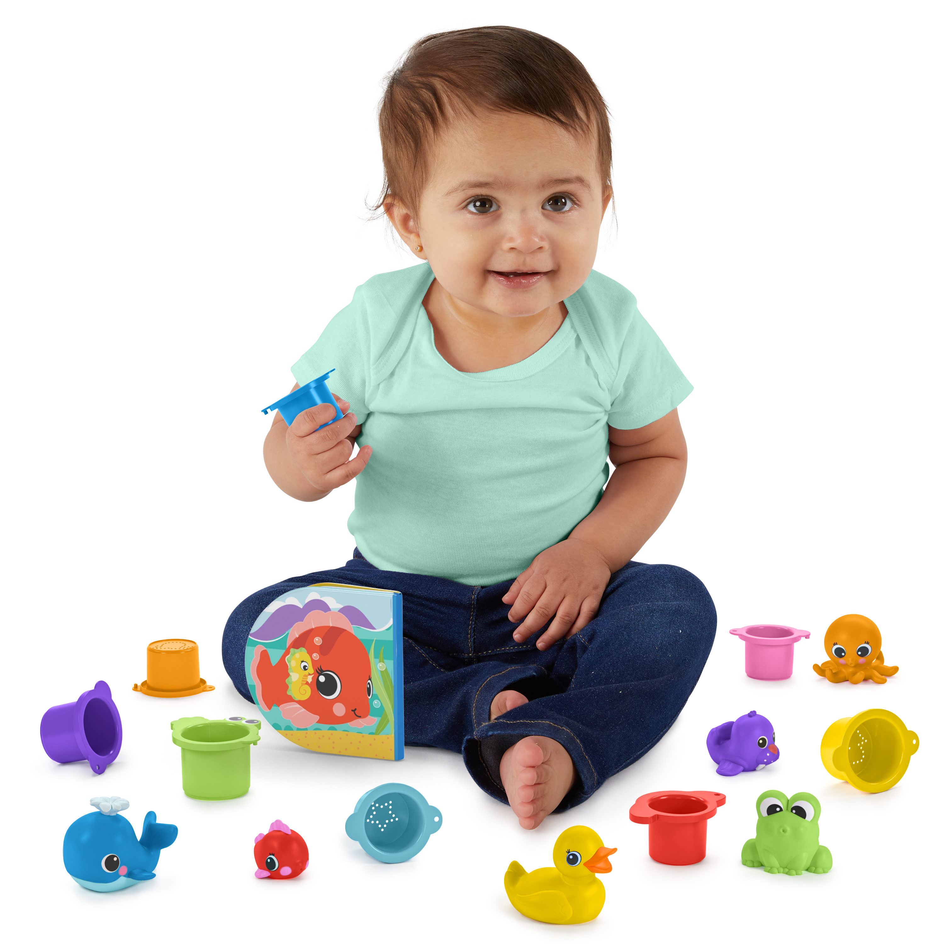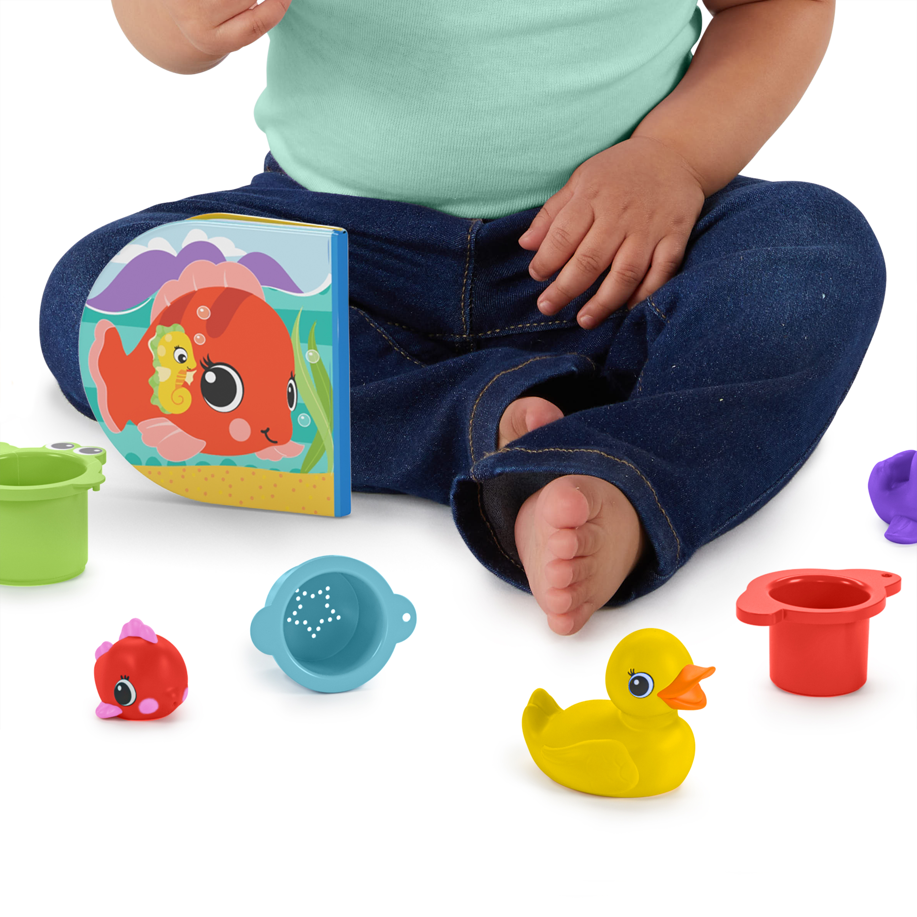 - 手先の細かな動きを学べる、親しみやすいテクスチャー玩具で赤ちゃんのおふろの時間がもっと楽しくなります; 8つの虹の積み重ねコップで、赤ちゃんが数字と色を覚えられます。おふろにも床遊びにも使えます