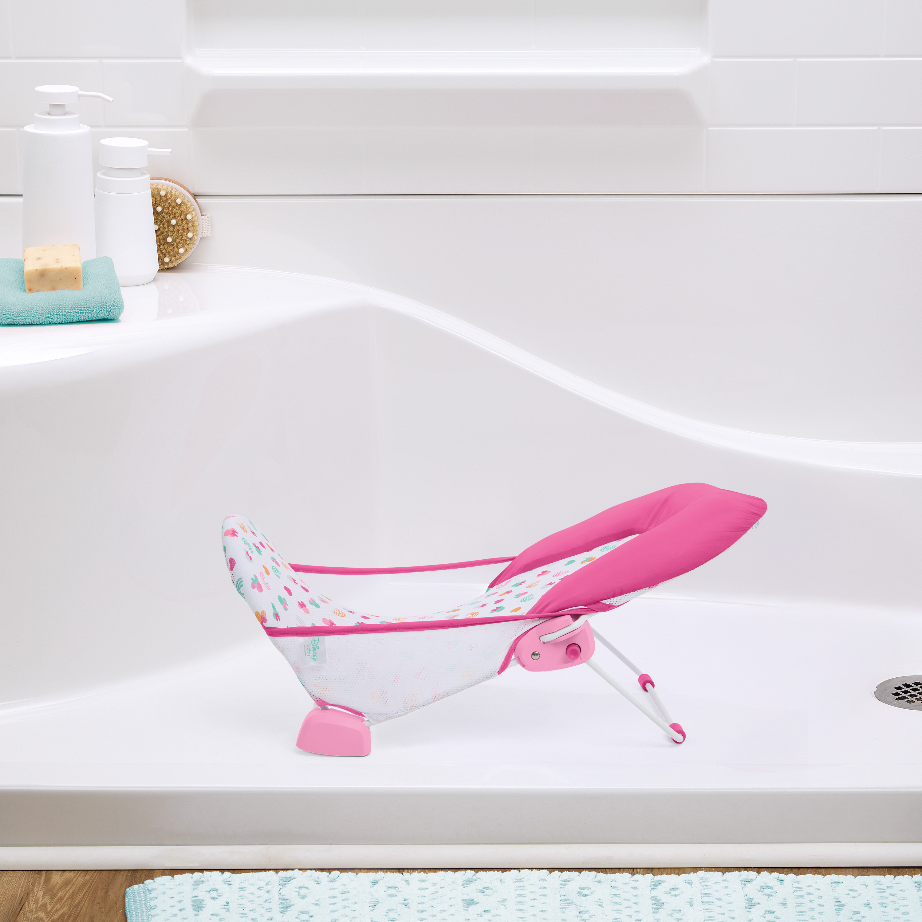 - ブライトスターツのディズニーベイビーミニーマウスフォールドアウェイ浴槽は、快適性、安定性、そして愛らしさを兼ね備えています。2段階の調整可能なリクライニングポジションで、新生児から乳児までのお子様をサポートします