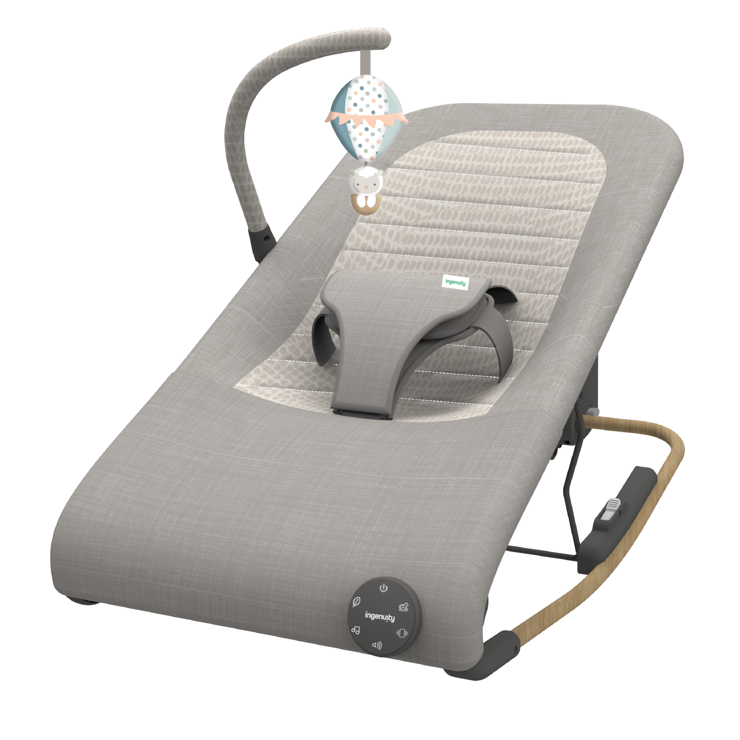 - 揺れだけでなく、この椅子には心地よいバイブレーションとボリューム調節機能付きの落ち着いた音楽もあります。ジェントルタッチ™テクノロジーを採用することで、ご両親、祖父母、ベビーシッターの方にもわかりやすく、操作しやすくなっており、お子様のお世話をする人が誰であっても、お気に入りの機能を使うことができます