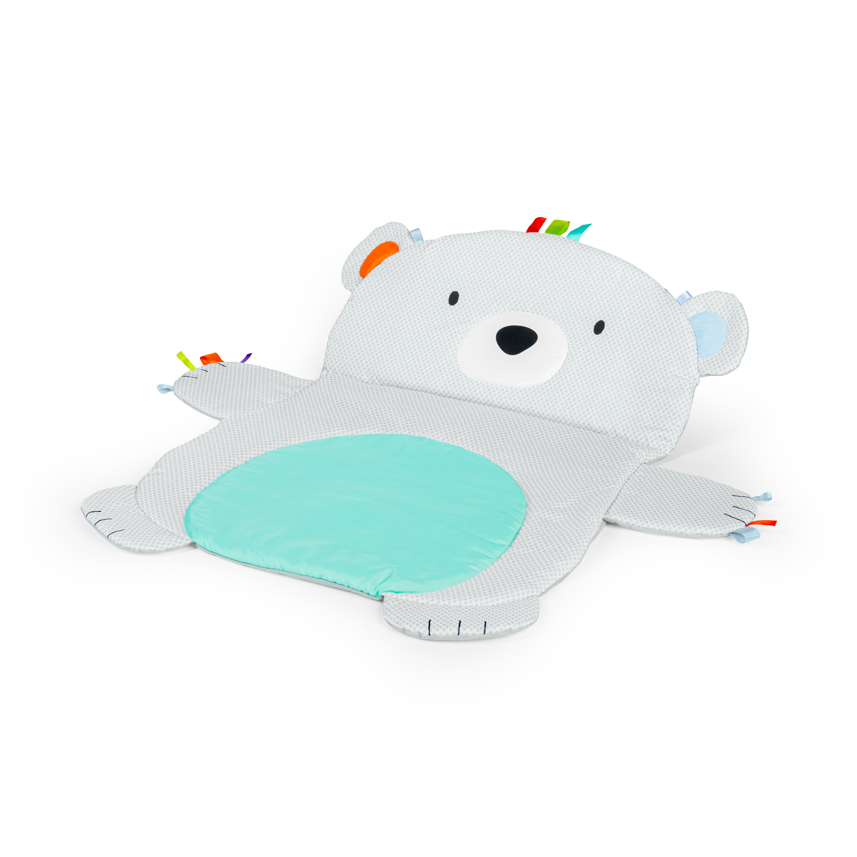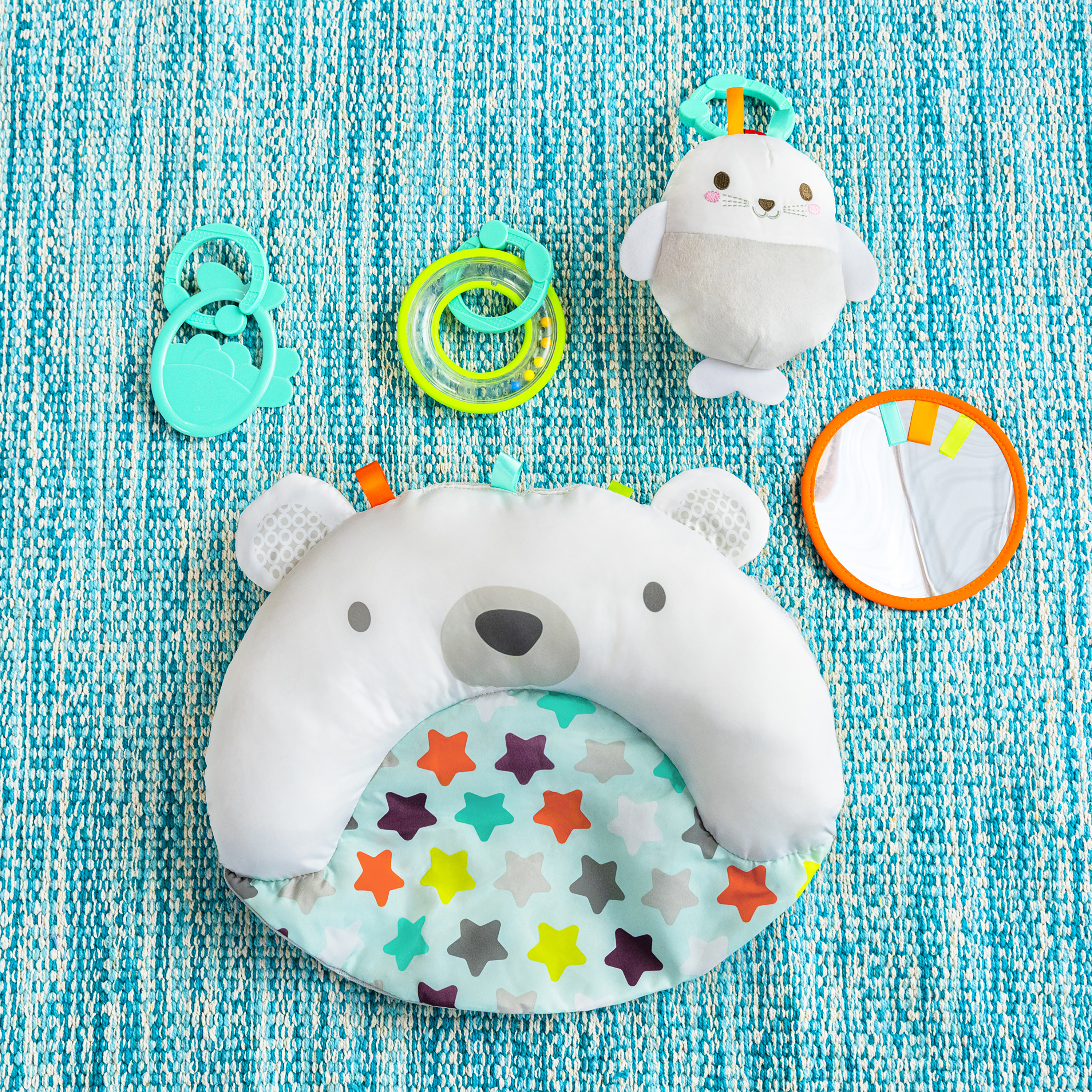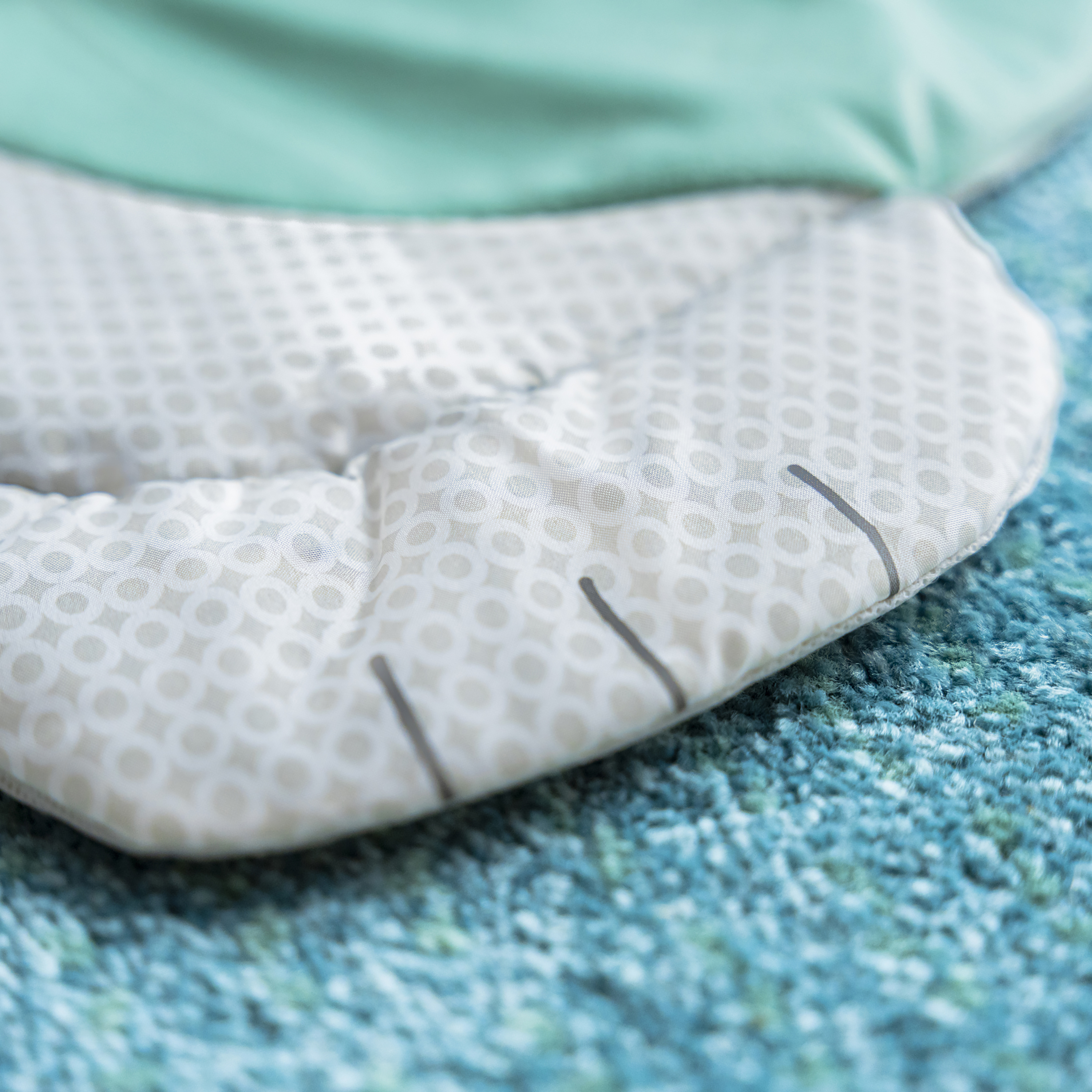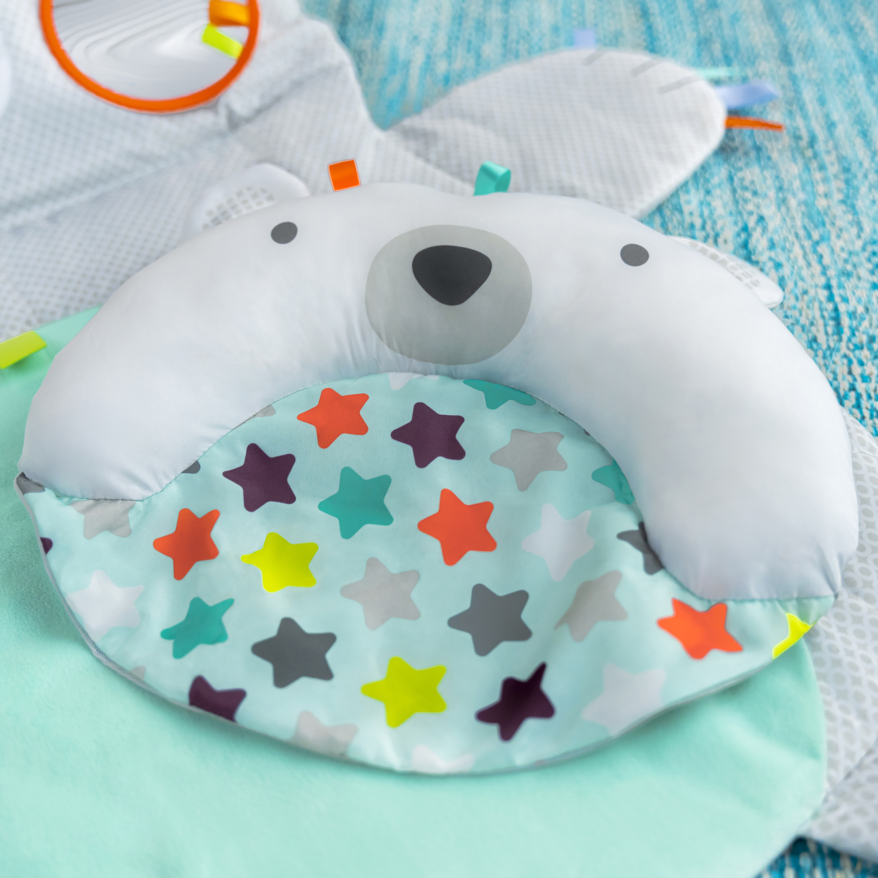 - Speelkussen met gevoerde inzetranden zorgt voor extra ondersteuning tijdens op het buikje liggen