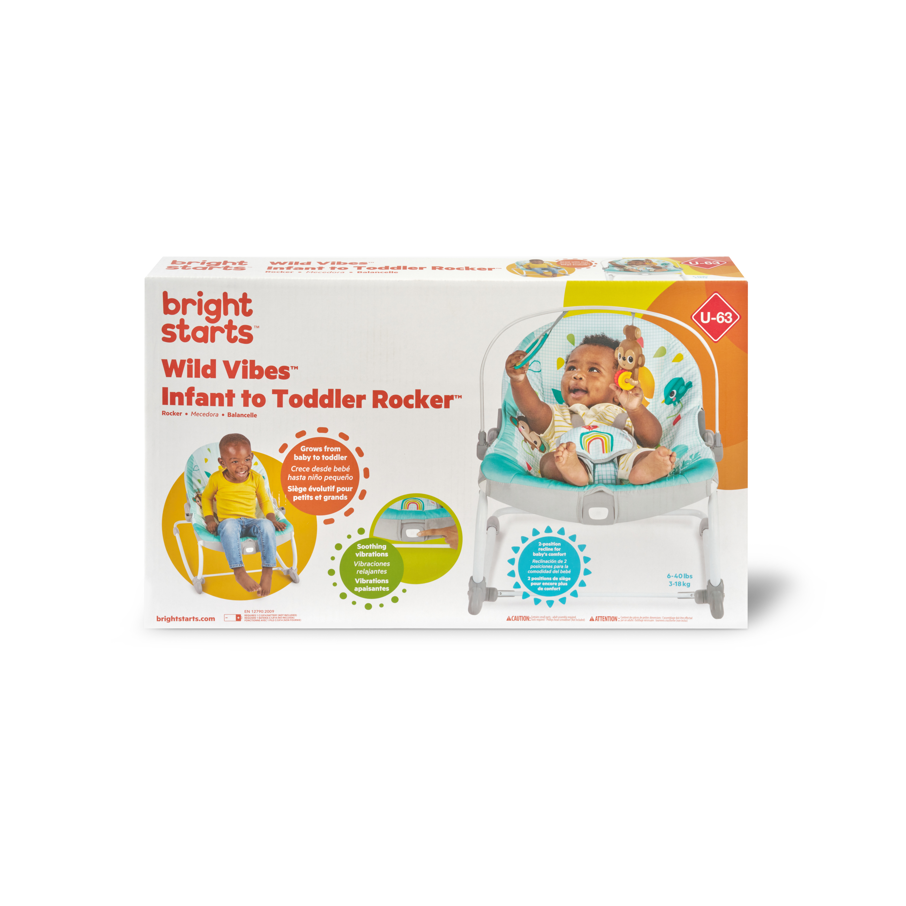 - Wielofunkcyjny fotelik będzie służył przez lata! Bujaczek od niemowlaka do przedszkolaka Bright Starts Wild Vibes przekształca się z bujaczka w fotelik stacjonarny i rośnie wraz z dzieckiem do masy ciała 18 kg (40 lb). Możliwość zmiany z bujaczka na fotelik stacjonarny za pomocą stabilizującej podpórki z przodu
