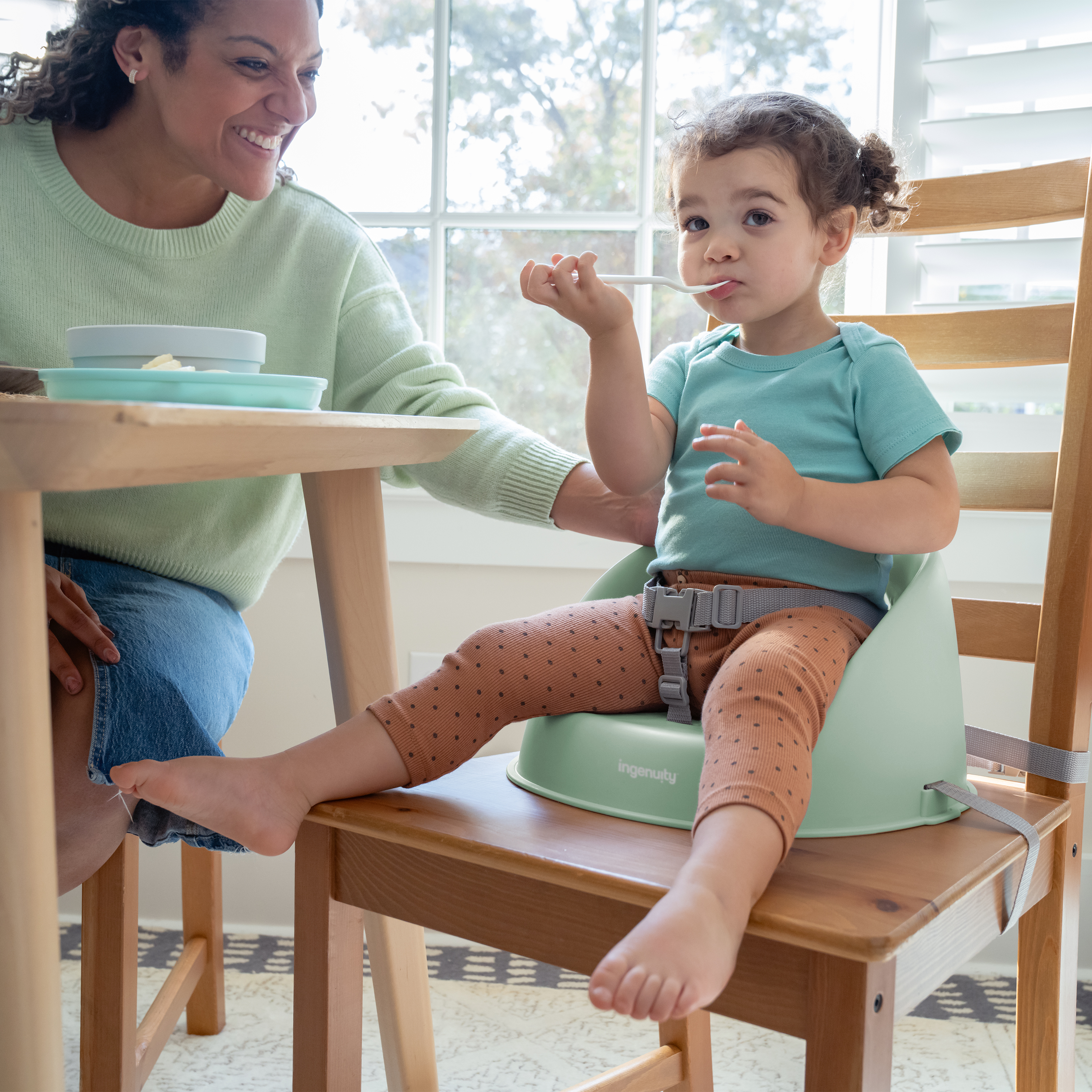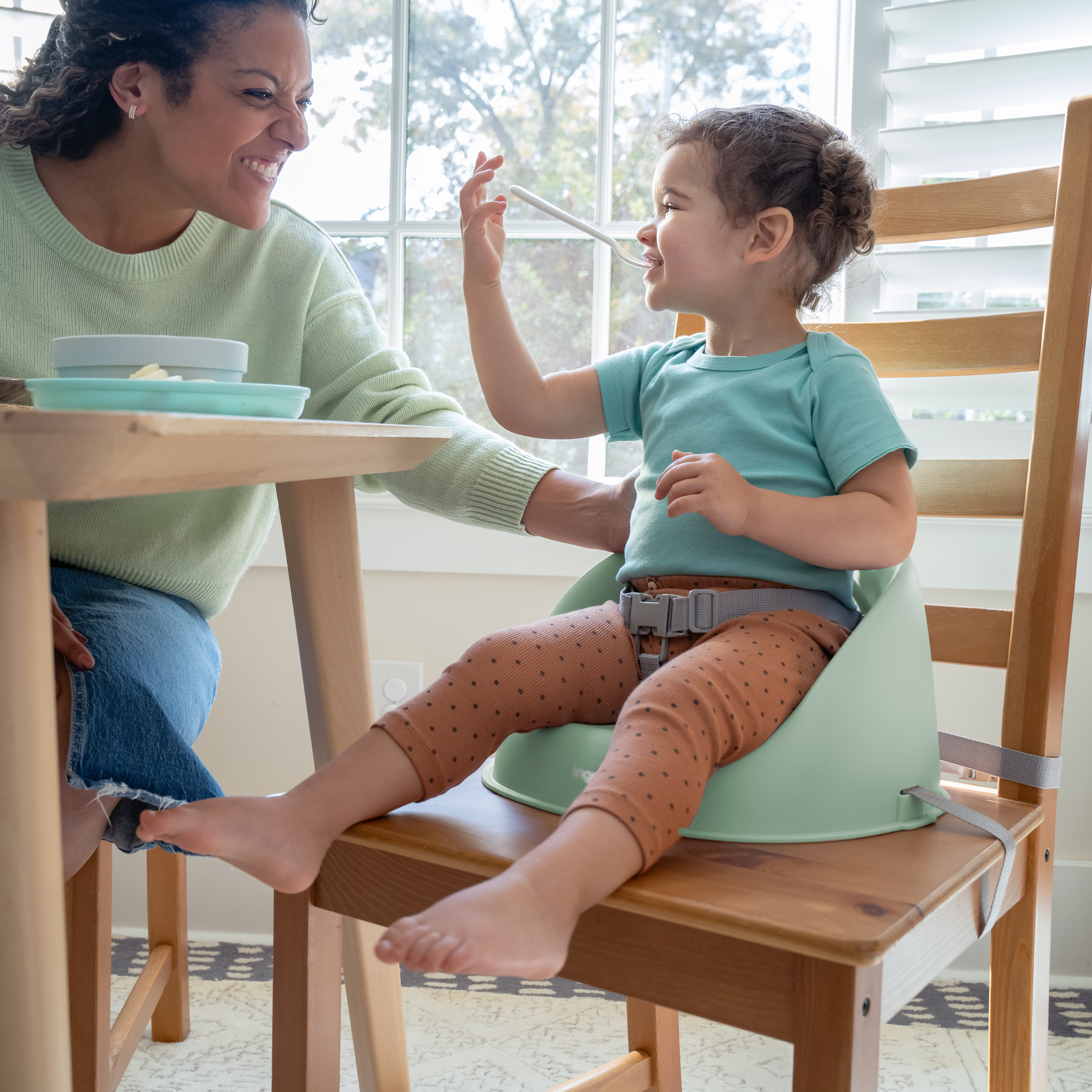 - Spraw, aby przejście z krzesełka do karmienia do stołu było tak gładkie, jak purée ze słodkich ziemniaków! Siedzisko podwyższające ity by Ingenuity My Spot Easy-Clean Booster w kolorze zielonym pozwoli maluszkowi usiąść przy stole