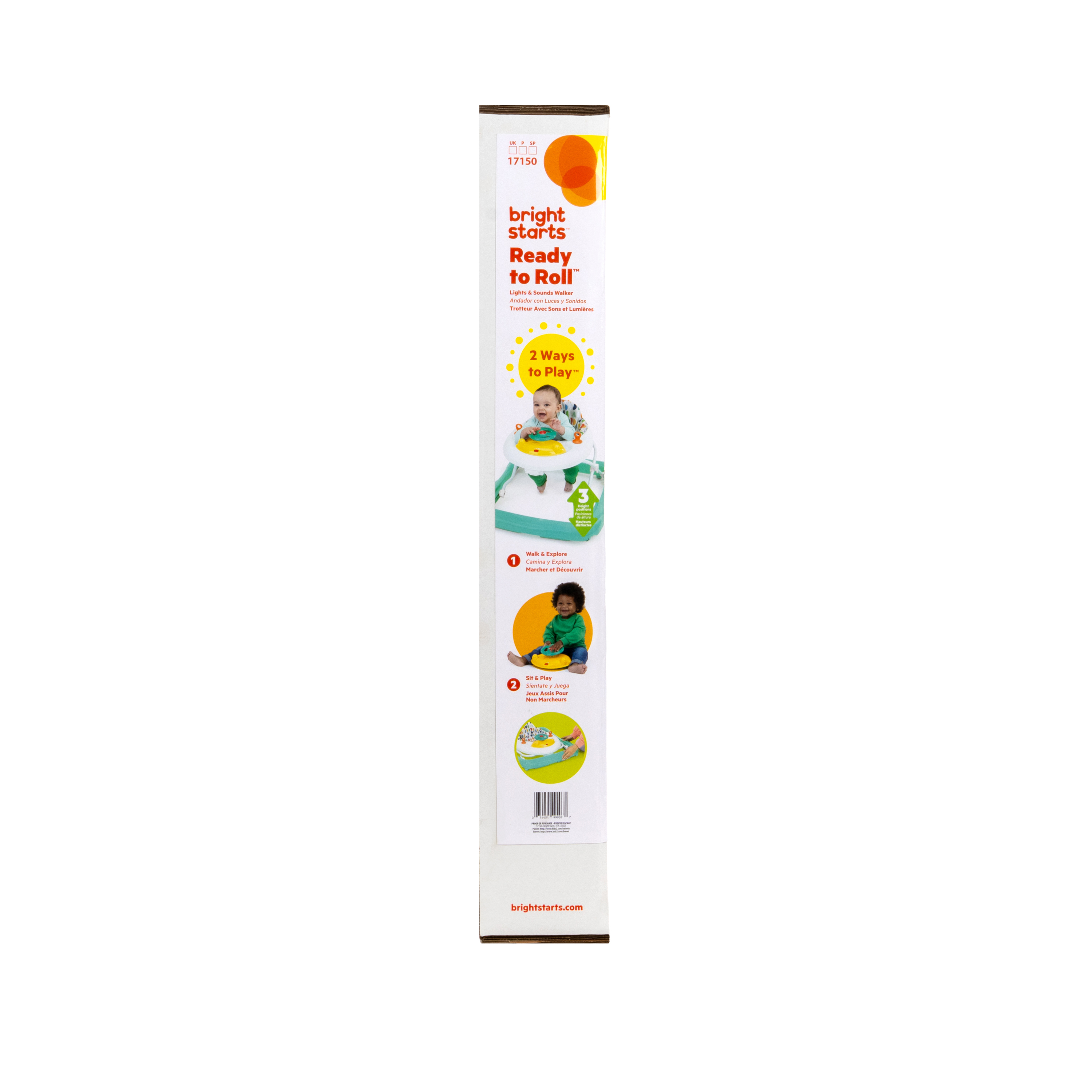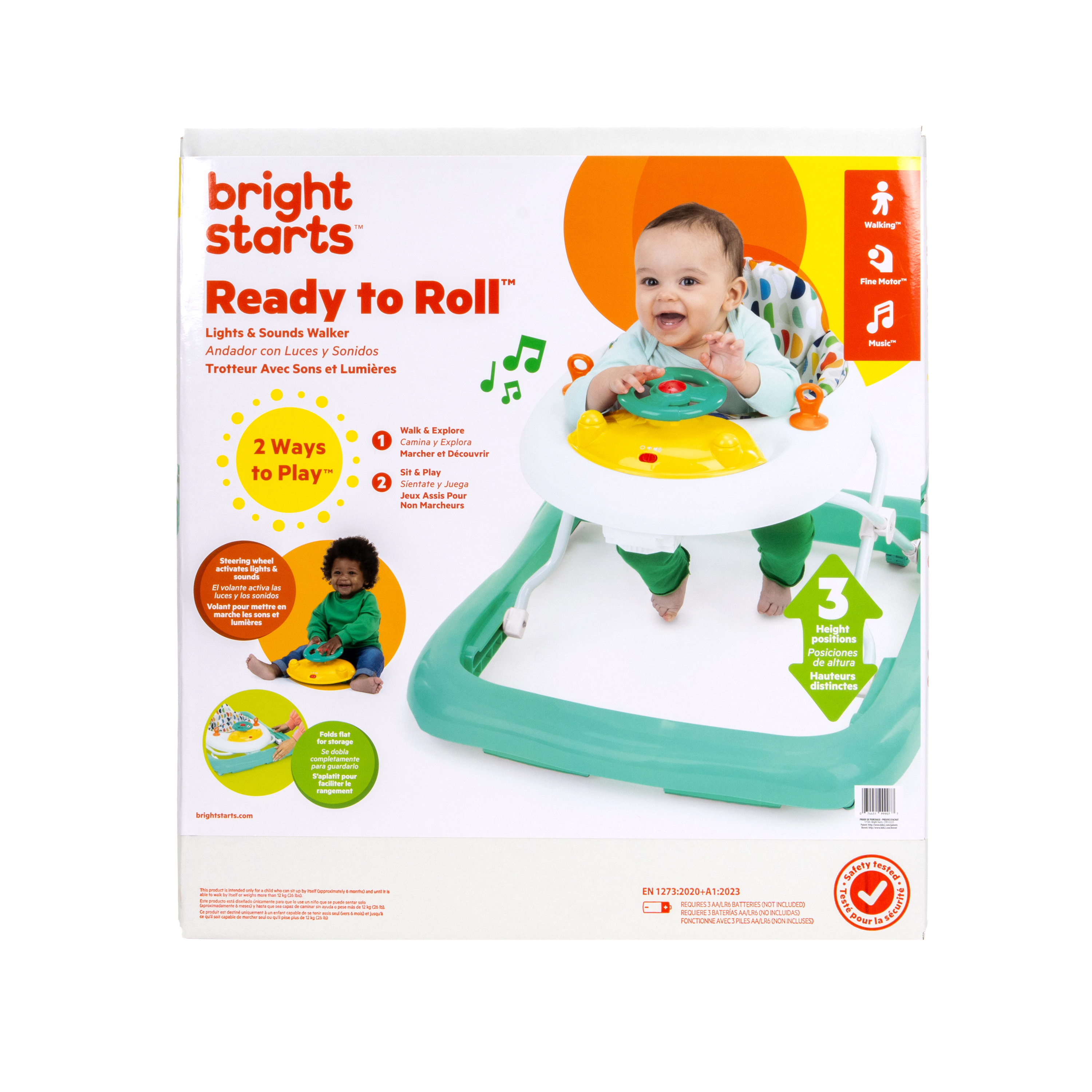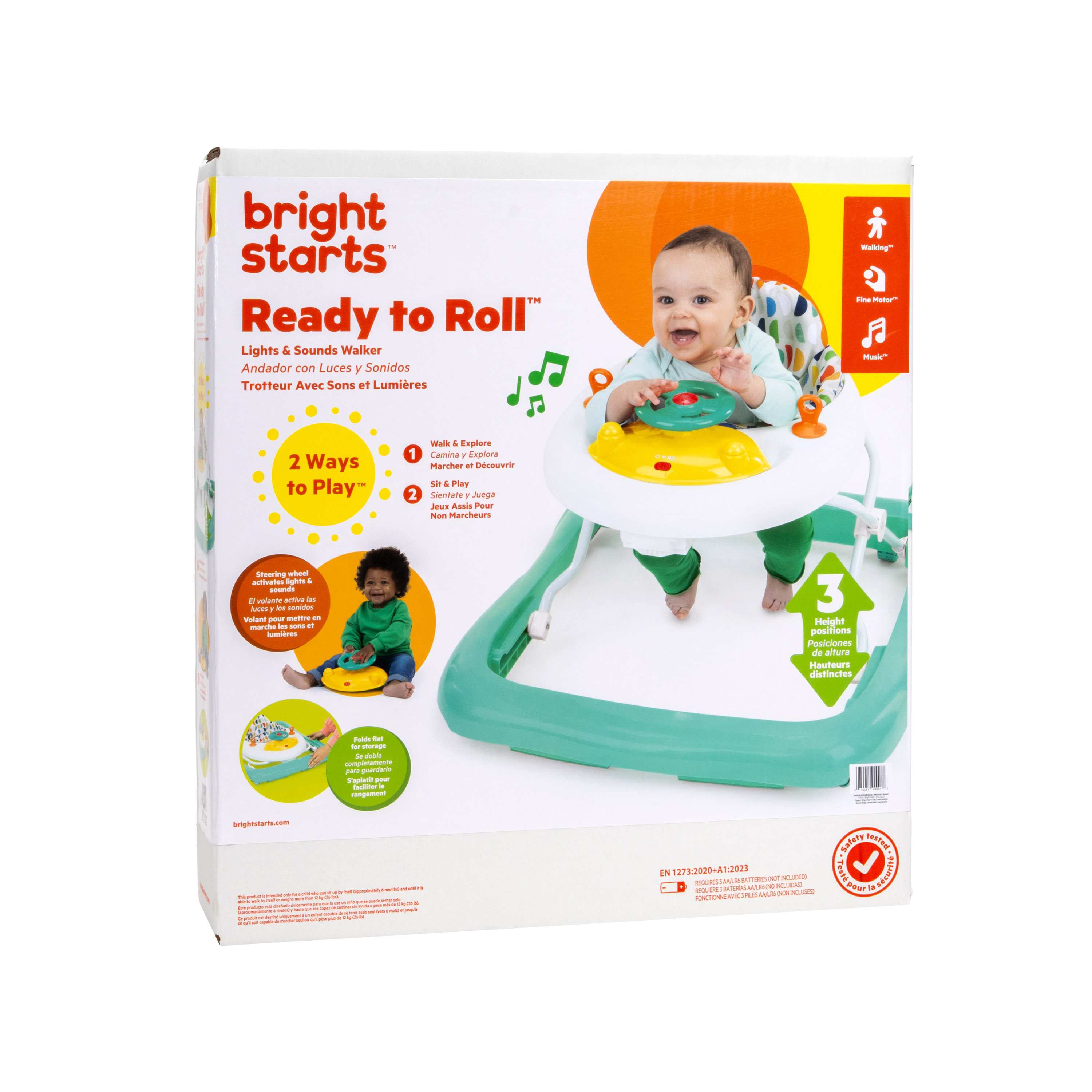 - Chodzik Bright Starts Ready to Roll oferuje 2 ekscytujące tryby: chodzenie i odkrywanie lub siedzenie i zabawa; zawiera zdejmowaną elektroniczną stację z zabawkami z kierownicą, światłami LED i autentycznymi dźwiękami samochodu; odłącz stację z zabawkami do zabawy na podłodze lub w podróży!