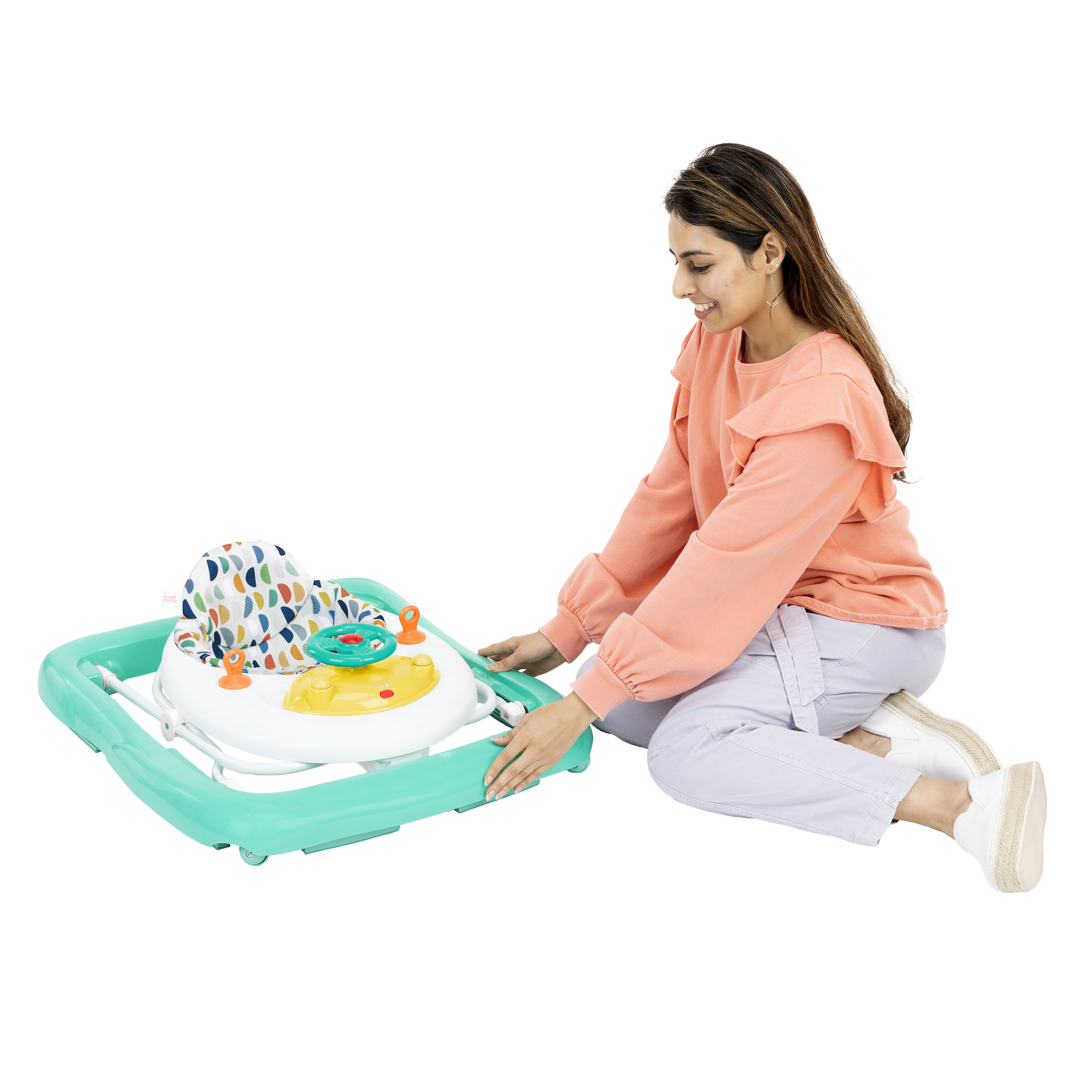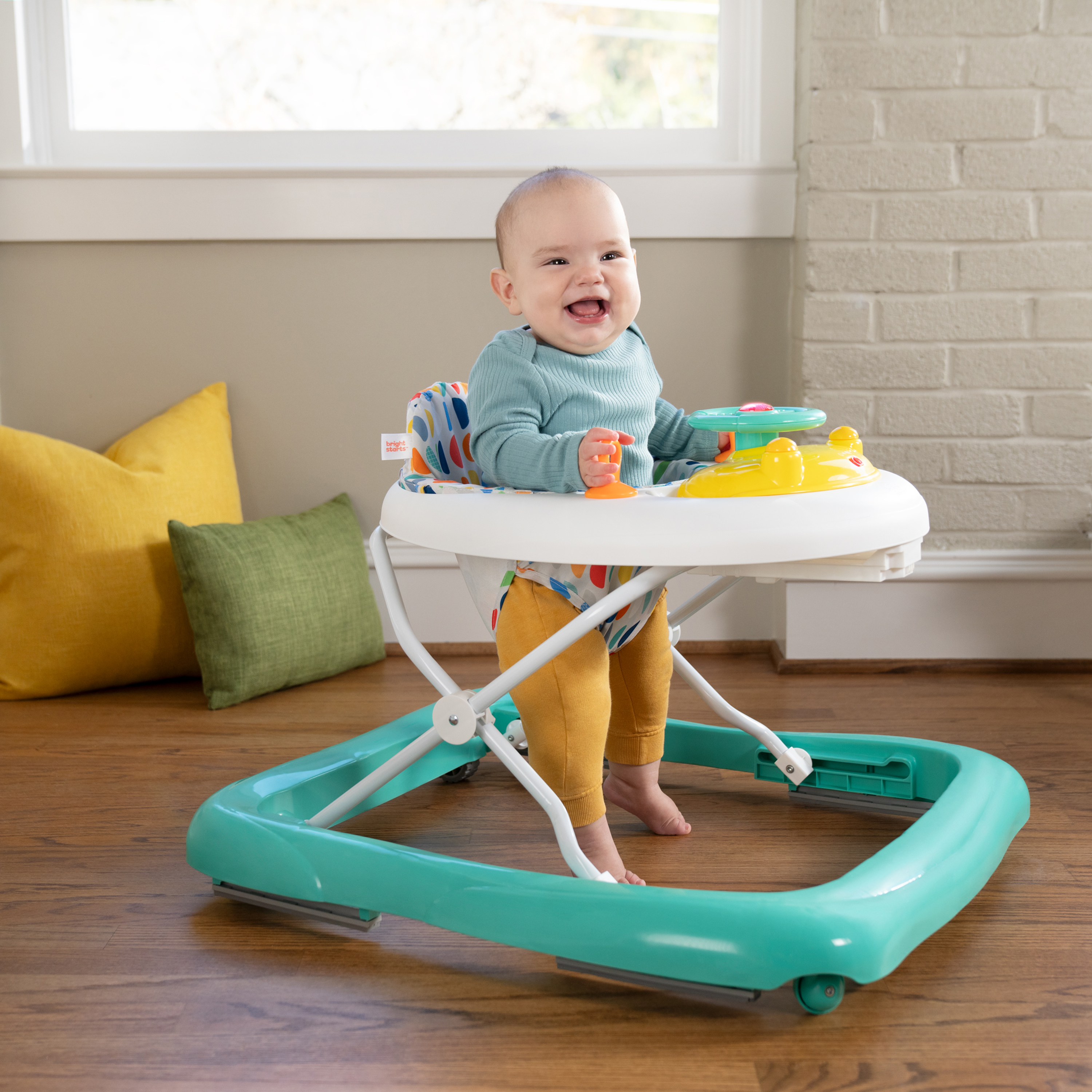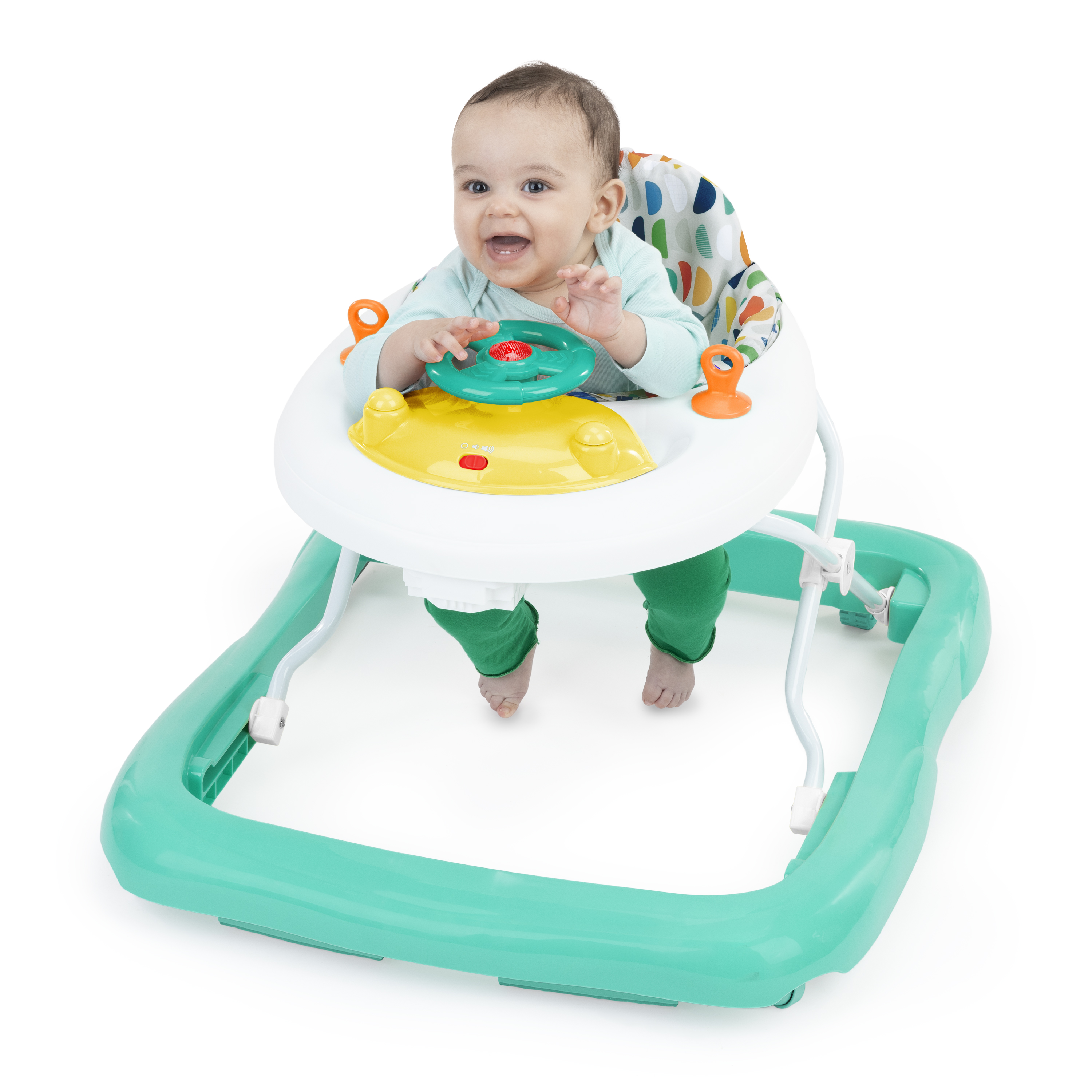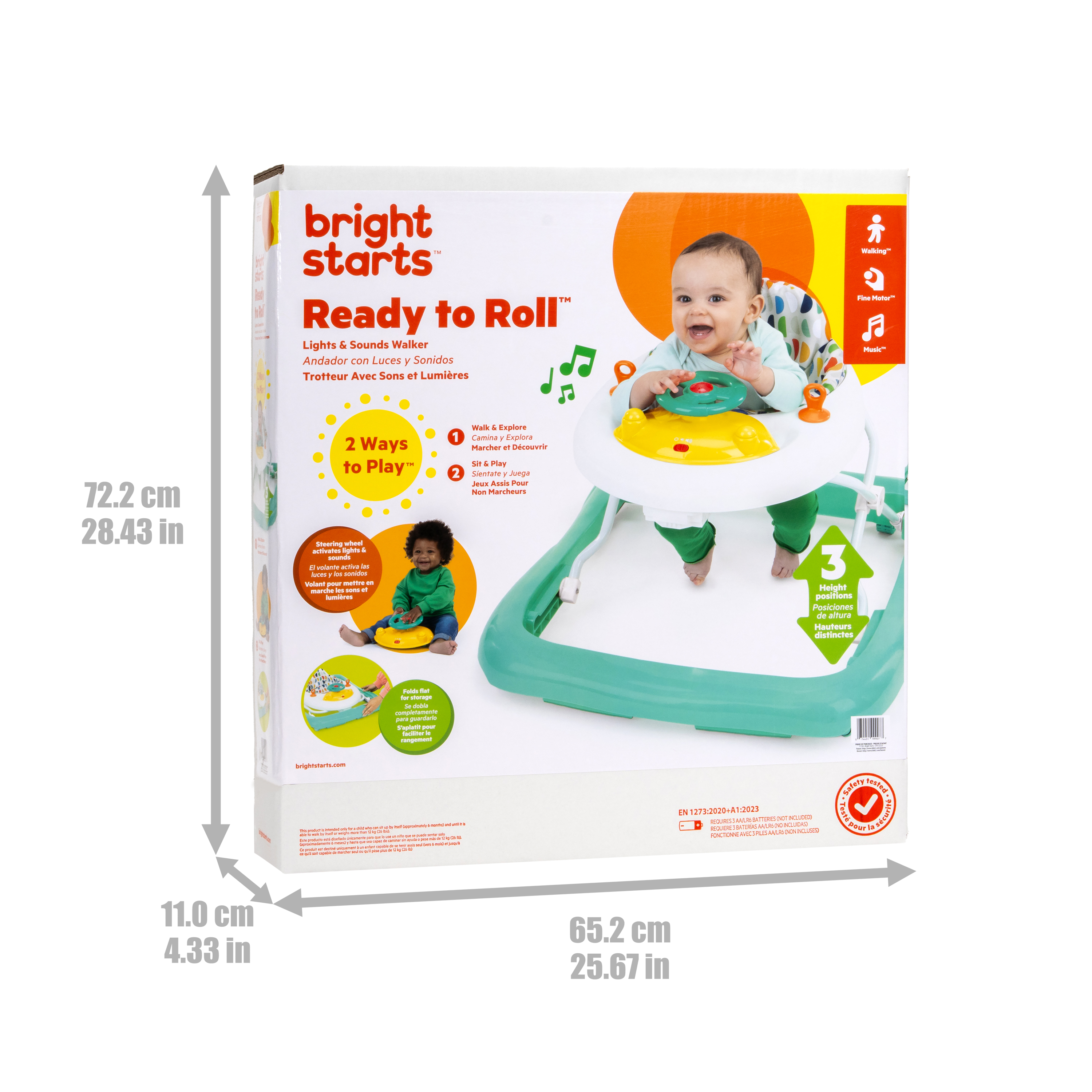 - Chodzik Bright Starts Ready to Roll oferuje 2 ekscytujące tryby: chodzenie i odkrywanie lub siedzenie i zabawa; zawiera zdejmowaną elektroniczną stację z zabawkami z kierownicą, światłami LED i autentycznymi dźwiękami samochodu; odłącz stację z zabawkami do zabawy na podłodze lub w podróży!