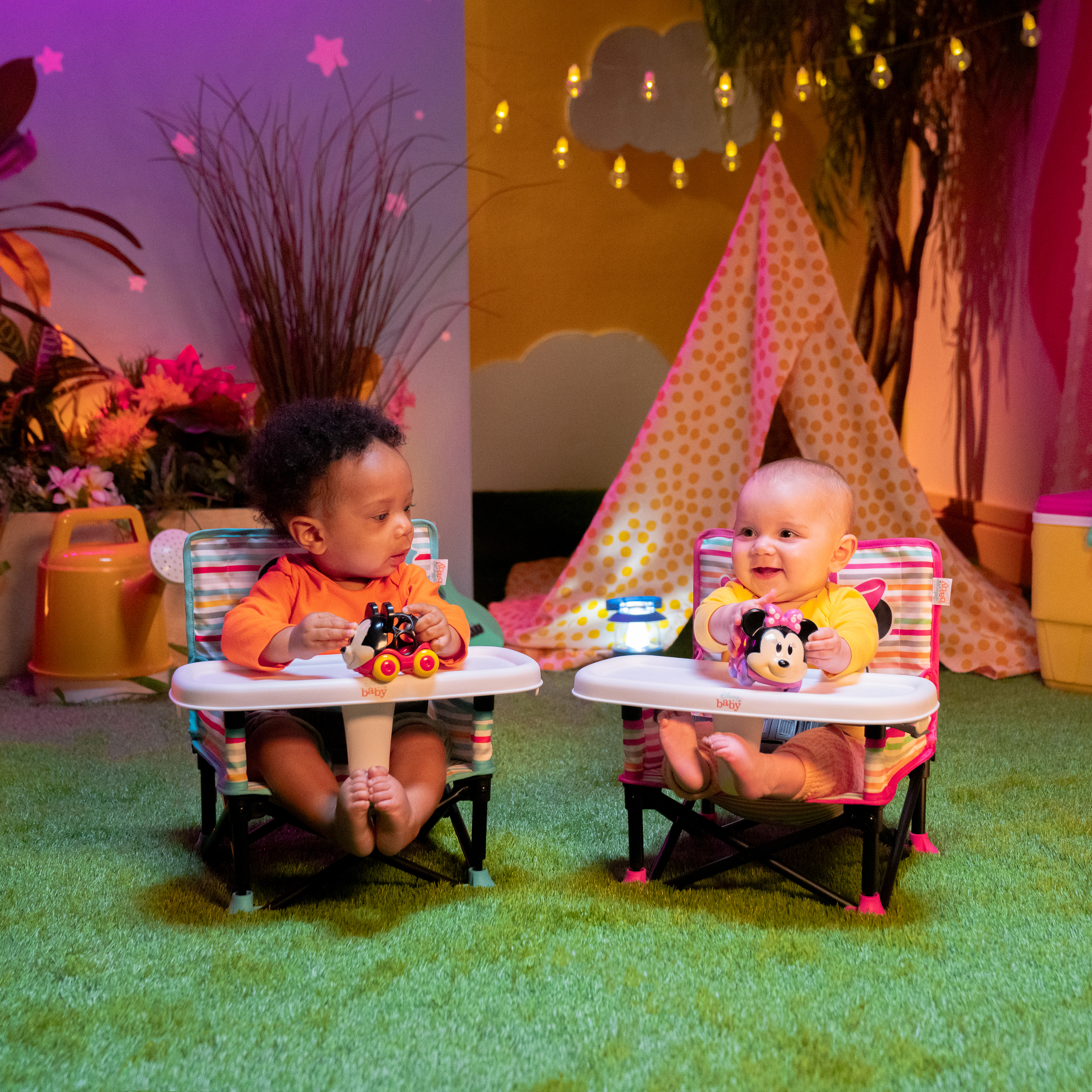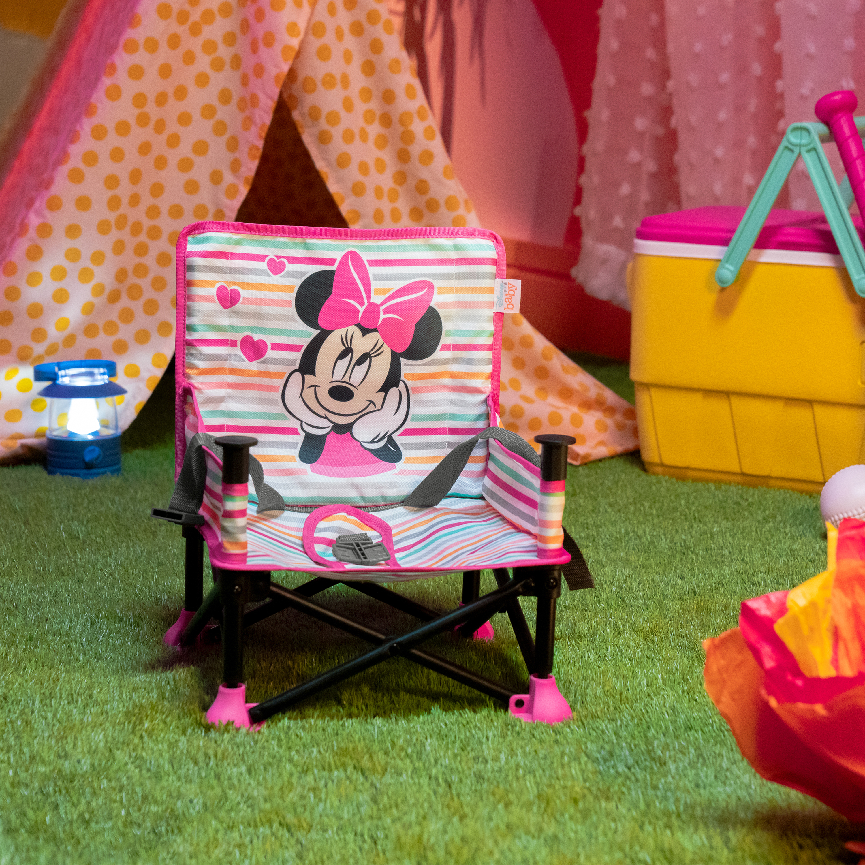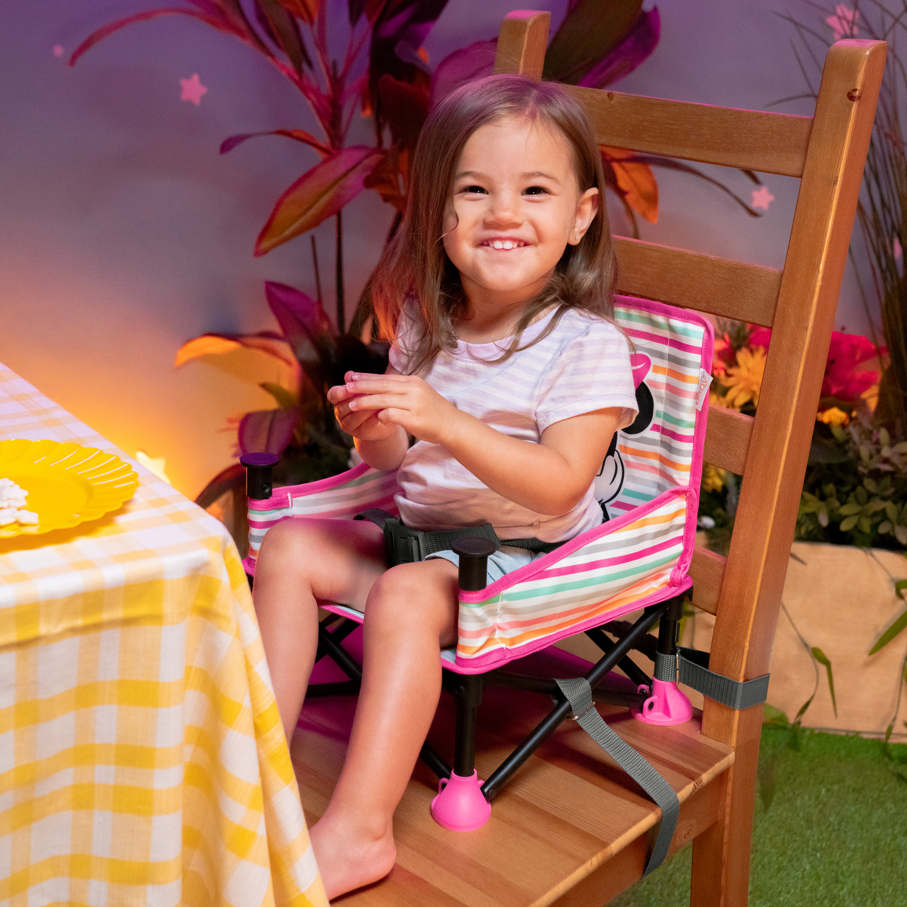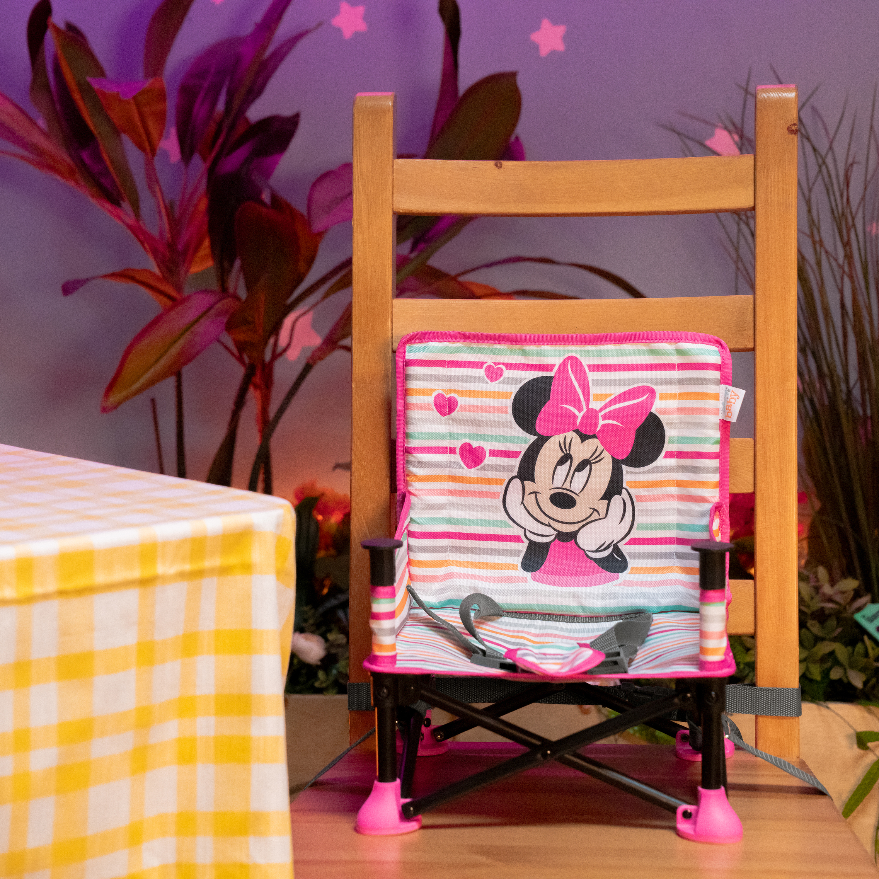 - Motyw Myszki Minnie Disneya; w zestawie 3-punktowe szelki zabezpieczające, taca pozbawiona BPA i pasy do mocowania do krzesła; dla dzieci w wieku od 6 miesięcy do 3 lat lub o masie ciała do 16,7 kg