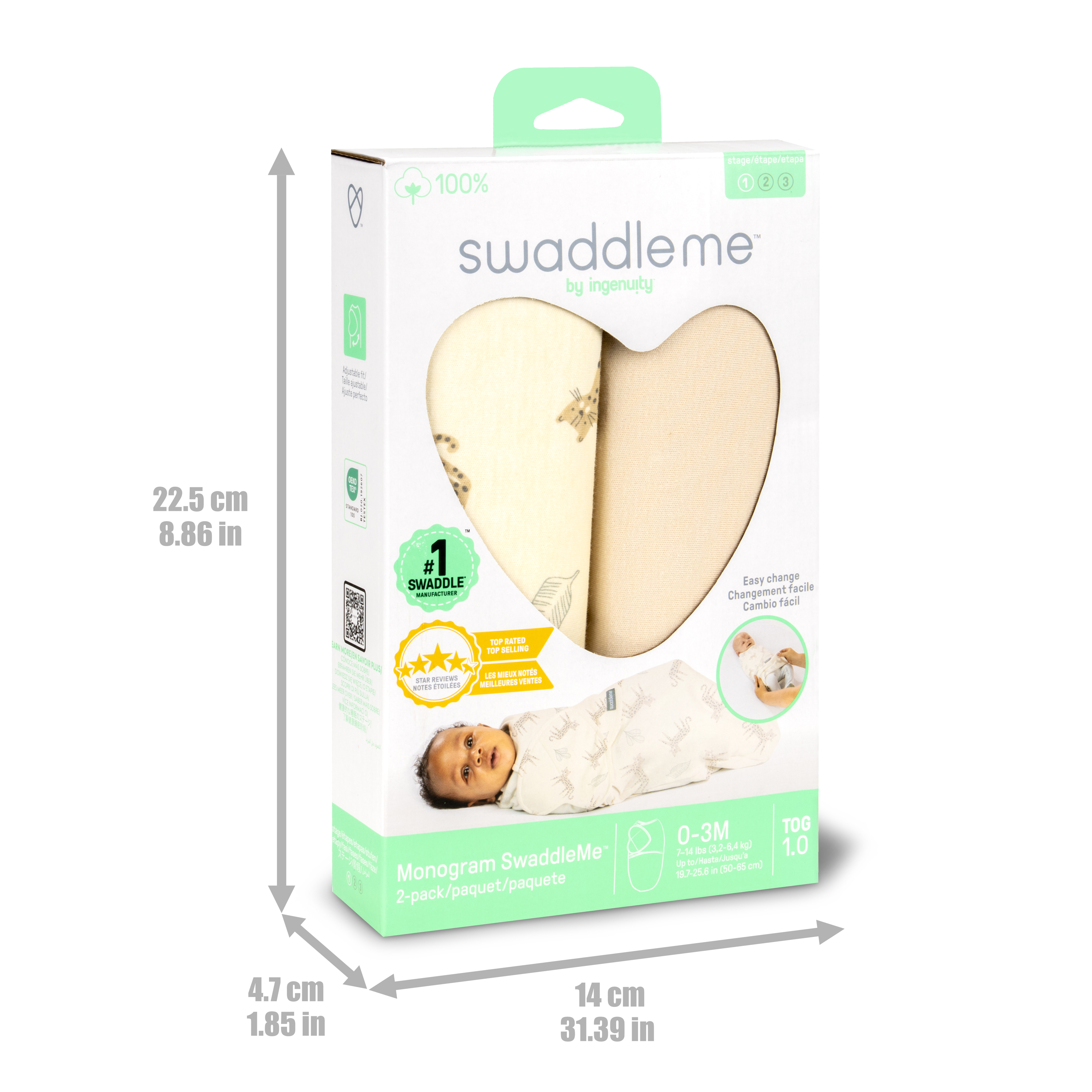 | Feature Bullets_Short Form | - Otulacz SwaddleMe by Ingenuity Monogram Collection jest uszyty ze 100% bawełny