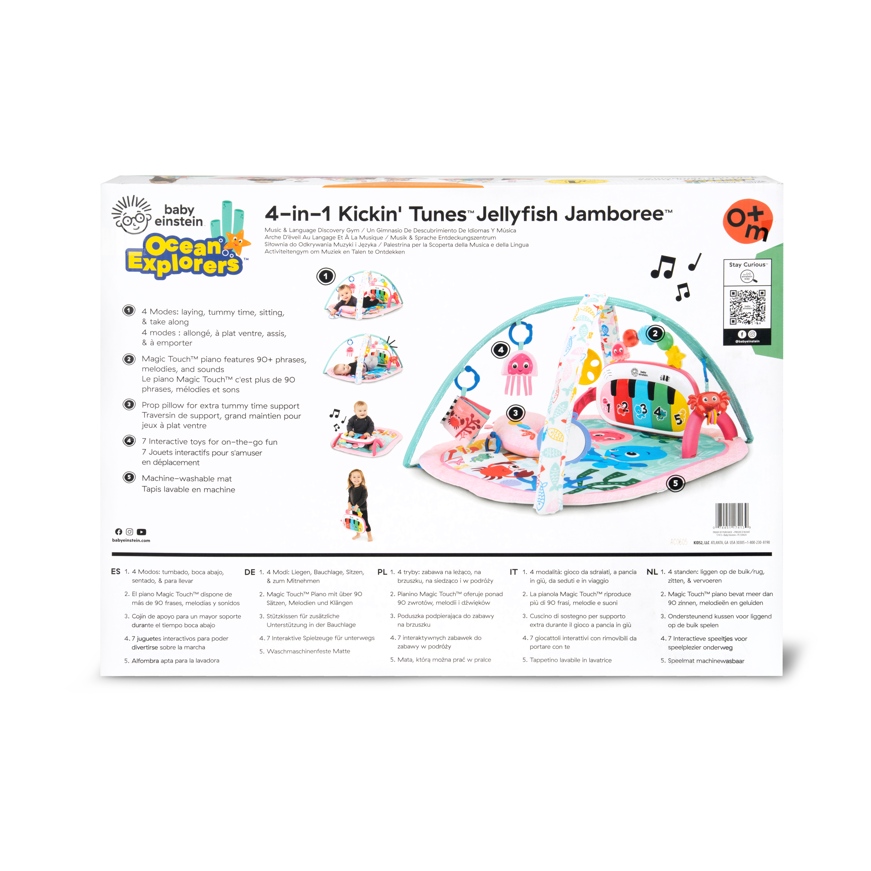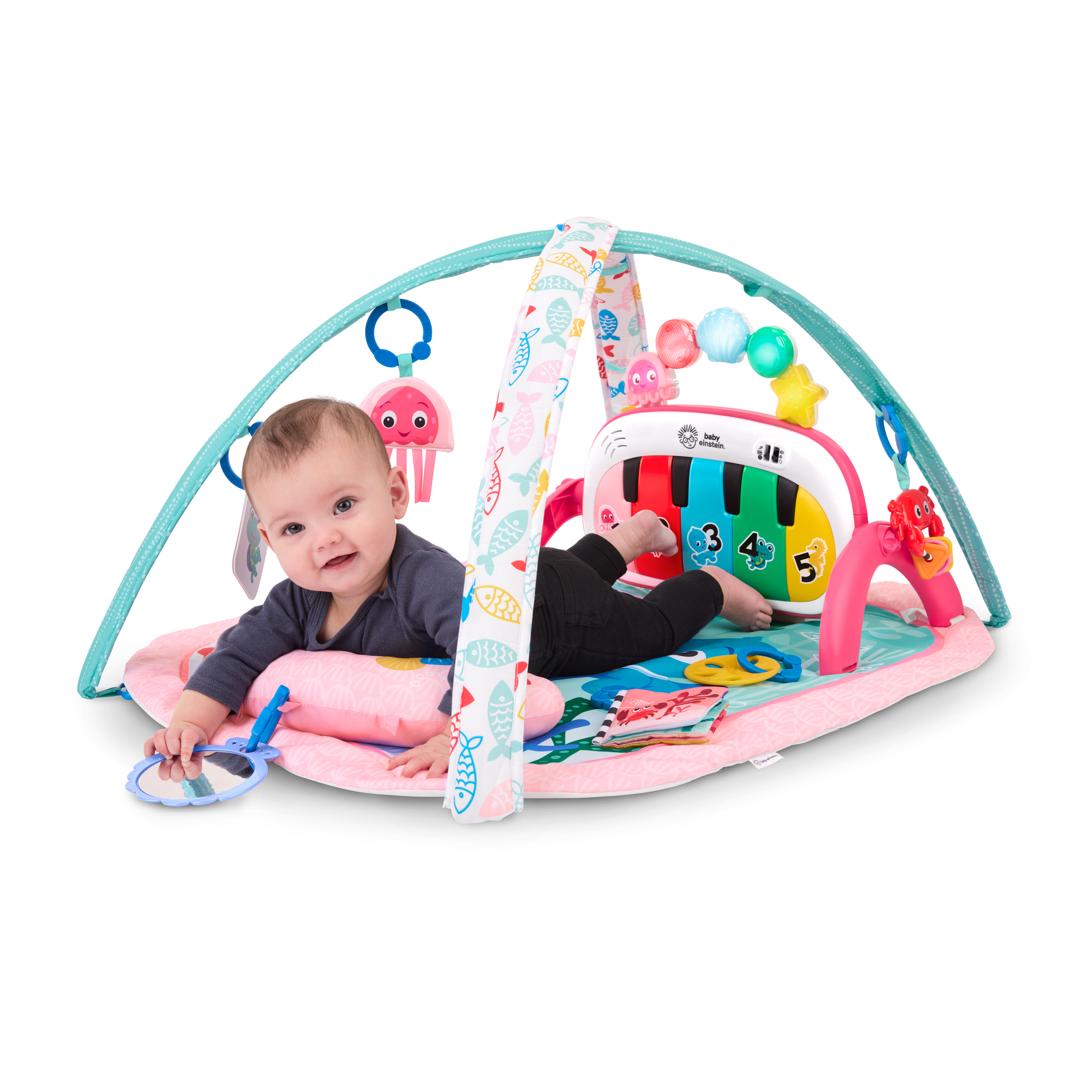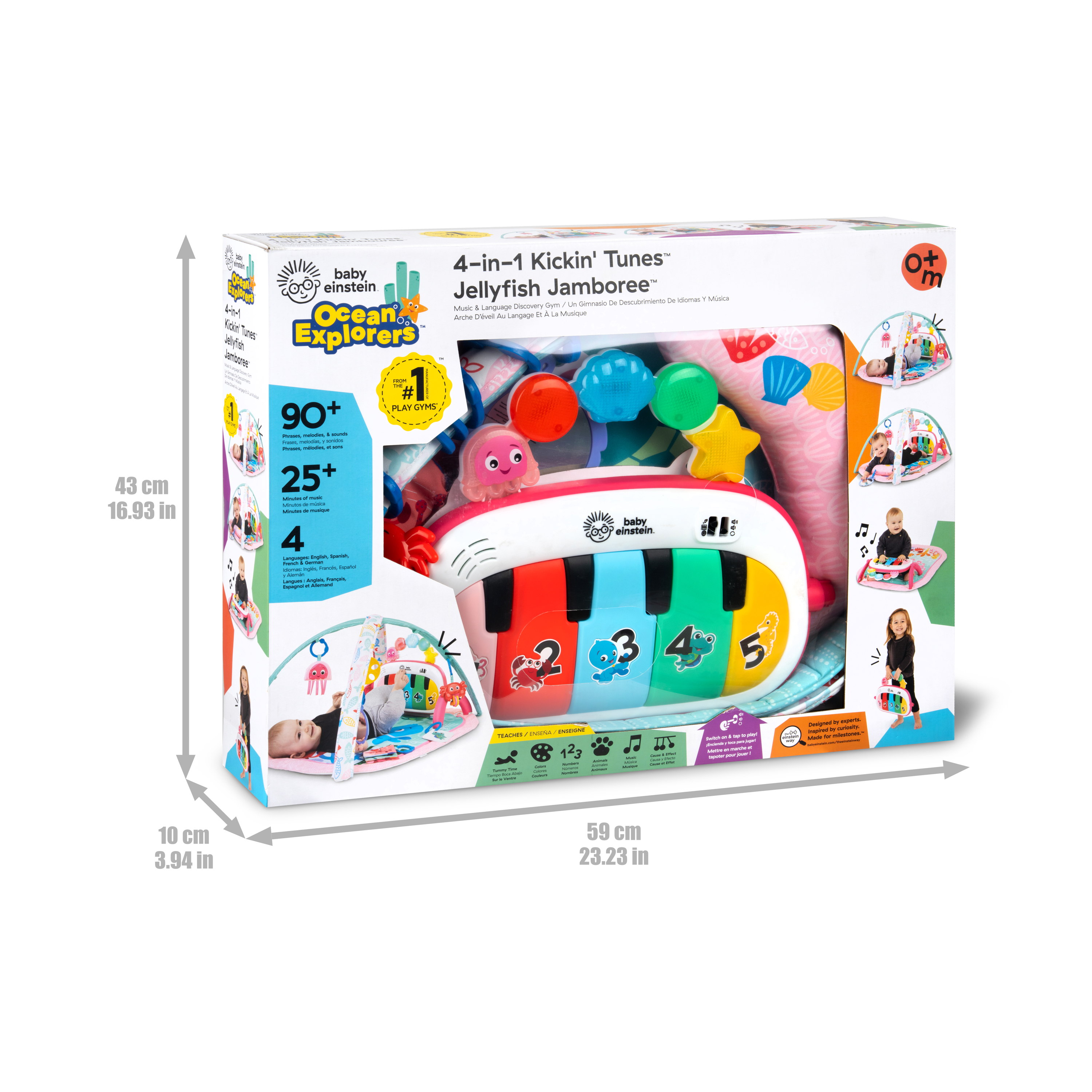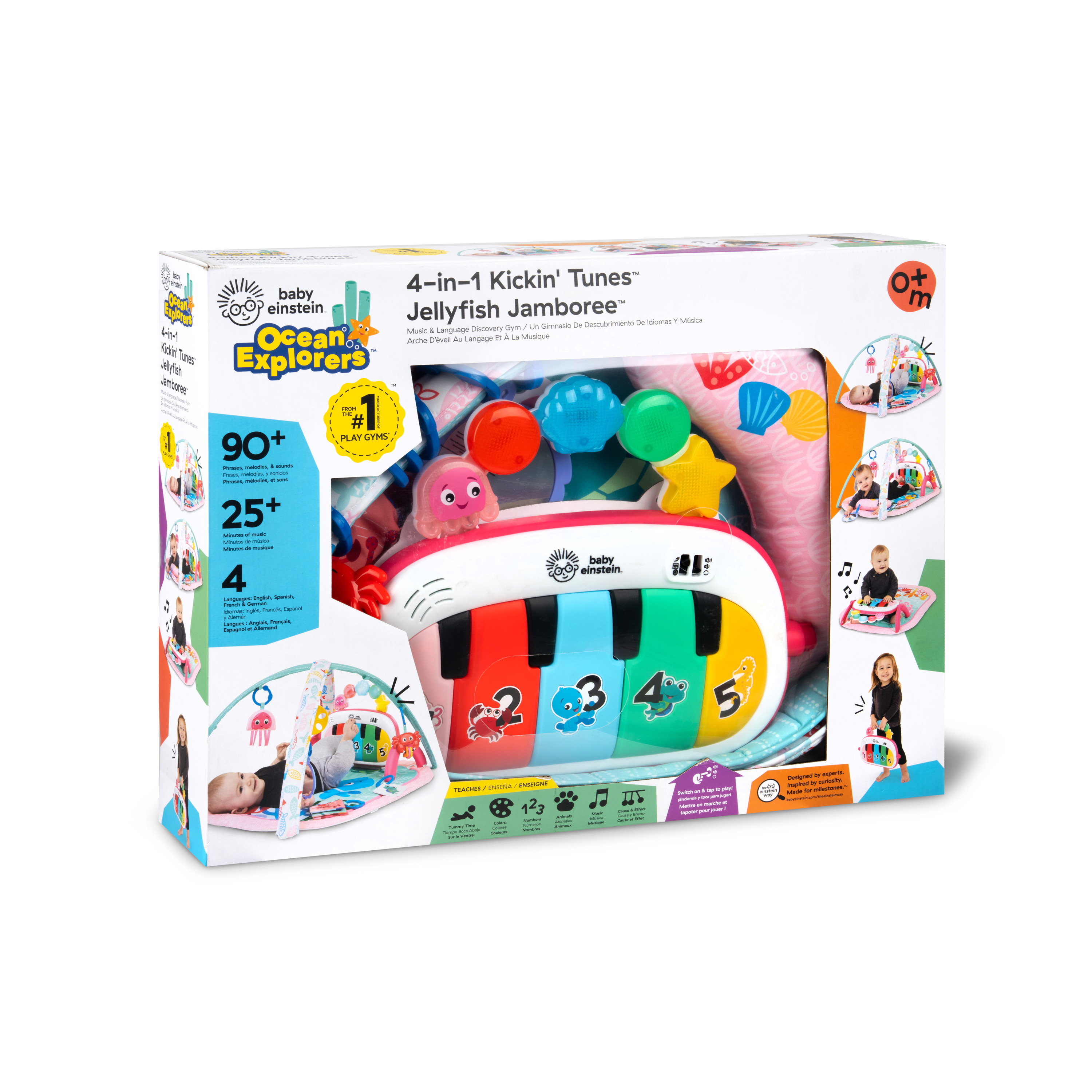 - Mata edukacyjna do odkrywania muzyki i języków Baby Einstein Ocean Explorers 4 w 1 Kickin' Tunes Jellyfish Jamboree w kolorze różowym wspiera rozwój motoryki małej i dużej oraz umiejętności przyczynowo-skutkowe; dla dzieci w wieku od 0 do 36 miesięcy