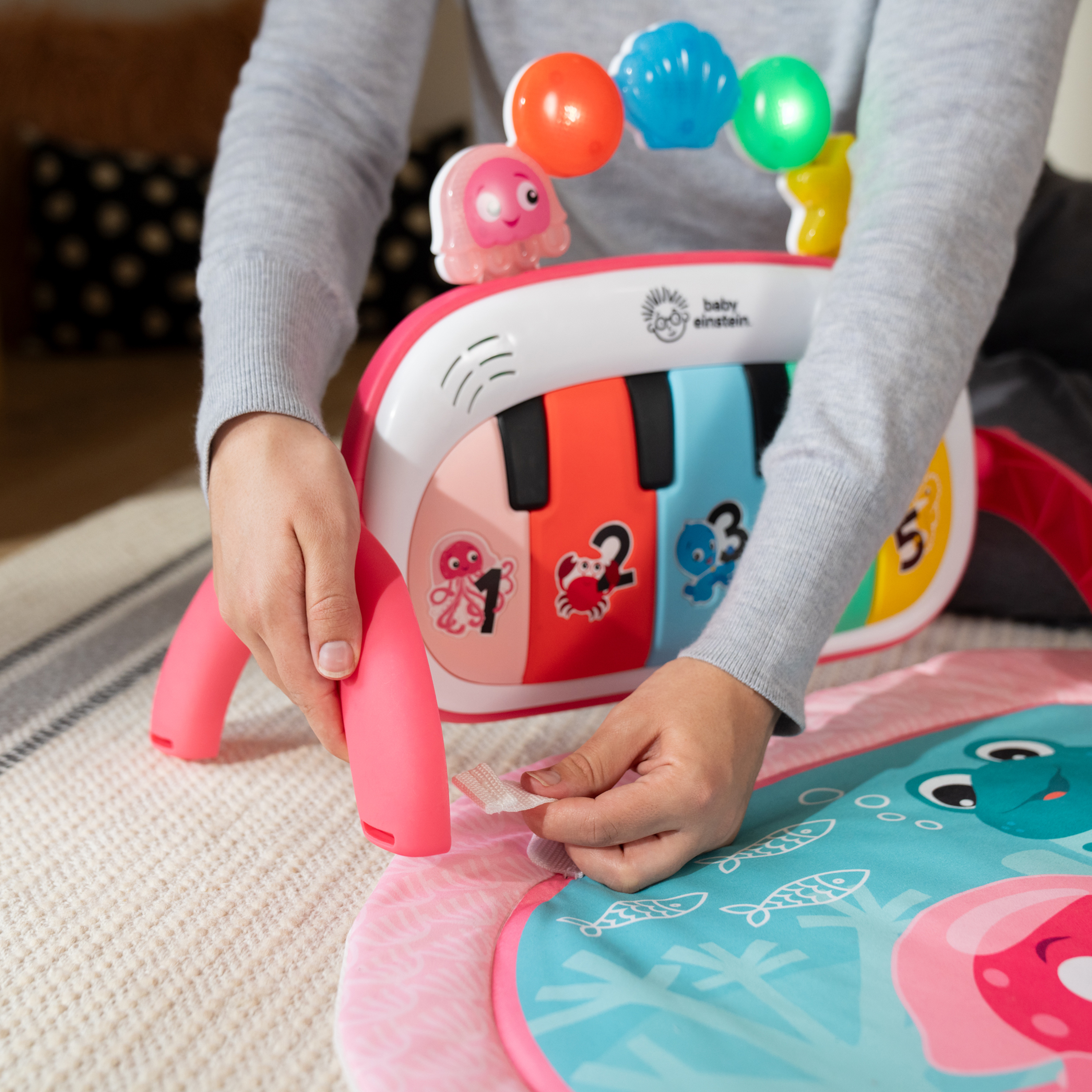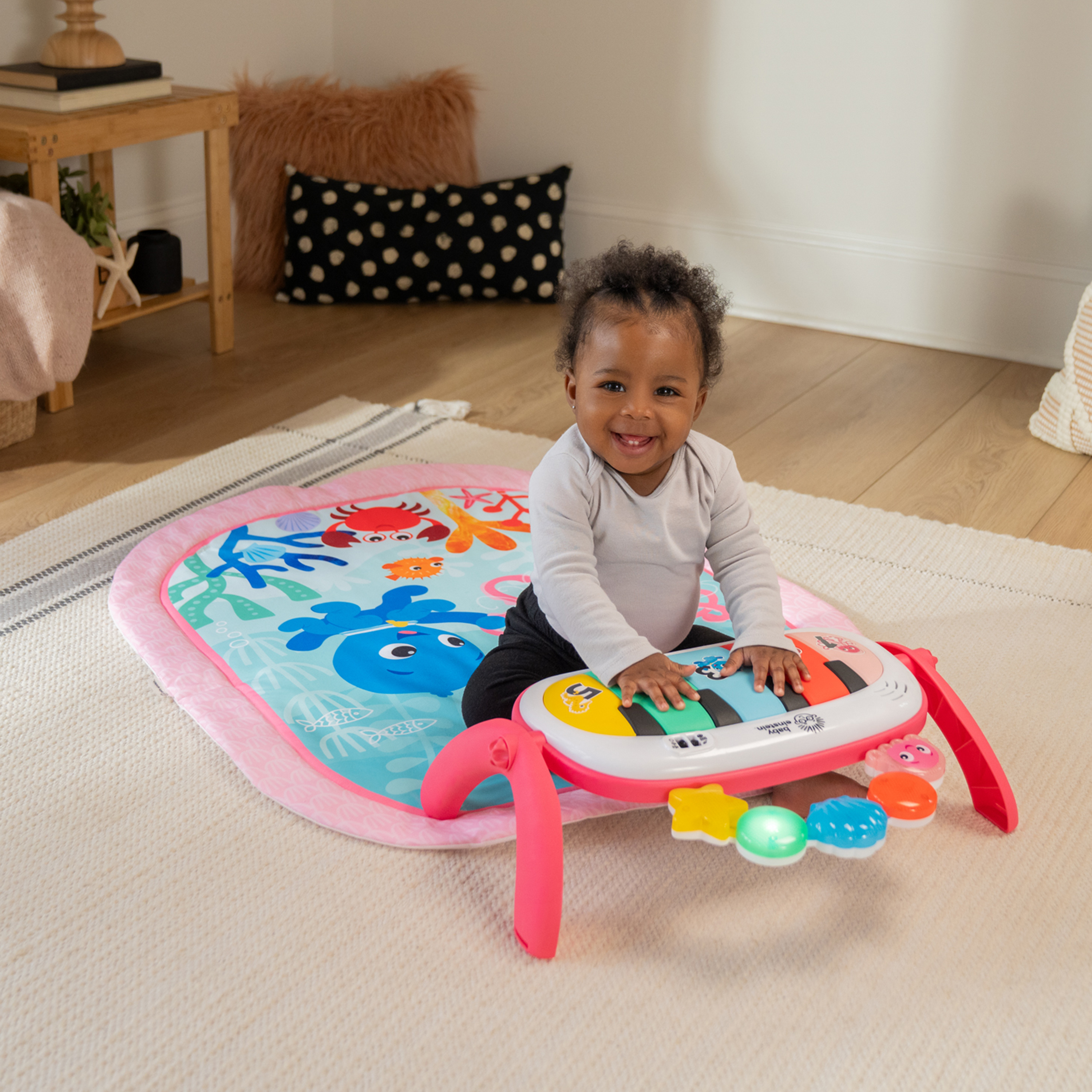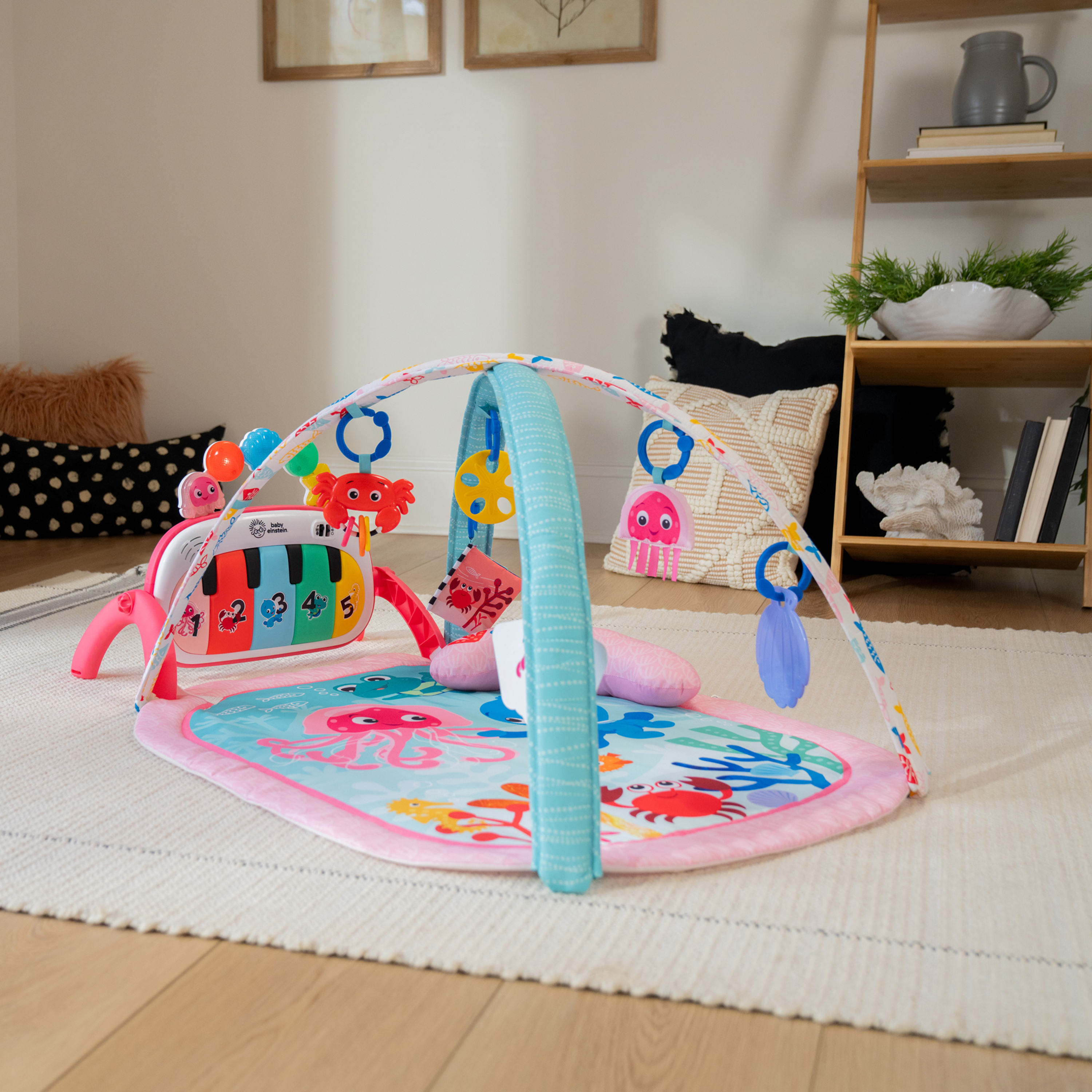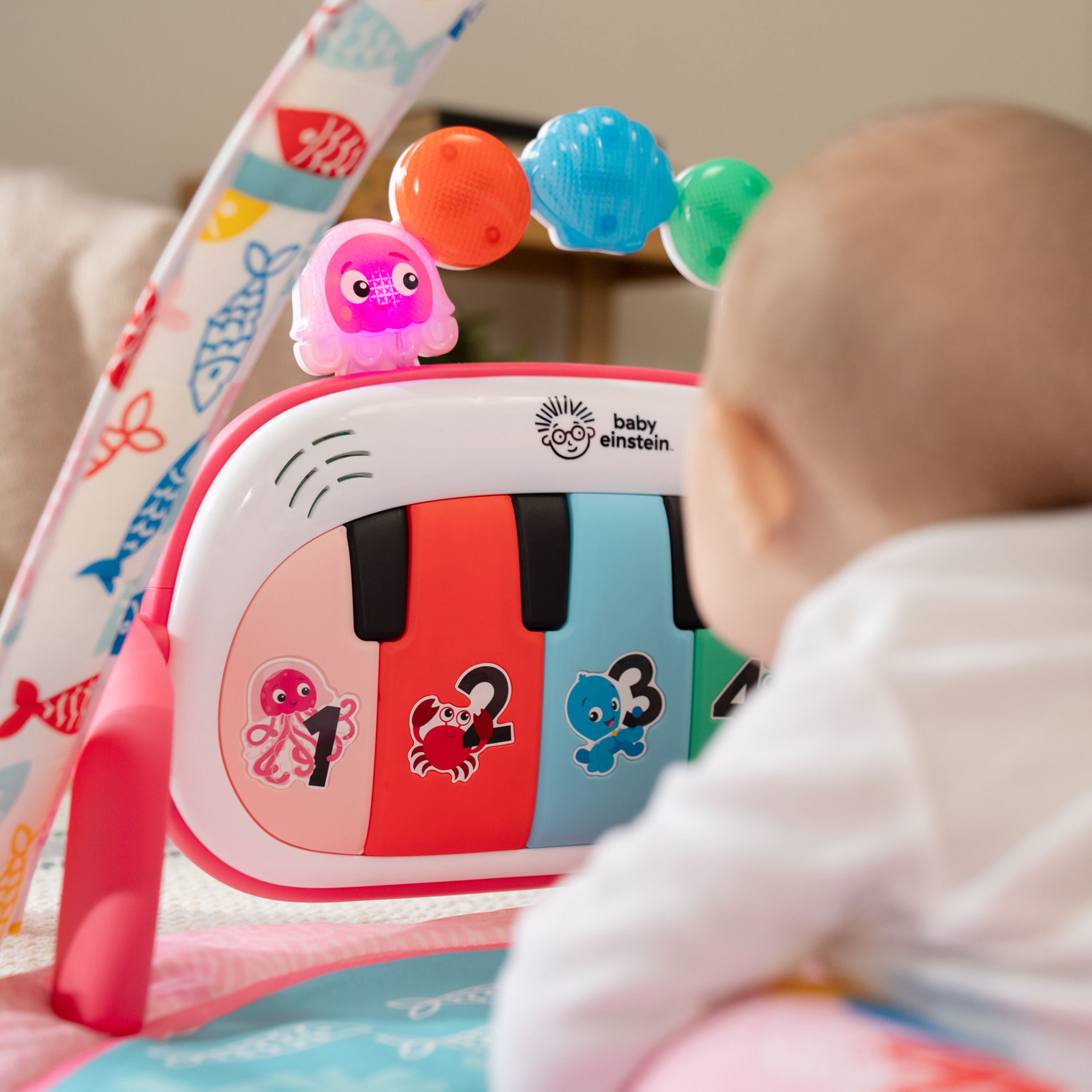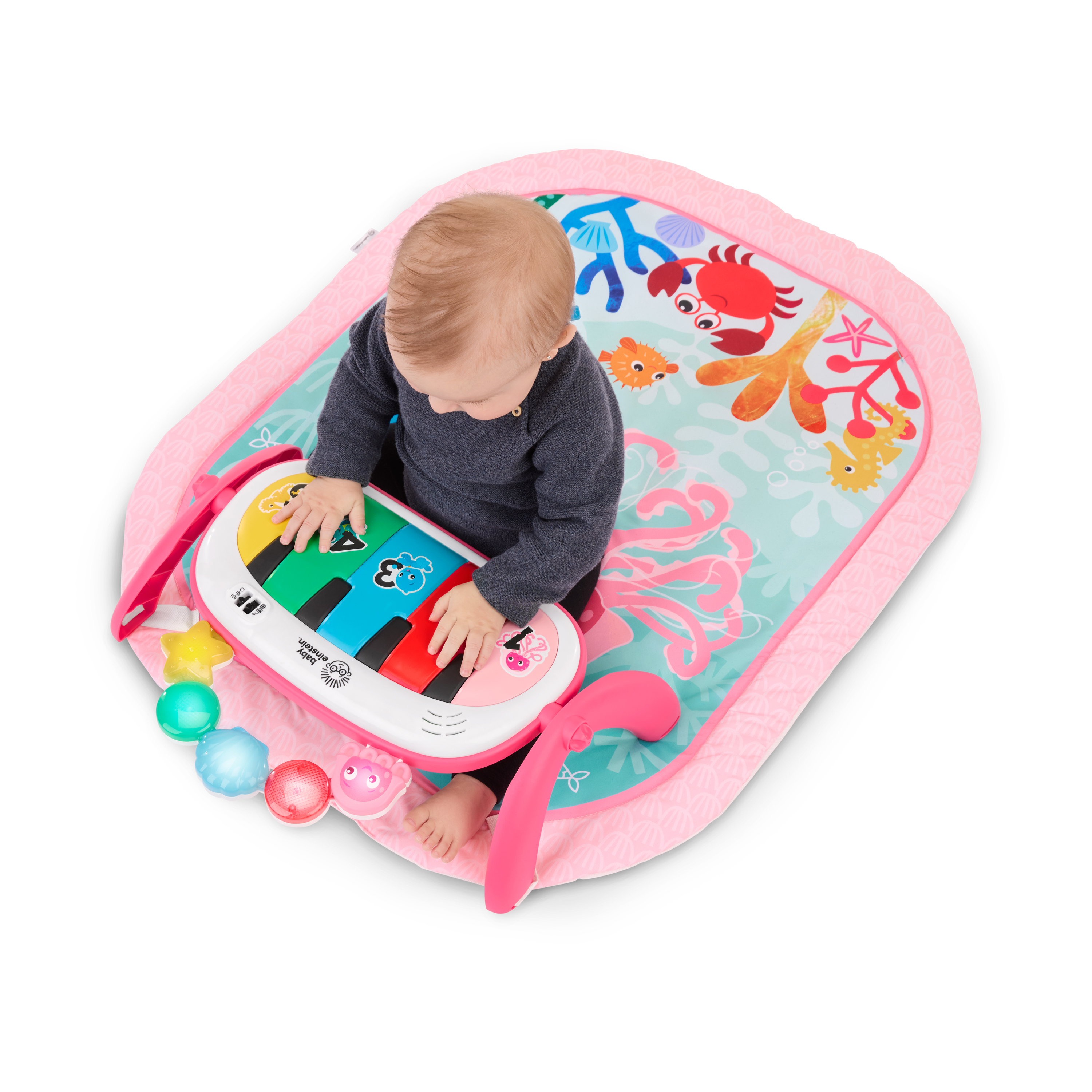 - Mata edukacyjna do odkrywania muzyki i języków Baby Einstein Ocean Explorers 4 w 1 Kickin' Tunes Jellyfish Jamboree w kolorze różowym wspiera rozwój motoryki małej i dużej oraz umiejętności przyczynowo-skutkowe; dla dzieci w wieku od 0 do 36 miesięcy