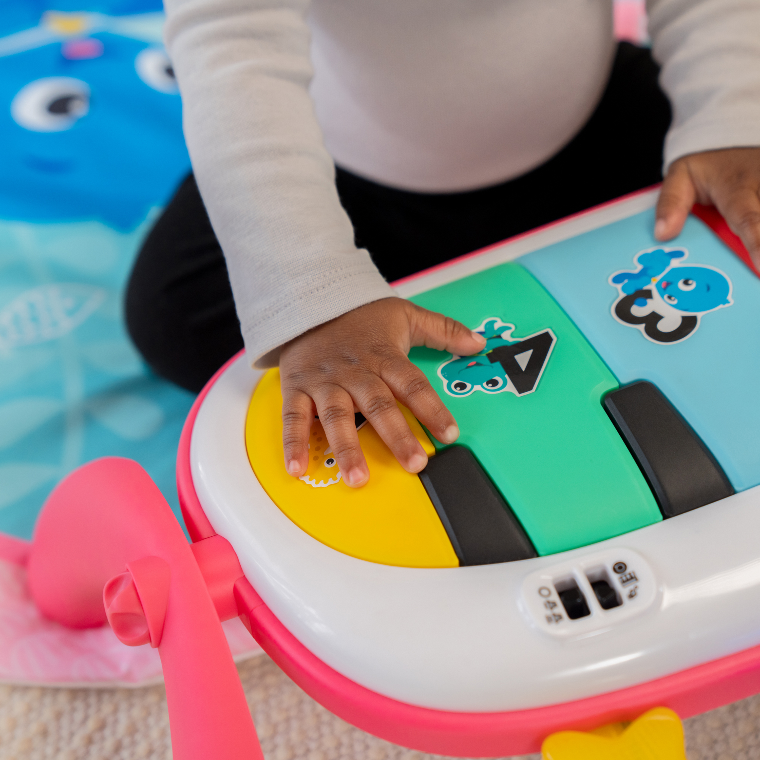 - Pianinko nagradza ruchy dziecka ponad 90 melodiami, dźwiękami, światełkami i frazami i może być używane do zabawy na brzuszku lub na leżąco, odwrócone do zabawy na siedząco lub zdjęte do zabawy w podróży