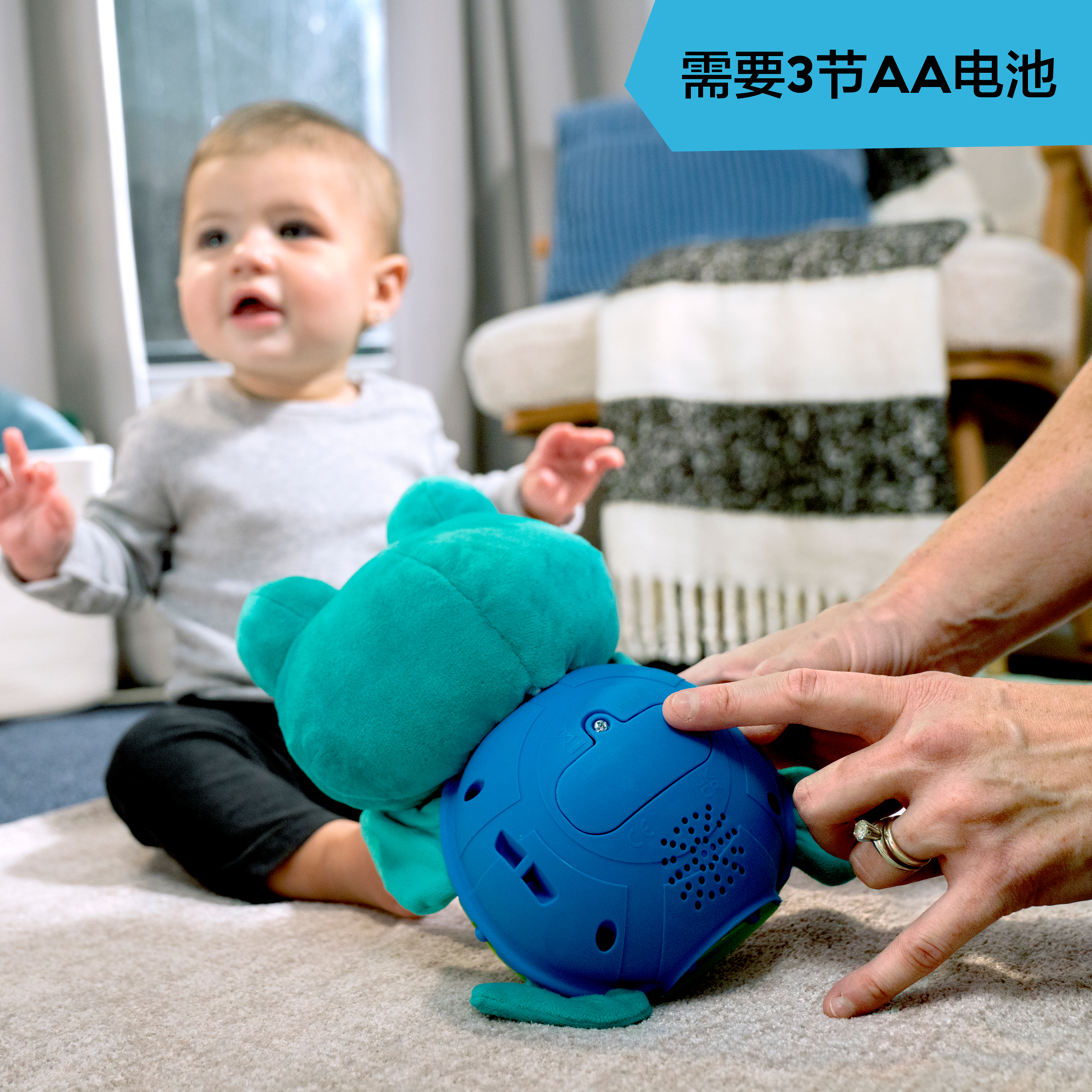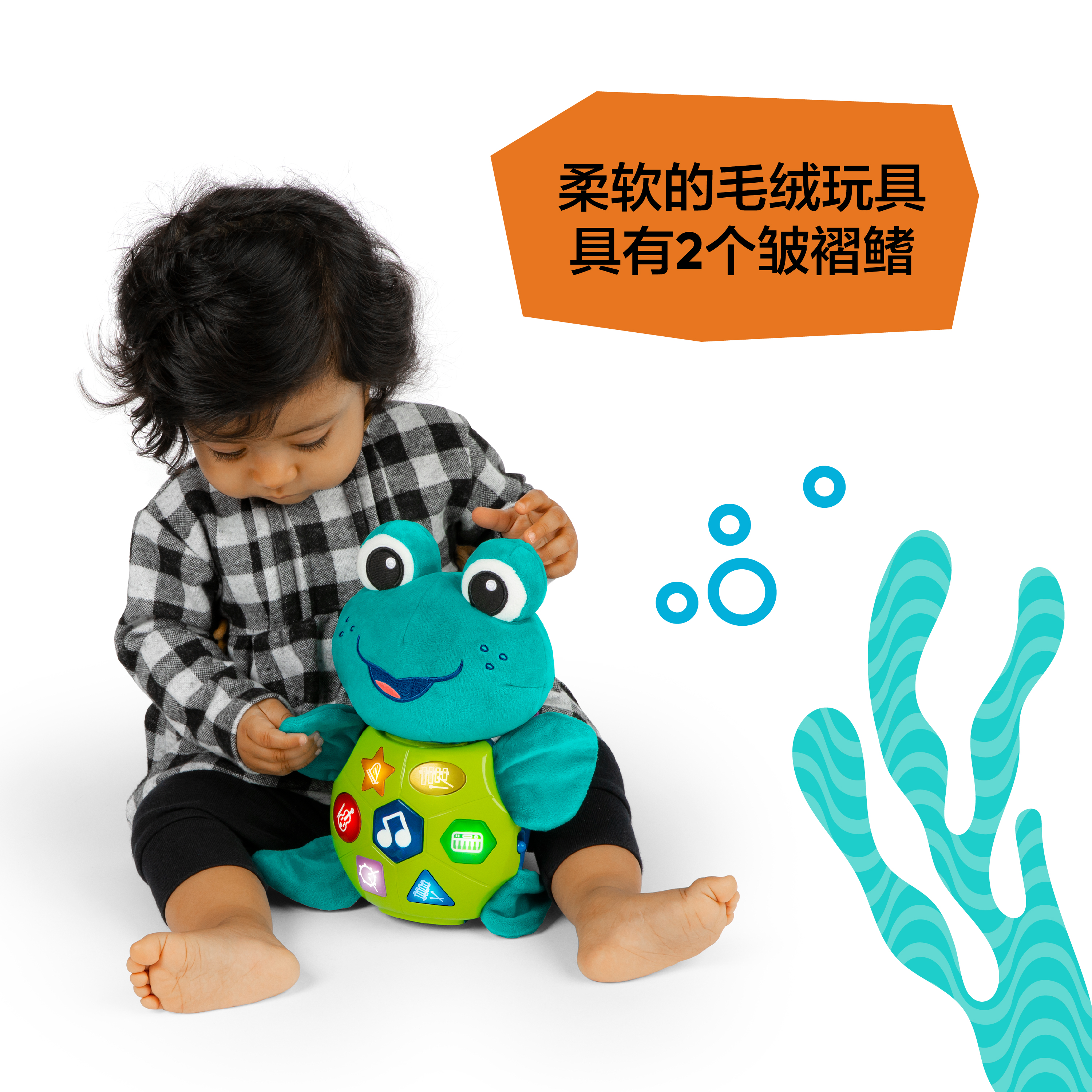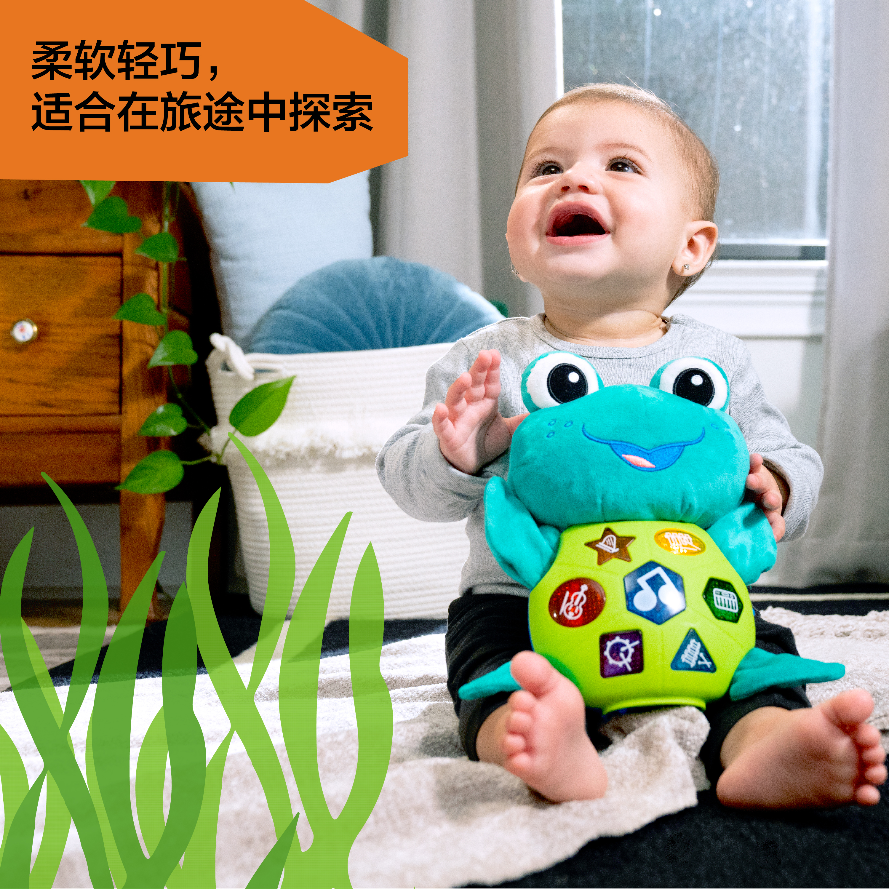 - 柔软、舒适的毛绒玩具,以小小爱因斯坦(Baby Einstein )海洋探索家节目中的海龟 Neptune 为特色,并通过灯光、50 多种旋律和声音以及会发出沙沙声的脚蹼来吸引宝宝的感官。