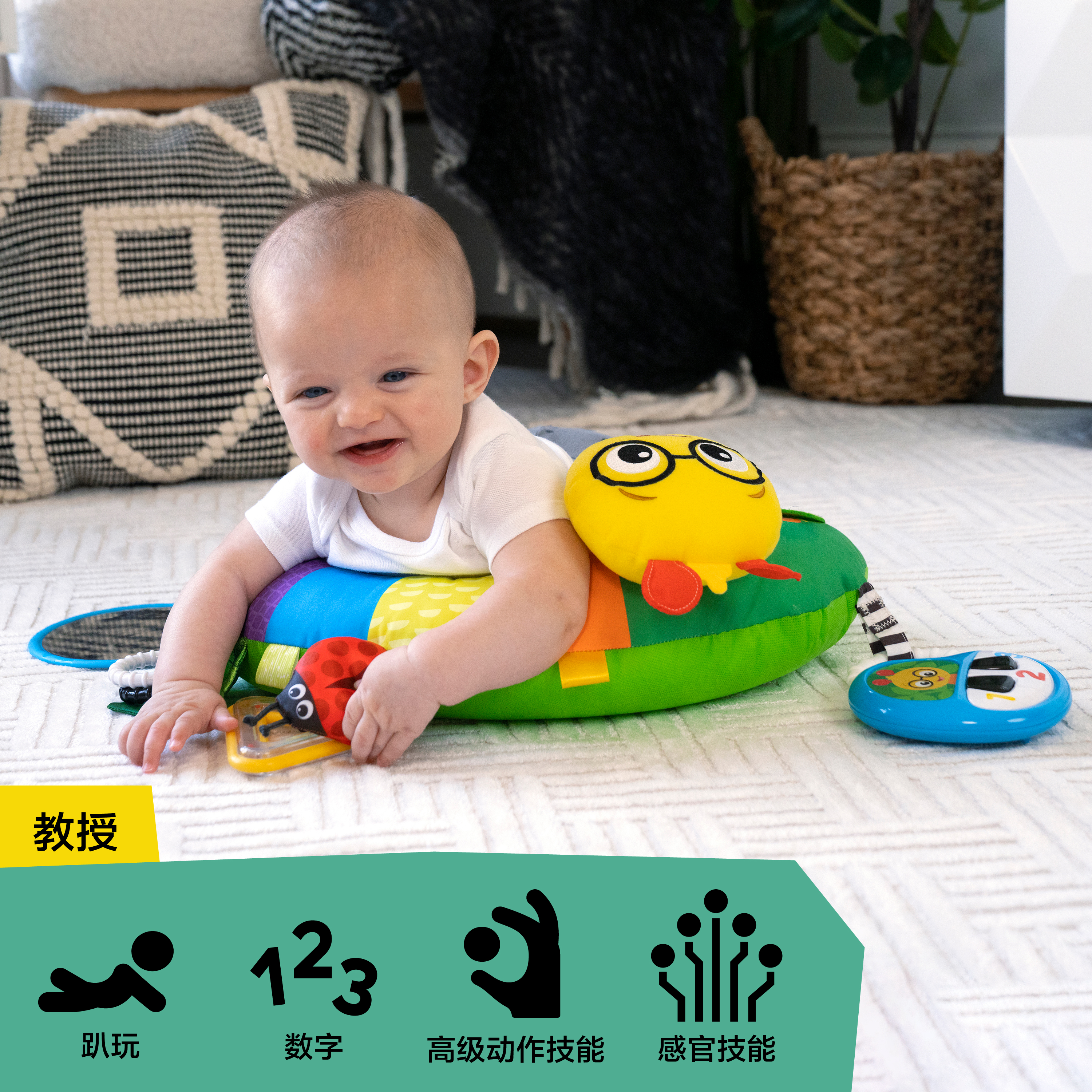 - 小小爱因斯坦(Baby Einstein) Cal-a-Pillow趴玩活动活动枕头具有9个多感官元素,支持宝宝的高级动作技能和一般动作技能发展。