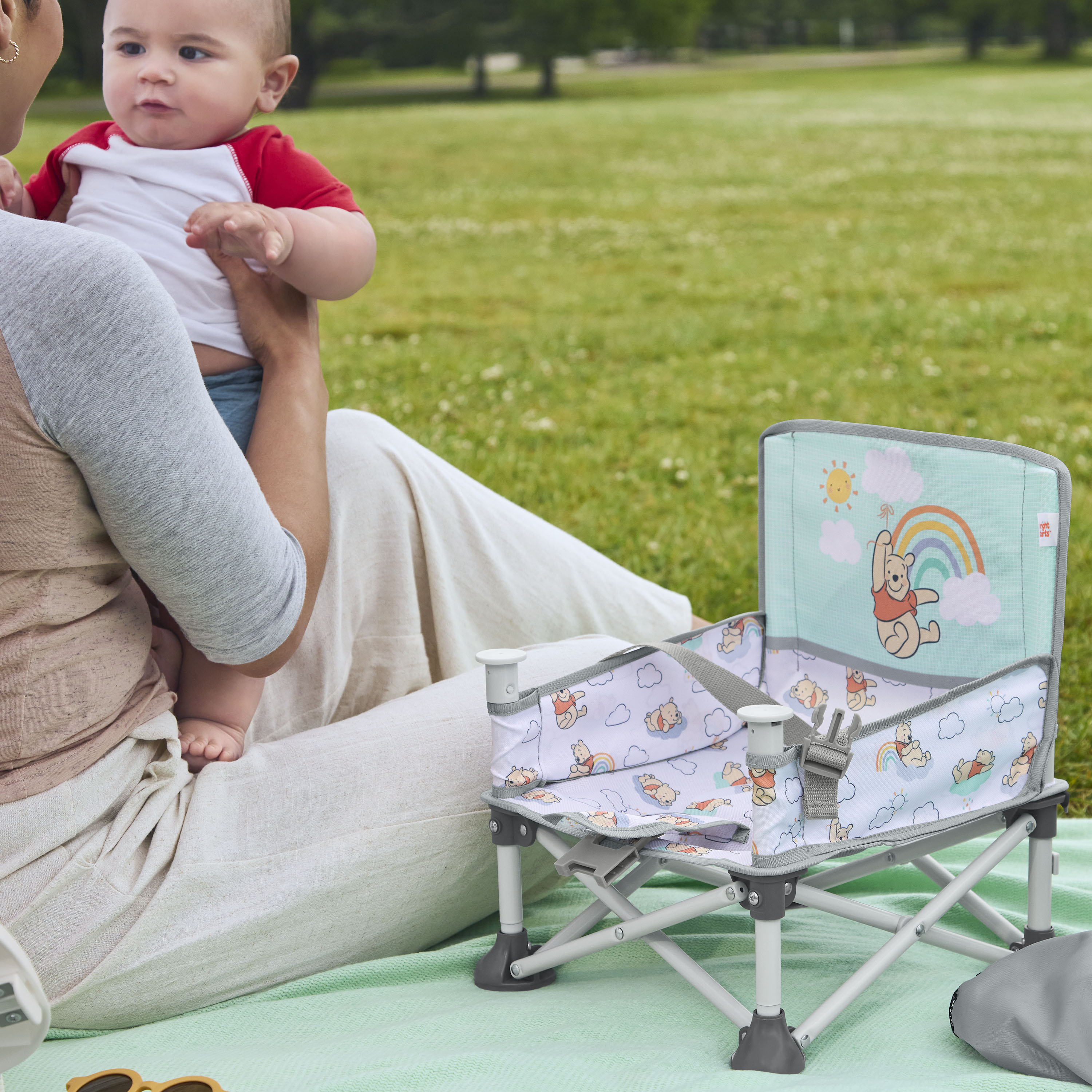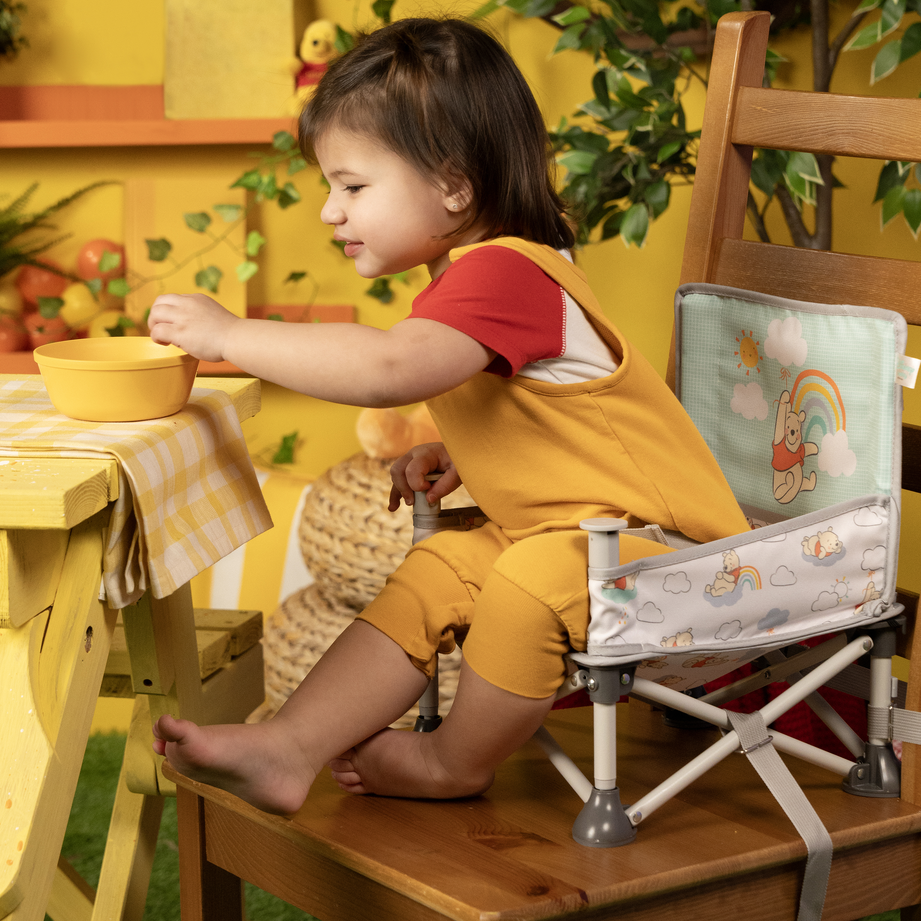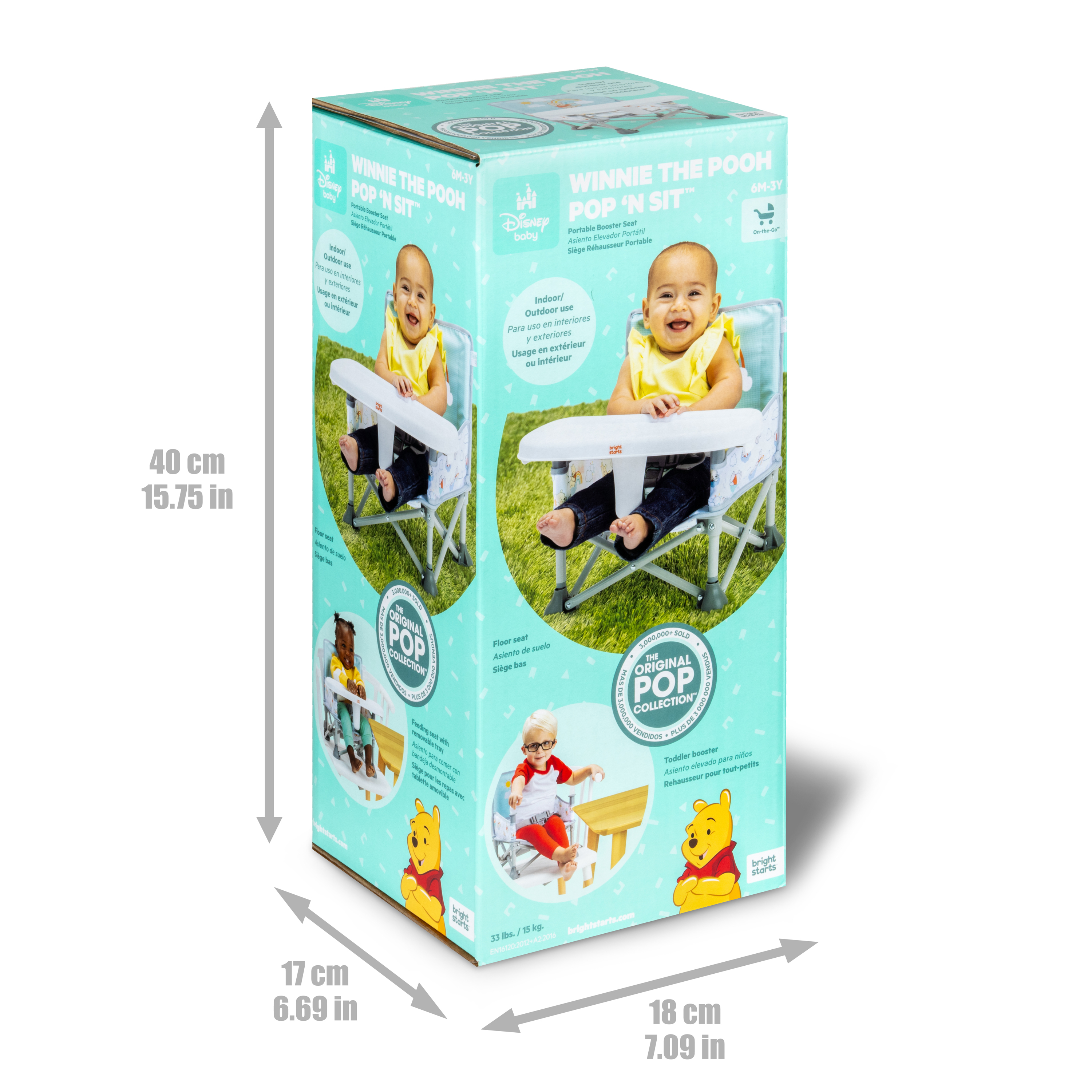 - 中性迪斯尼小熊维尼设计;随附 3 点式安全带、不含 BPA 的托盘和用于固定在成人椅上的安全带;适用于 6 个月至 3 岁或体重不超过 37 磅宝宝