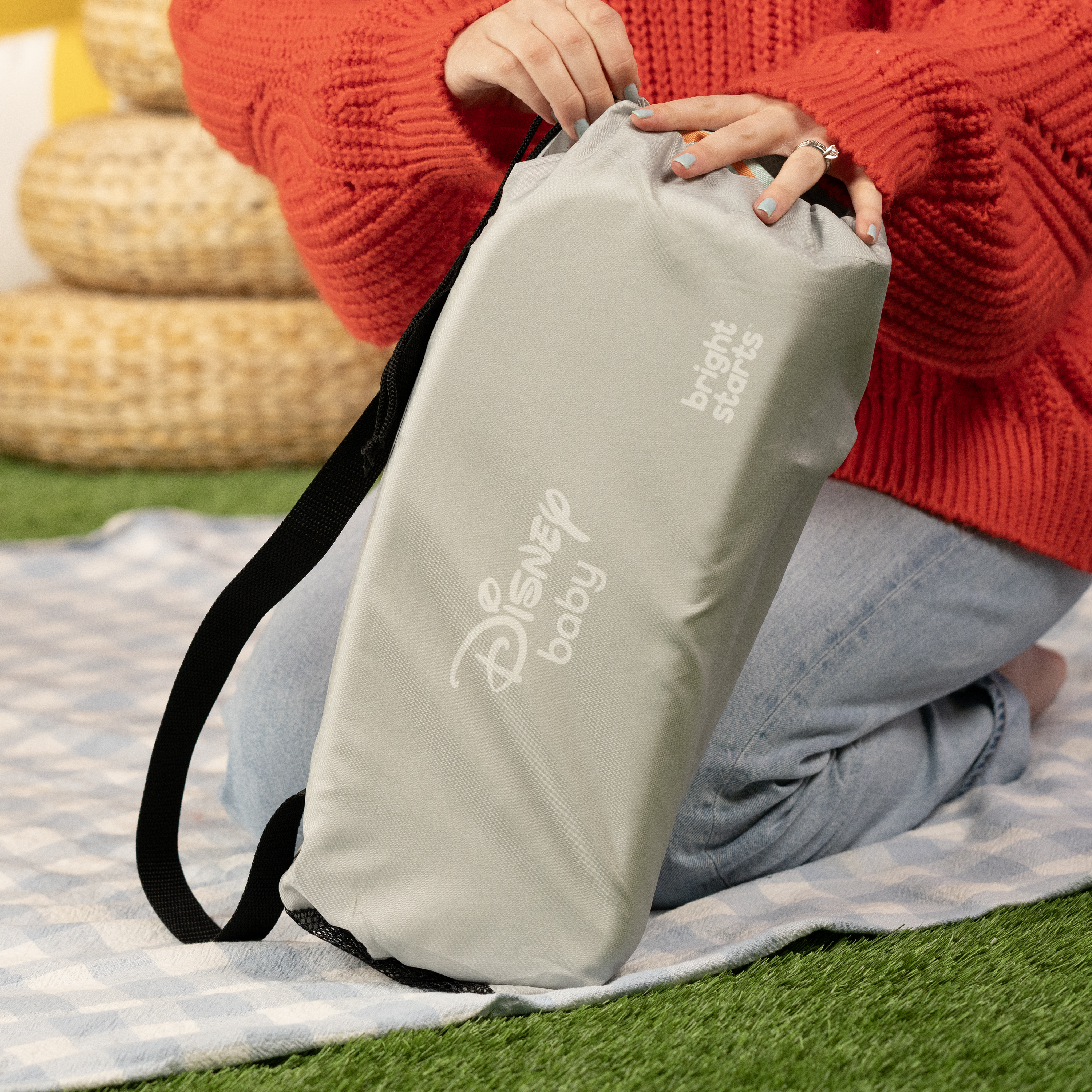 - 室内室外均可安全使用。无论是在公园野餐、露营还是去外婆家做客,只需拉上座椅,宝宝就有专属自己的座位;还随附一个带肩带的手提袋,供您在所有冒险活动中轻松带上