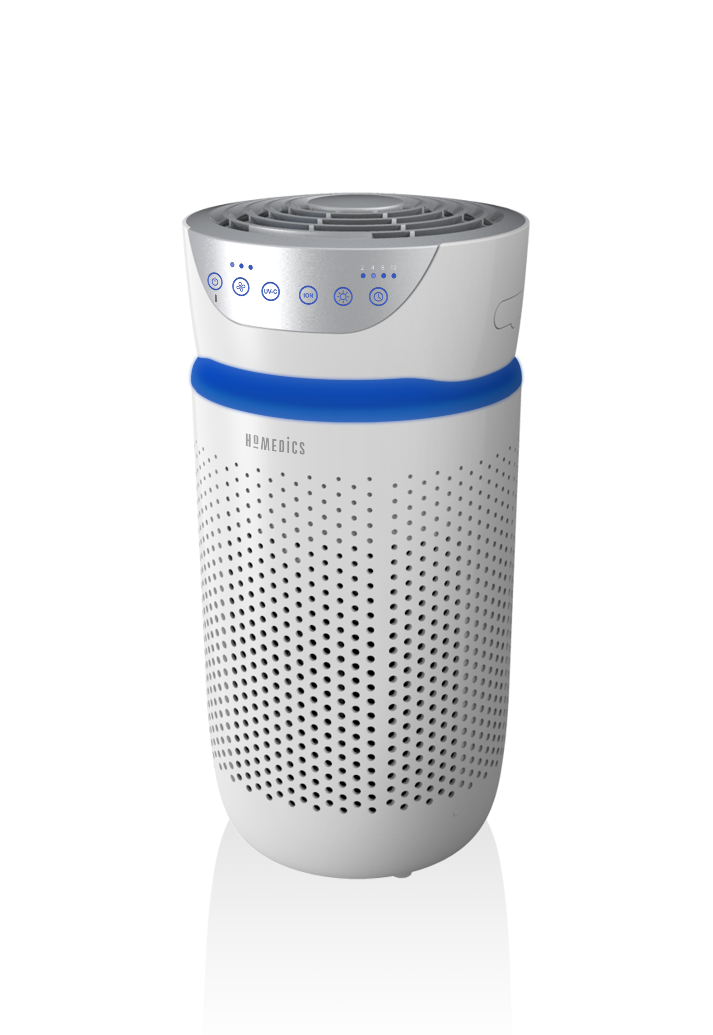Retail Product Title HoMedics 5 in 1 TotalClean™ Air Purifier - Small Short Retail Product Title (60) HoMedics 5 in 1 TotalClean™ Air Purifier - Small Short Description A 360° HEPA-Type filtration system removes up to 99.0% of airborne allergens as small as 0.3 mircons. It also captures and removes pollen, dust, smoke, pet dander, mold spores and germs. UV-C light helps to kill germs, bacteria and viruses. Long Description With a 360° HEPA-Type filtration that removes 99.0% of airborne bacteria and allergens, the HoMedics 5 in 1 TotalClean Air Purifier helps you and your family breathe easier at home. Not only does the HEPA filtration system kill germs and viruses as small as 0.3 microns but it removes odours as it works and lasts 5 times as longer than a conventional filter. With 3 speeds, a night mode for uninterrupted use whilst you sleep and replacement filter indicators, you can rely on the 5 component parts within the purifier to leave you with a cleaner and fresher smelling home. Feature 1 Suitable for small-sized rooms up to 75.8M²/H / 816FT²/H Feature 2 HEPA-Type Filtration & Carbon Odour Filtration Feature 3 UV-C Light - Kills Germs, Bacteria and Viruses Feature 4 4.8 Air Changes Per Hour Feature 5 Essential Oil Aroma Tray & 3 Oils Pads Feature 6 Nightlight - Display light turns off when in night mode
