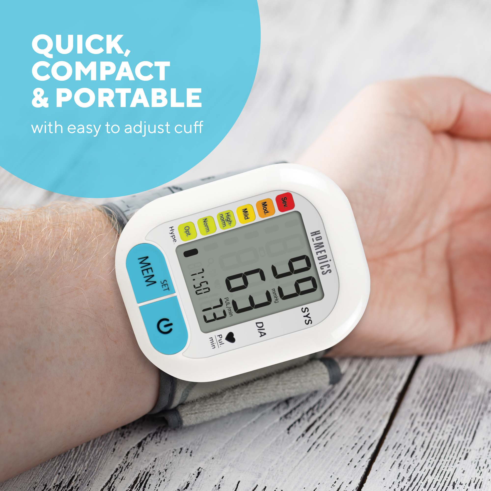 Retail Product Title HoMedics Automatic Wrist Blood Pressure Monitor Short Description HoMedics Automatic Wrist Blood Pressure Monitor Feature 1 Medical Device Feature 2 Quick, Compact & Portable Feature 3 Single user, 60 memories Feature 4 Last 3 Results Average Function Feature 5 World Health Organisation Hypertension Indicator Feature 6 Irregular Heartbeat Detection - Arrhythmia Detection