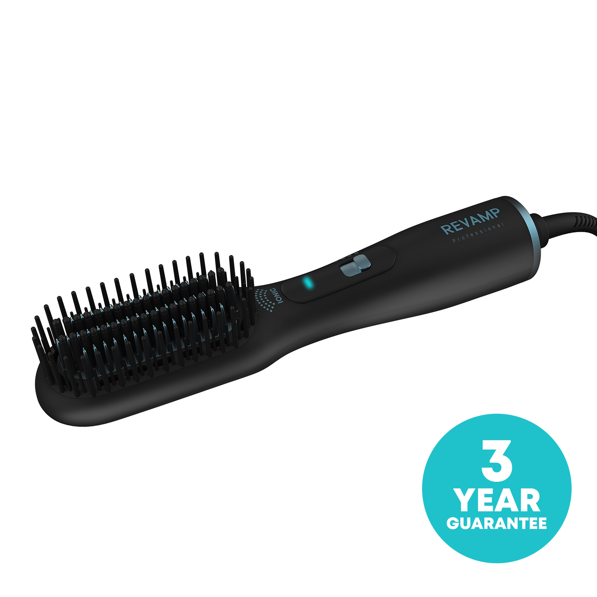 Retail Product Title Revamp Progloss Deepform Straight & Style Blow Dry Brush Short Retail Product Title (60) Revamp Progloss Deepform Straight & Style Blow Dry Brush Short Description Combine drying, brushing and styling together with the Revamp Progloss Deepform Straight & Style Blow Dry Brush. This styler can be used as an air styler or hot straightening brush, on wet and dry hair. Built with adjustable settings to allow for complete control of the airflow and temperature. The combination of deeper detangling bristles and ceramic straightening bristles allow for large sections of hair to be styled. Powerful ionic jets work to tame frizz and create salon-smooth results. Feature 1 550W hot air styler and heated brush: Hot Air for use on Wet Hair - Dry, Smooth & Style, Hot Brush for use on Dry Hair - Style, Smooth & Straighten Feature 2 DeepForm bristles for super-fast flawless styling - deeper detangling to style larger sections at one time with less damage Feature 3 3 Adjustable heat and air settings: Gentle speed & kind heat airflow setting, Fast speed & high heat airflow + hot brush kind heat setting (160ºC) and Hot brush high heat setting (210ºC) - no airflow Feature 4 Progloss™ super smooth oils Keratin, Argan and Coconut infused ceramic bristles and plate for ultimate smoothness Feature 5 Lightweight and Functional design for ease of use and extra comfort while styling Feature 6 Ceramic bristles and 2 x Powerful Ion jets for Silky, Shiny and Frizz-free hair results