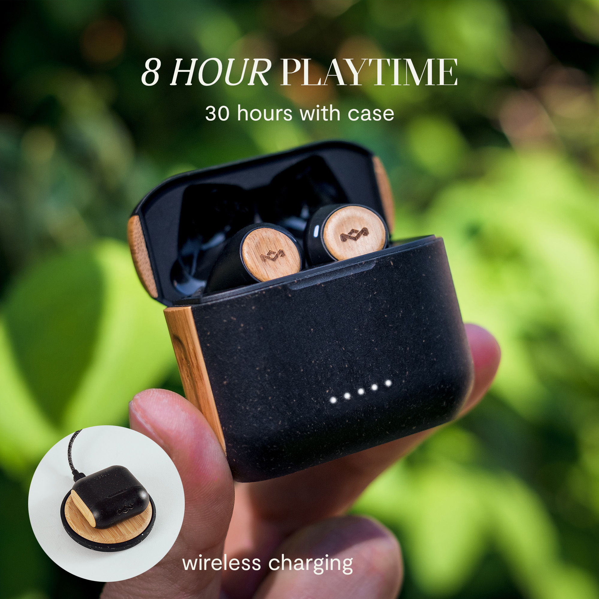 Retail Product Title Rebel True Wireless Earbuds Short Retail Product Title (60) Rebel True Wireless Earbuds Short Description Free your mind and your music with Rebel, offering a True Wireless Audio experience in a compact and elegant design. Dive into the details of your favourite songs with Rebel's ultra-comfortable and noise-isolating ear tips. With 8 hours of playtime from a single charge, the portable charging case offers 3 additional charges so you can keep the music flowing all day long. Consciously crafted from natural bamboo, Rebel lets you listen with purpose from a product with purpose. Long Description Crafted with Sustainable Materials 8 Hour Battery Life, 30 Hours with the Case Sweat and Water-Resistant Design (IPX5 Certified) Ear Housing Touch Control Call Noise Cancellation Wireless Charging Free your mind and your music with Rebel, offering a True Wireless Audio experience in a compact and elegant design. Dive into the details of your favourite songs with Rebel's ultra-comfortable and noise-isolating ear tips. Consciously crafted from natural bamboo, Rebel lets you listen with purpose from a product with purpose. Balanced Audio Expertly crafted to deliver the "Marley Signature Sound", listen your way with our Rebel True Wireless Earbuds. Rebel is engineered with Bass Boost EQ modes that intensify the depth and texture of every beat to enhance your favourite songs. Earth-Friendly, Planet-Kind Every material we use to craft our headphones, speakers and in-earphones is carefully chosen to give back to Mother Earth. We choose bamboo for its natural wood feel, and carbon-positive process. To reduce our impact on landfill resources and pollution, we have only used recycled plastics to house the Rebels safely in their charging case. Embrace your natural style with Marley’s message of craftsmanship and sustainability. Soulful Touch Pause. Play. Change Track. Not just actions for life’s most incredible moments but, how you can enjoy your music too. With a light touch to an earbud, you can skip to the next track on your playlist, accept calls, adjust your volume, hit play/pause and even access your devices voice assistant when you need to. You’ll never miss a beat with an automatic pause/play by simply removing the buds from your ears, your music will stop and then resume upon replacing them. 30+ Hours Of Playtime The Rebel true wireless earbuds can hold up to 8 hours of uninterrupted playback and crystal-clear call time, with an additional 3.5 charges held in the sleek and portable case. Plug into any USB-C charger or place it on a wireless charging pad, and you’ll be tapping into more than 30 hours of playtime. Powerful Playback A powerful combination of unbeatable Bluetooth connection, sweat-proof and water-resistant materials (to an IPX5 rating), and Call Noise Cancellation that fades out distracting background noises make these the best rechargeable earpod headphones for work, sports and travel. You can find your perfect rhythm with the adjustable EQ settings at your fingertips, switching from Marley’s signature EQ to the new Bass Boost EQ with a triple tap on either earbud. Feature 1 Featuring Bass Boost EQ modes that intensify the depth and texture of every beat to enhance your favorite songs Feature 2 Offering 8 hours of playtime from a single charge, while the charging case offers 30 hours total Feature 3 Wireless Charging – Place the Rebel earbud case on any wireless charger Feature 4 Echo noise cancelling mircophone for convenient hands-free calling Feature 5 Ear Housing Touch Control - you can skip to the next track on your playlist, accept calls, adjust your volume, hit play/pause and access your devices voice assistant Feature 6 Crafted from sustainable materials