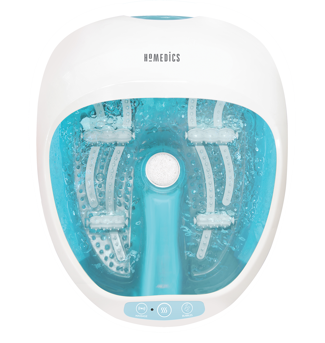 Retail Product Title Homedics Luxury Footspa with Heater Short Retail Product Title (60) Homedics Luxury Footspa with Heater Short Description Soak away the stress and enjoy a few mindful moments courtesy of the Homedics Luxury Footspa with Keep Warm Technology. Featuring four rollers, exfoliating pumice stones and a vibration massage setting, this footspa offers a little luxury in the comfort of your own home. The built-in bubble spa ensures your experience is a relaxing, rejuvenating one – while the Keep Warm Technology promises an ongoing temperature that sits between 40°C and 45°C when you fill the basin with warm water. Long Description Soak away the stress and enjoy a few mindful moments courtesy of the Luxury Footspa with Keep Warm Technology. Featuring four rollers, exfoliating pumice stones and a vibration massage setting, this footspa offers a little luxury in the comfort of your own home. The built-in bubble spa ensures your experience is a relaxing, rejuvenating one – while the Keep Warm Technology promises an ongoing temperature that sits between 40°C and 45°C when you fill the basin with warm water. For an even more soothing sensation, gently slide your feet over the acu-nodes and move the soles of your feet over the rollers for a deep, relaxing massage. Enhance your circulation by way of the vibration massage setting, exfoliate with the pumice stones and relax when you use the bubble spa. • Footspa with Keep Warm Technology to maintain water temperature • 4 massage rollers; 2 interchangeable pumice stones, stimulating acu-nodes, vibration massage setting and bubble spa feature • Easy toe-touch control • Designed for all foot sizes up to UK 12/EU 47 • 3-year guarantee Feature 1 SORE FEET, SORTED Offers an invigorating experience for the feet by way of acu-nodes and massage rollers Feature 2 SELF-CARE MADE SIMPLE Promises a straightforward, stress-free experience with toe-touch control, lightweight design and easy-to-use features Feature 3 RELAX & REJUVENATE Provides the ultimate restoration session with the exfoliating pumice stones, vibration massage and bubble spa Feature 4 CIRCULATION & SOFTNESS Ensures improved circulation and exfoliated skin for feet that feel good on the inside and out