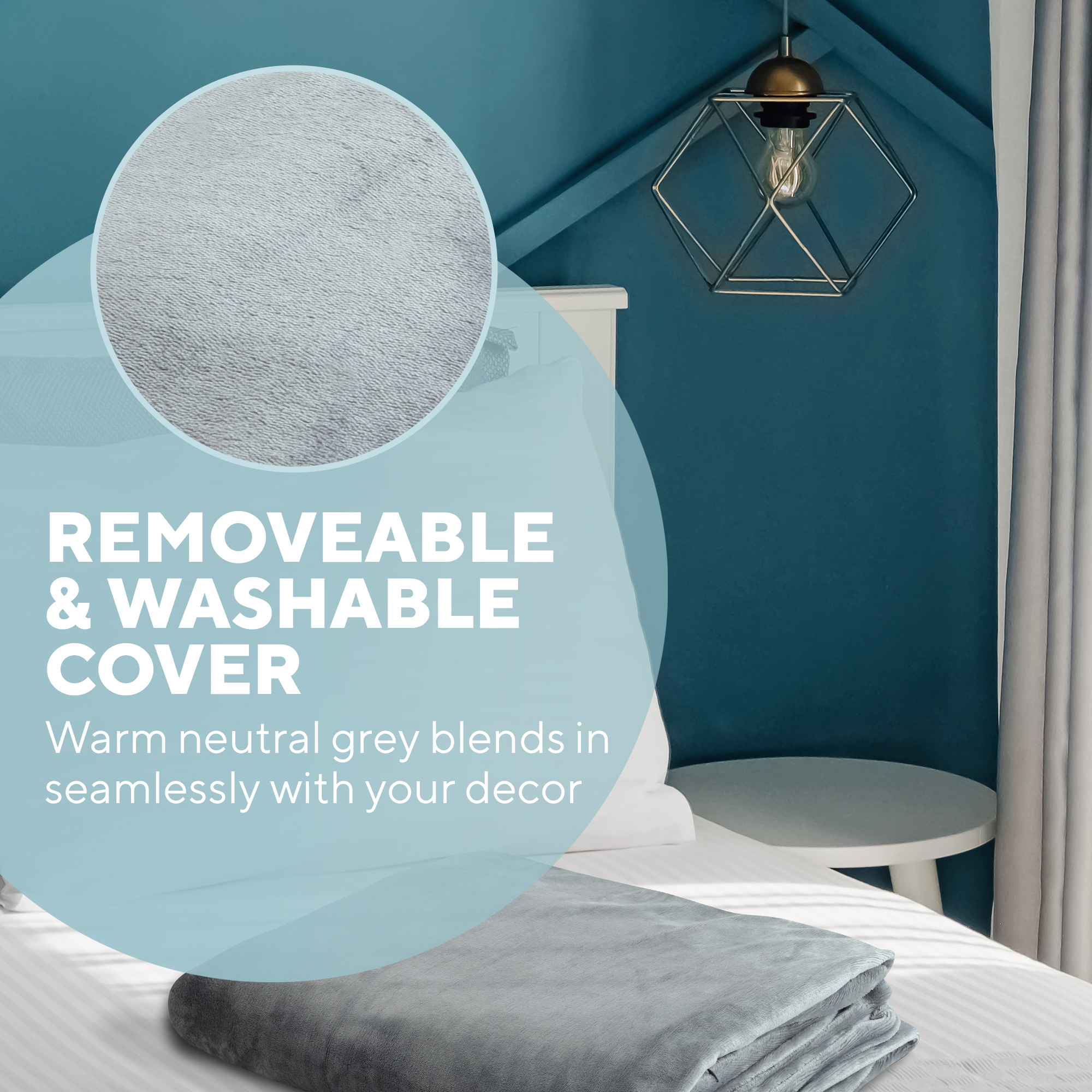 - The HoMedics Weighted Blanket feels like a big hug. Engineered to facilitate calmness, let your anxiousness melt away and feed grounded. Perfect for winter, the plush fabric is super soft to the touch. The cover is removeable and washable so you can enjoy the fresh, soft feeling time and time again.