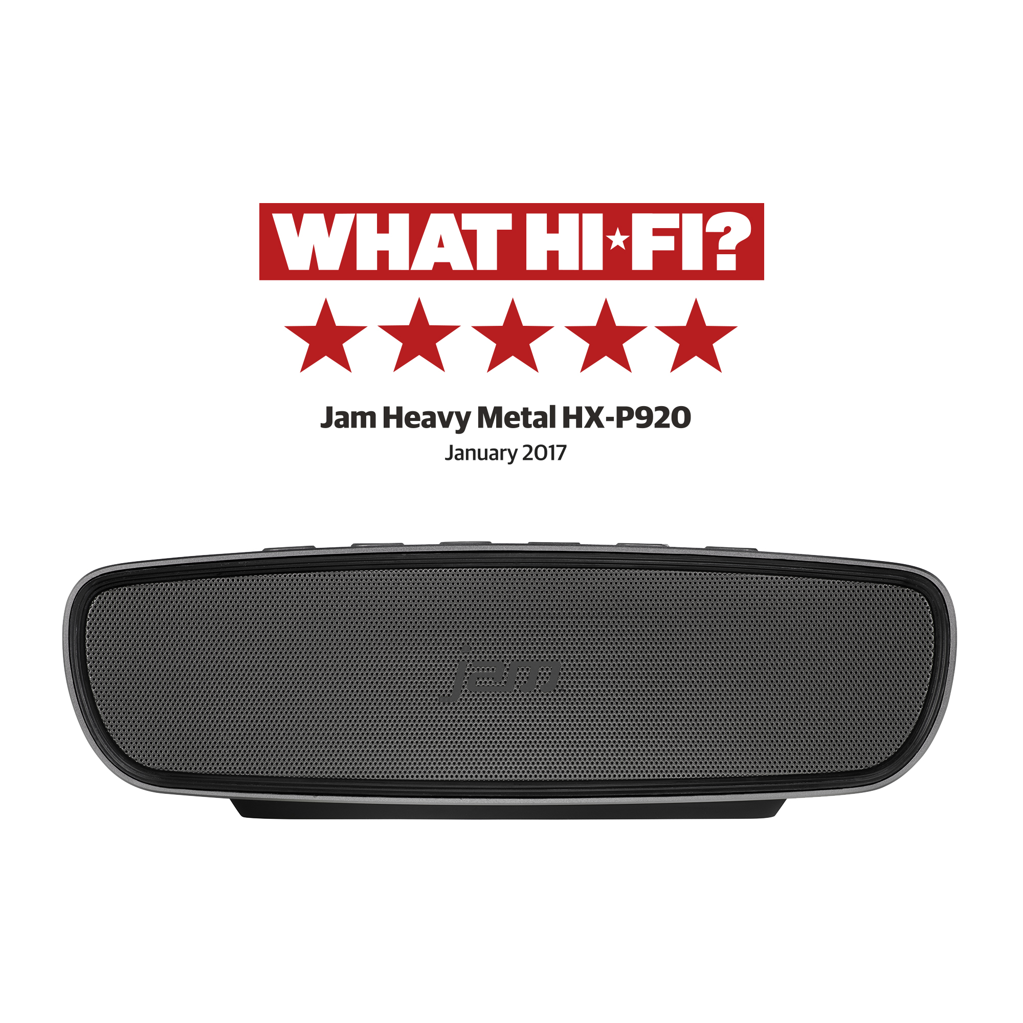 Retail Product Title JAM Heavy Metal Bluetooth Speaker Short Retail Product Title (60) JAM Heavy Metal Bluetooth Speaker Short Description For those who like it heavy, fill the room with massive sound, roaring bass and screaming lyrics with the JAM Heavy Metal Bluetooth Speaker. The most lifelike stereo in the Jam range, you can rely on the Heavy Metal to give you high-intensity sound, and with up to eight hours of play time keep it heavy all day. With an anodized aluminium Exterior its also durable with a sleek and stylish finish. Long Description For those who like it heavy, fill the room with massive sound, roaring bass and screaming lyrics with the JAM Heavy Metal Bluetooth Speaker. The most lifelike stereo in the Jam range, you can rely on the Heavy Metal to give you high-intensity sound, and with up to eight hours of play time keep it heavy all day. With an anodized aluminium Exterior its also durable with a sleek and stylish finish. Bluetooth And Aux-In Connect seamlessly to hundreds of personal wireless and Bluetooth devices within a 10-metre range. Want to connect to a non-Bluetooth device? No problem. The Heavy Metal comes with a standard aux-in port. 'Can't fault it. I needed something sturdy, loud enough to be heard above a marine diesel engine and with a battery life in excess of 8 hours. The JAM Heavy Metal has lived up to its expectations. The metal case gives it a reassuring weight and strips on the bottom help secure it against slipping. You're never going to get earth shattering bass from a small speaker but it does a reasonable job of articulating those low notes. Mids and highs are great. The battery lasted the 8 hours required of it.' - Customer Review Heavy Metal For those about to rock, we salute you! Enjoy your music loud and proud with the JAM Heavy Metal wireless Bluetooth speaker. Fill the room with roaring bass and screaming lyrics. You can rely on the JAM Heavy Metal to give you high-intensity sound. Rechargeable Premium Style USB rechargeable battery for a playtime of up to 8 hours. Designed to look great too, extruded from anodised aluminium with chamfered edges. 5 Stars From What Hi-Fi “A full sound from a well-made, good-looking slab of metal”. With dual precision tuned drivers and a dual passive bass radiator, the heavy metal’s 20W stereo sound is the most lifelike of any speaker in the JAM collection. Feature 1 Bluetooth® Feature 2 8 Hour Playtime Feature 3 Speakerphone Feature 4 Explosive Sound Dual drivers and a dual passive bass radiator