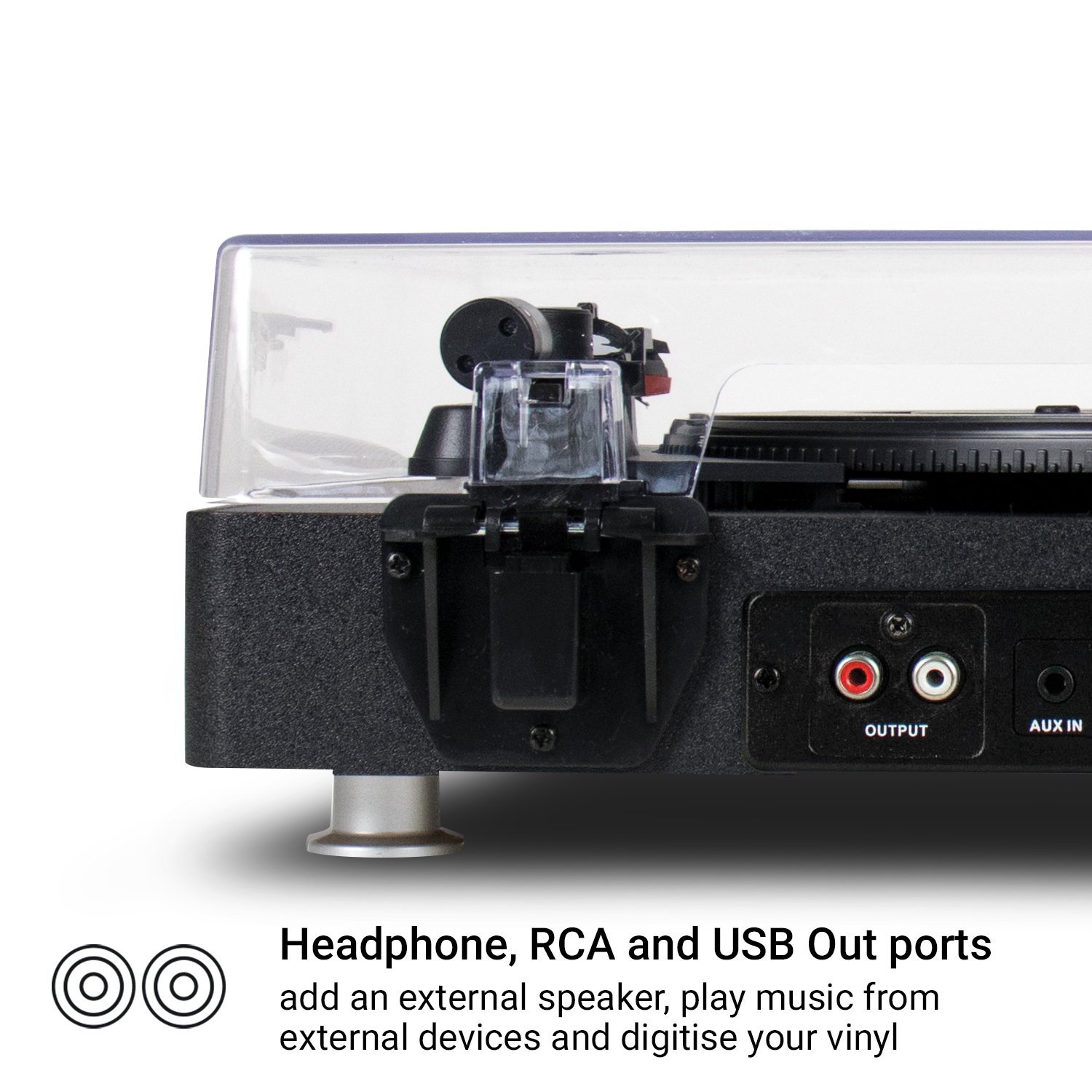 Retail Product Title Jam Stream Turntable Short Retail Product Title (60) Jam Stream Turntable Short Description Enjoy your digital and analogue music collections in one place with the JAM Stream Turntable. This turntable comes equipped with wireless connectivity that lets you stream records wirelessly to any Bluetooth® speaker. With a dust cover to protect your JAM Sound Stream Turntable, it is sure to occupy a permanent place in your home. Long Description Enjoy your digital and analogue music collections in one place with the JAM Stream Turntable. This turntable comes equipped with wireless connectivity that lets you stream records wirelessly to any Bluetooth® speaker. With a dust cover to protect your JAM Sound Stream Turntable, it is sure to occupy a permanent place in your home. Just Add Vinyl Rediscover your classic albums with the JAM Stream Turntable. Simply pair the turntable with your Bluetooth speaker and enjoy fuss-free connectivity. Suitable for 33 ¹/₃, 45, 78 RPM records. Bluetooth® Connectivity Using modern technology doesn’t mean you can’t go down the classic route of music. Get rid of the messy connection wires as the JAM Stream Turntable lets you seamlessly listen to the sounds of your treasured record collection wirelessly to any Bluetooth® speaker! Warm, Rich Sounds Delve into the depth of your vinyl collection because there is nothing quite like the sound of one. The warm rich sounds can fill any room. With Wireless connectivity, RCA Output and AUX-IN, you can ace streaming music to external devices. Digitise Your Vinyl Convert your vinyl to mp3 when you plug it into your PC or Mac, and download files to your smartphone or tablet, for easy listening on the go. Enjoy your favourite artists across a range of formats, wherever you are. Protective Cover Stepping back into the vinyl market does not ask you to compromise. Don’t worry about your platter or stylus getting dust as the Jam Stream Turntable comes with a built-in dust cover. Feature 1 Wirelessly Stream your vinyl's Feature 2 3 Speeds –Belt drive Feature 3 Autostop Feature 4 USB out to digitise you vinyl