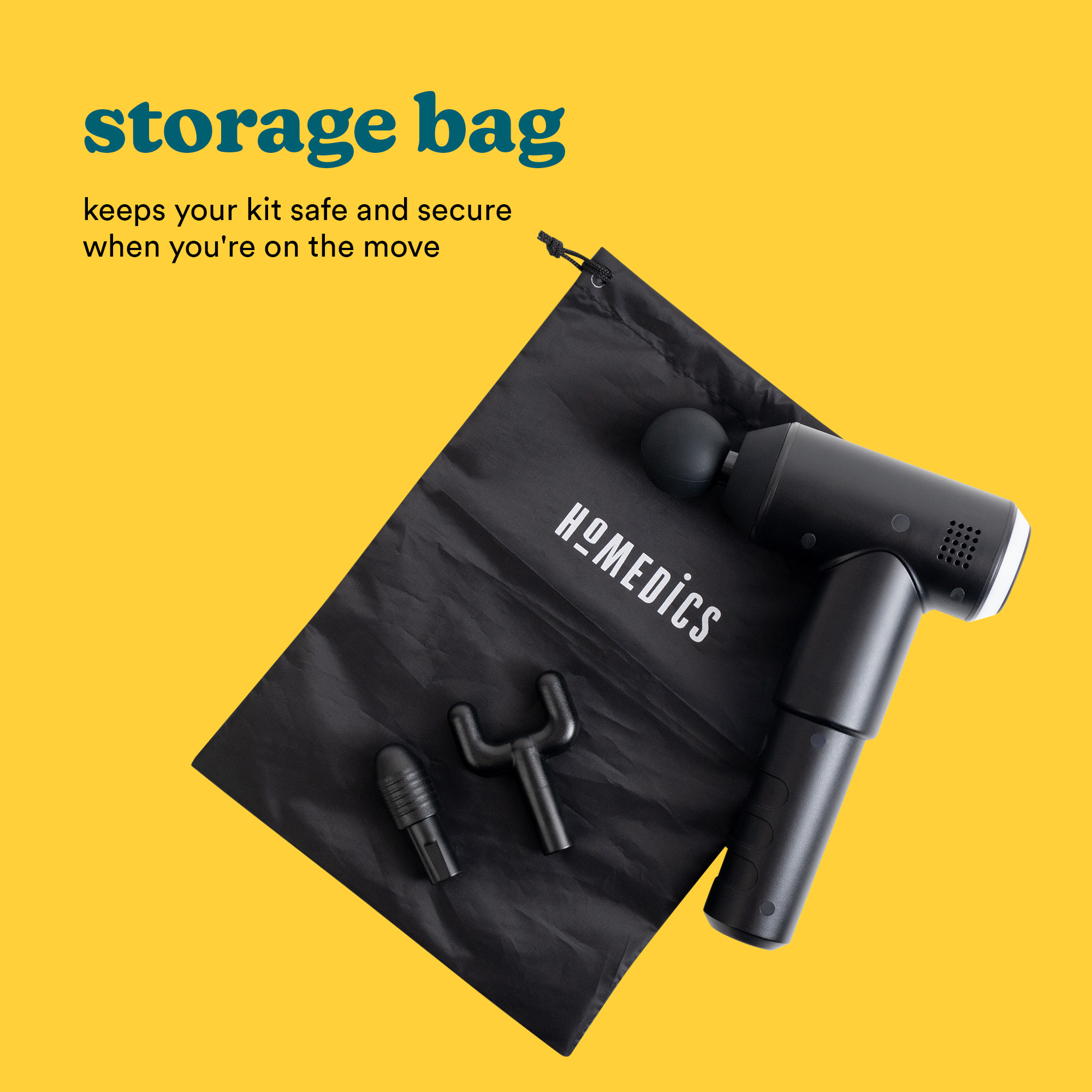 Retail Product Title Homedics Physio Massage Gun [Black] Short Description Designed to ease muscle tension and promote recovery, the Homedics Physio Massage Gun uses a high frequency pulse action to penetrate deep into muscle tissue. Ideal for use both before and after exercise, this massage gun warms up your muscles prior to your workout, and eases soreness and cramps when your session is finished - but it's not just for those with a gym membership. It soothes feet and calves after sitting or standing for large parts of the day too. Rechargeable for on-the-go use, it comes with 3 massage heads and offers 3 intensity settings. 3 interchangeable massage heads 3 intensity levels Rechargeable 1-hour battery life Suitable for use on Storage bag and USB charging cable included 3-year guarantee Long Description 3 interchangeable massage heads 3 intensity levels Rechargeable 1-hour battery life Storage bag and USB charging cable included 3-year guarantee Homedics Physio Massage Gun Designed to ease muscle tension and promote recovery, the Homedics Physio Massage Gun uses a high frequency pulse action to penetrate deep into muscle tissue. Ideal for use both before and after exercise, this massage gun warms up your muscles prior to your workout, and eases soreness and cramps when your session is finished - but it's not just for those with a gym membership. It soothes feet and calves after sitting or standing for large parts of the day too. Rechargeable for on-the-go use, it comes with 3 massage heads and offers 3 intensity settings. Deep Tissue Percussion Massager The Homedics Physio Massage Gun is designed to provide you with a deep tissue percussion massage, helping to release tight aching muscles. To use, choose your desired massage head and intensity level and gently move the massager over the part of your body you wish to massage. Interchangeable Massage Heads This massage gun includes different massage head attachments. These allow you to customise your massage and reach every muscle. The round head attached is most suitable for massaging large muscle groups, including your arms, waist, back, buttocks, and thighs. The conical massage head is great for targeting trigger points and small specific areas, such as feet. The U-shaped attachment is suitable for trapezius muscles, areas around the Achilles tendon muscle, ankle muscle and calf muscles. Three Intensity Levels Using the one-button control, you can easily adjust the speed of the intensity of your massage to suit your needs and customise your massage experience. Choose from three intensity levels: low, medium or high. Rechargeable For ease of use, the Homedics Physio Massage Gun is equipped with cordless operation. Offering up to one hour of usage from a full charge, this massage gun should be used for up to 30 minutes at a time for optimal results. Lightweight Design The lightweight design of the Homedics Physio Massage Gun means it's easy to use and travel with. Thanks to the ergonomically designed handle, it's comfortable to hold and carry. Storage Bag Ideal for use at home, in the gym or on-the-go, this massage gun comes with a storage bag to keep your kit safe and secure when you're on the move. Feature 1 3 interchangeable massage heads Choose from the conical, U-shaped or round massage heads for targeted relief across the body Feature 2 3 different intensities For a massage experience tailored to you Feature 3 Cordless operation Allows for on-the-go use wherever you are Feature 4 1-hour battery life Ideal for two massage sessions of up to 30 minutes each Feature 5 Storage bag included For safe storage in a gym bag or suitcase Feature 6 Push button control For ease of use and control