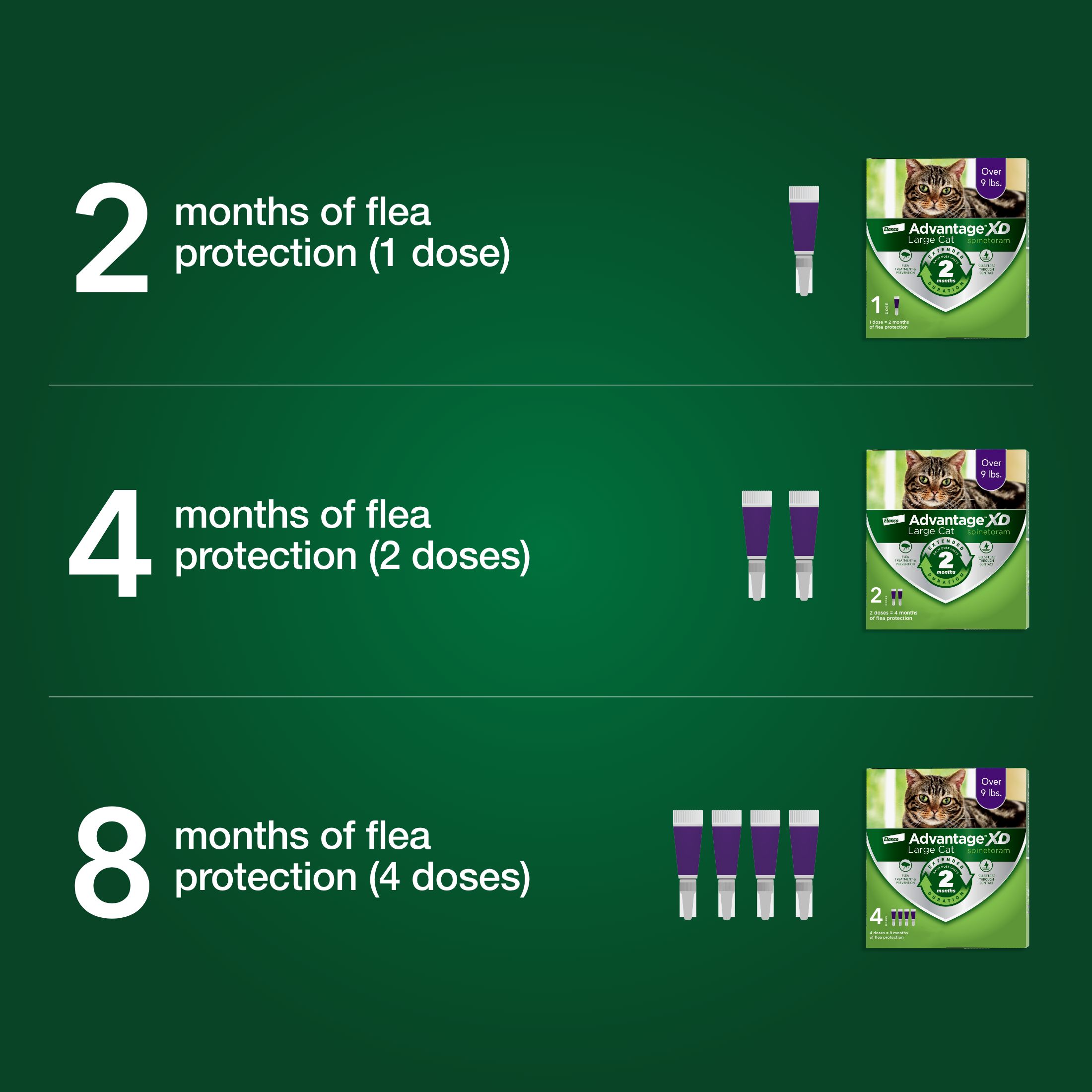 Advantage XD Large Cat Flea Prevention & Treatment For Cats over 9lbs. | 4-Topical Doses, 2-Months of Protection Per Dose