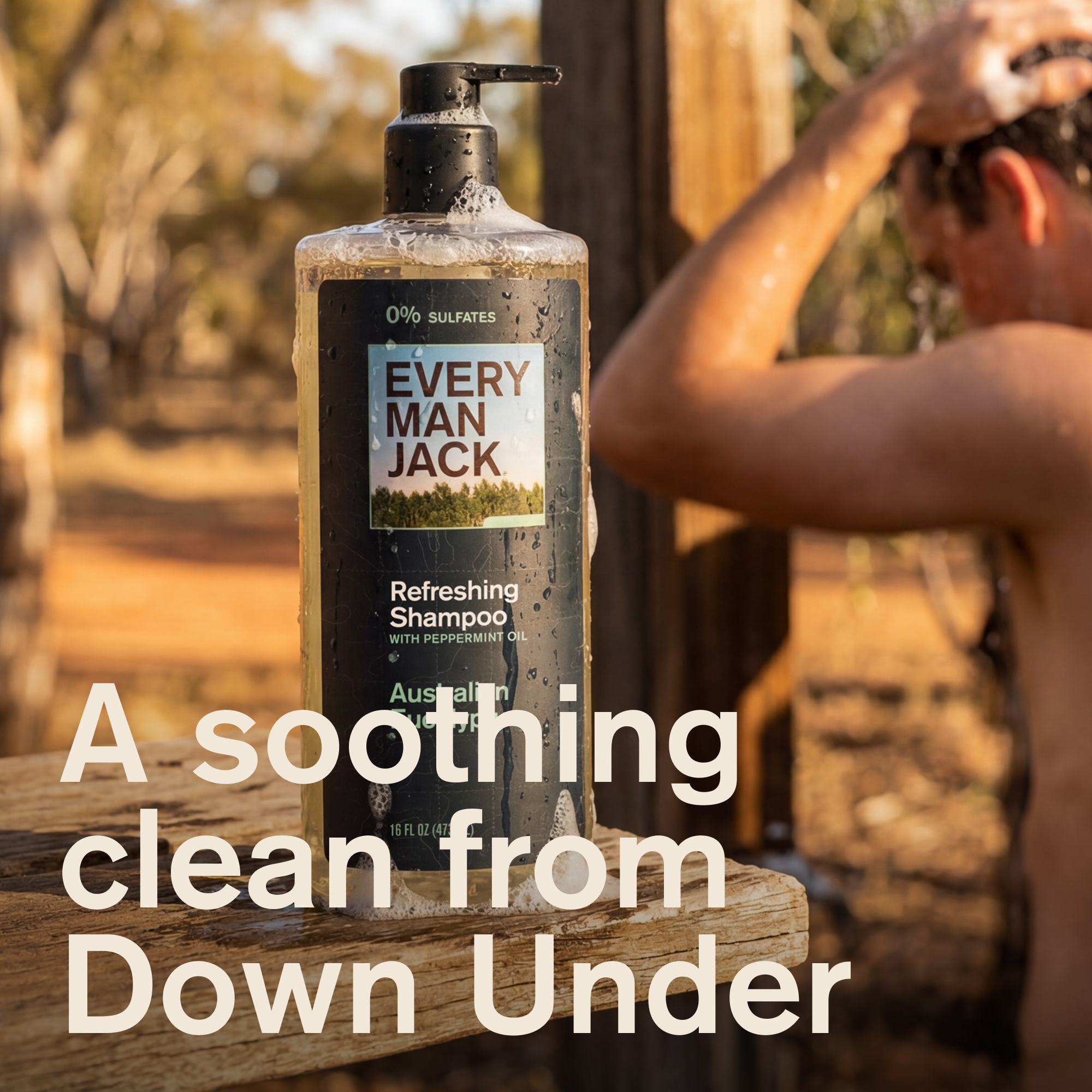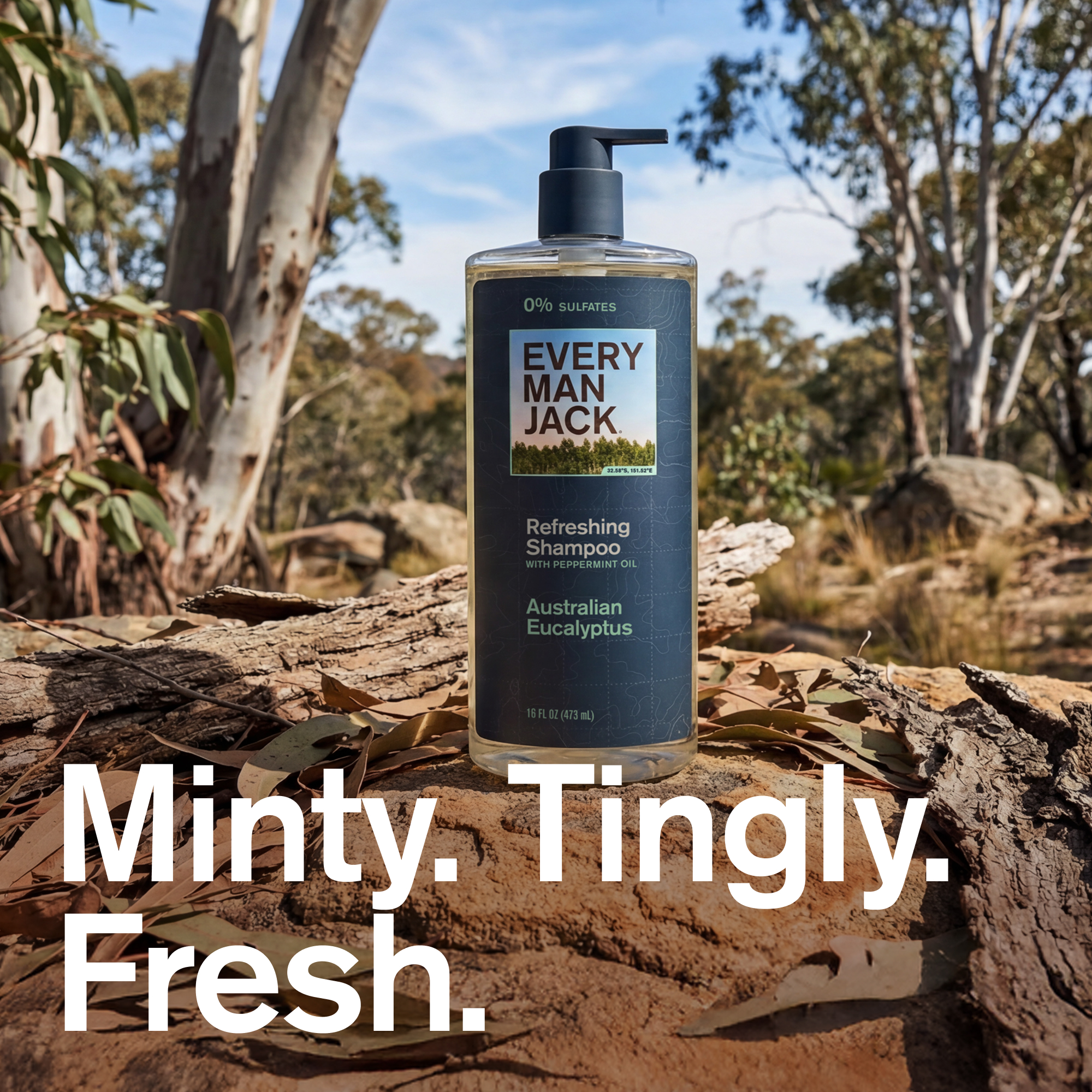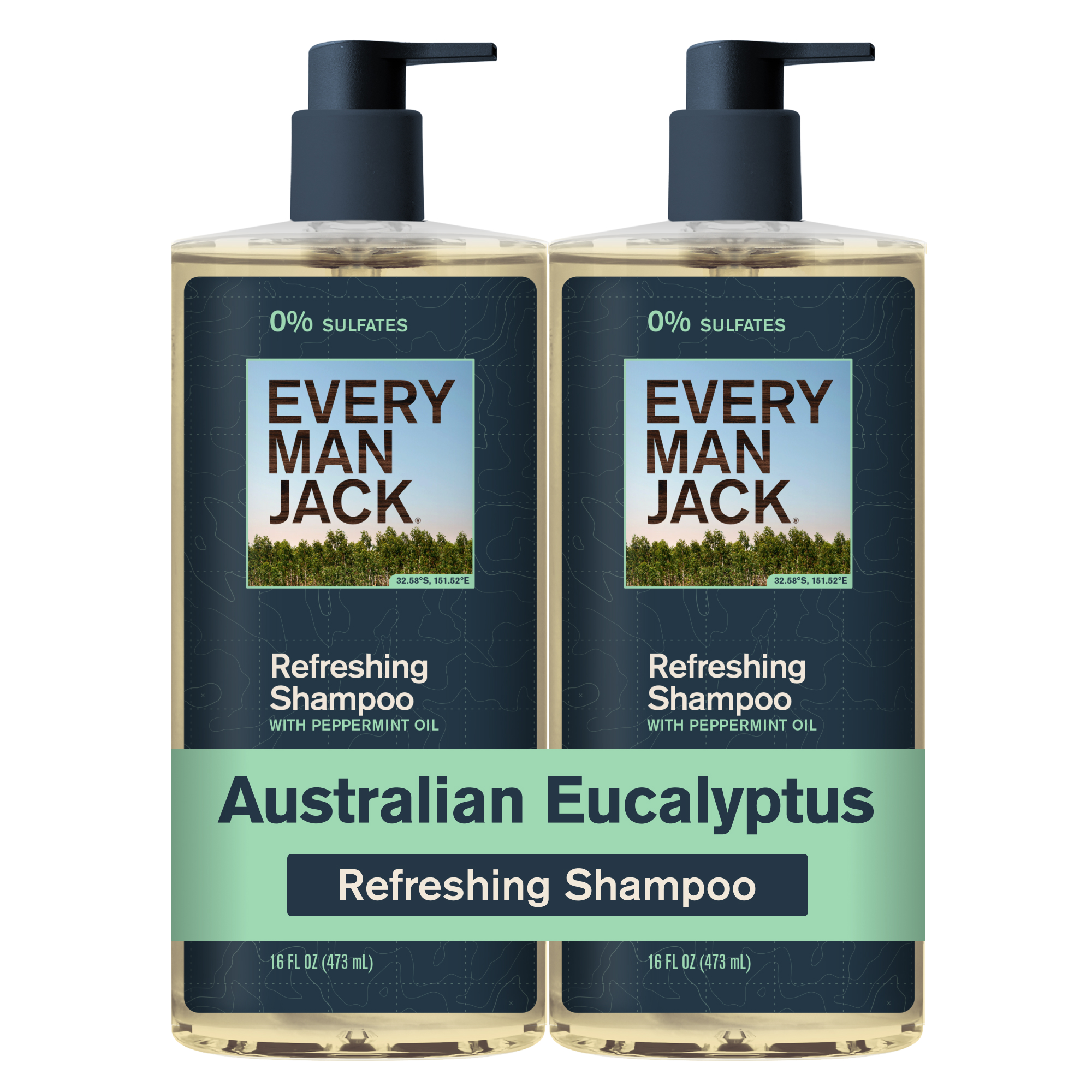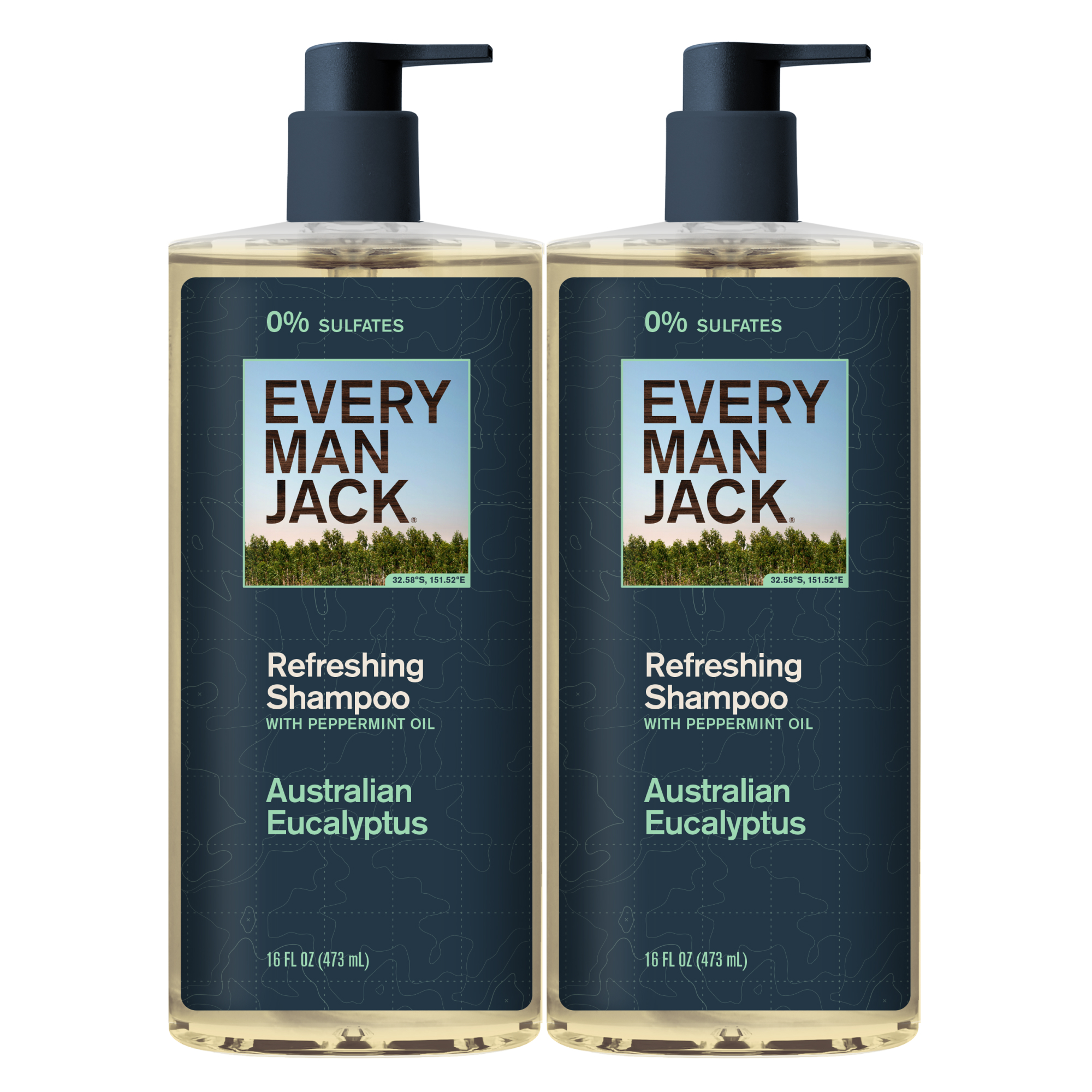 | Amazon Product Description | Every Man Jack Men's Shampoo - Australian Eucalyptus - Made w/Plant Powered Refreshing Ingredients like Peppermint & Jojoba Oil - 16 fl oz (2 Pack)</br> Wake up your shower routine with the Every Man Jack Men’s Shampoo and Conditioner Set in Australian Eucalyptus. The deep-cleansing shampoo gently washes away buildup while invigorating your scalp with a refreshing tingle, and the moisturizing conditioner provides lasting hydration. Infused with a crisp, minty eucalyptus scent inspired by the wilds of Australia, this set leaves hair feeling clean, smooth, and energized. Made with naturally derived ingredients like peppermint oil, eucalyptus extract, jojoba oil, and vitamin E, these formulas are crafted without sulfates or harsh chemicals. Specially designed for men, they work for every hair type, from straight and fine to thick and curly.</br> Every Man Jack is made in the USA and trusted by millions of men worldwide. Born at the base of Mt. Tam, the brand is a Certified B Corp dedicated to clean grooming powered by effective, plant-based ingredients. Start your next adventure with Every Man Jack. |