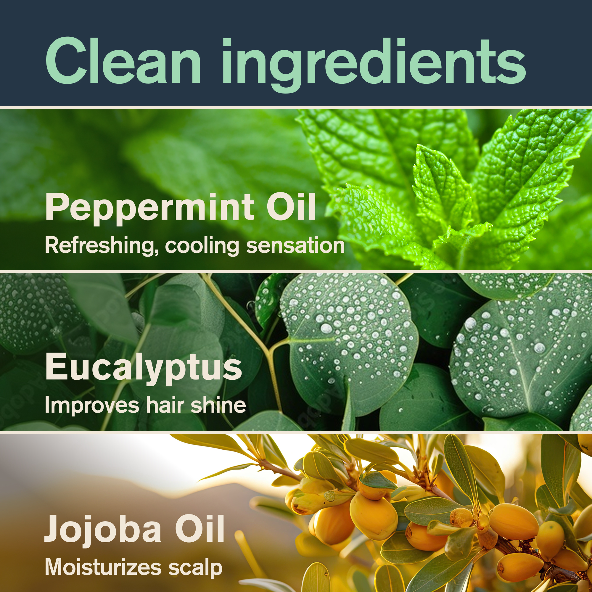 | Bullet Point 2 | NATURALLY DERIVED INGREDIENTS: Made with clean, effective ingredients including Peppermint Oil, Vitamin E, Eucalyptus Extract, and Jojoba Oil. Formulated safe with no sulfates and no harsh chemicals. |