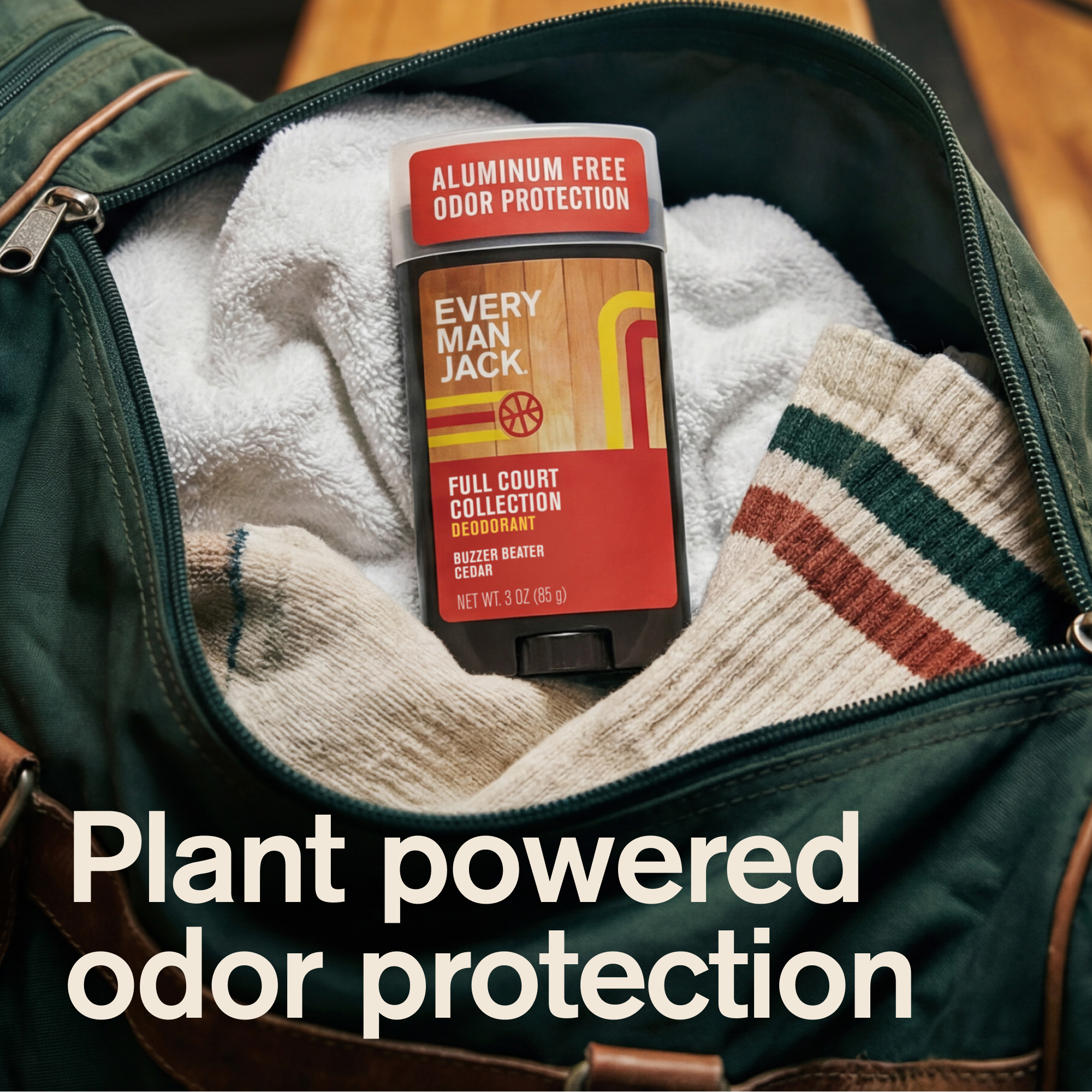 | Name | Every Man Jack Full Court Collection Buzzer Beater Cedar Men’s Deodorant - Stay Fresh with Aluminum Free Deodorant For all Skin Types - Odor Crushing, Long Lasting, with Naturally Derived Ingredients - 3 oz |