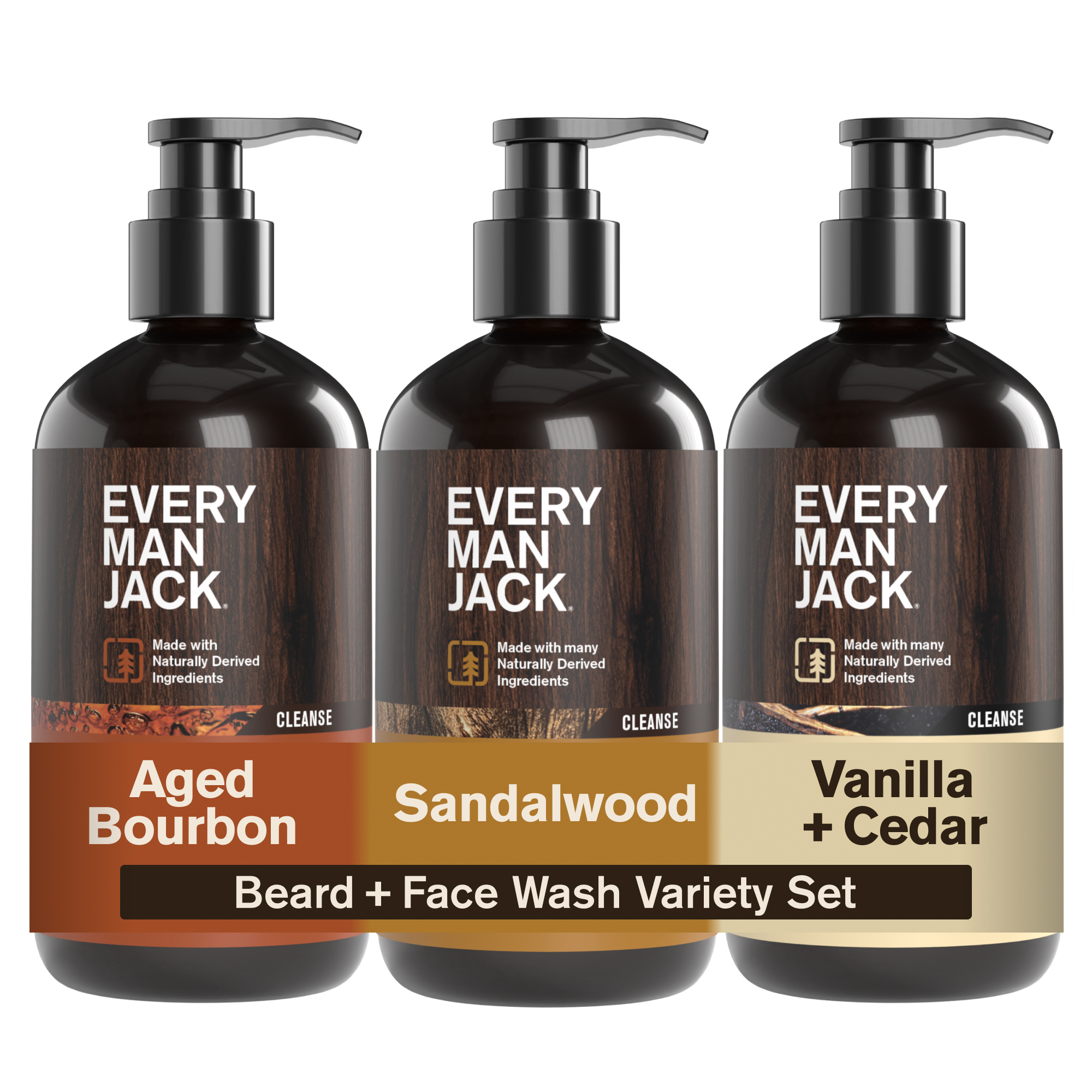 | Name | Every Man Jack Beard Wash Variety Pack for Men – Full Size 3-Pack Variety with Sandalwood, Vanilla + Cedar & Aged Bourbon Scents – Naturally Derived w/Aloe and Glycerin – 6.7 fl oz (3 Pack) |