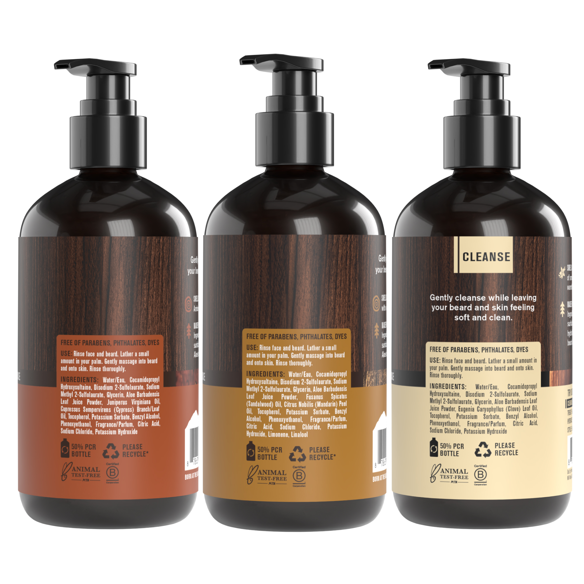 | Short Name | Beard + Face Wash - Sandalwood, Vanilla + Cedar, Aged Bourbon Bundle - 6.7 fl oz - 3 Pack |