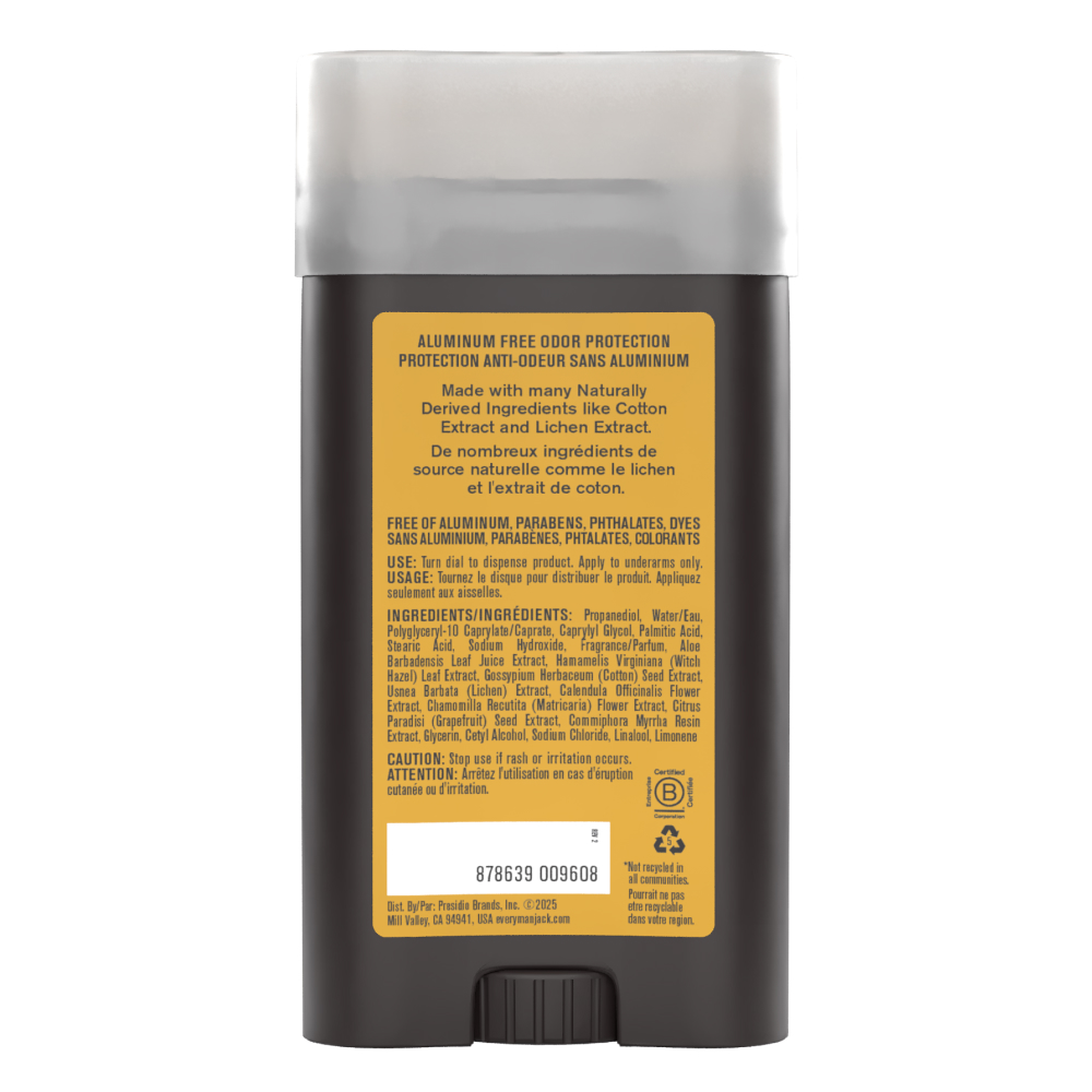 | Product Description | Long-lasting odor protection for every skin type. Each stick is packed with moisture absorbing Cotton Extract and Lichen Extract to help fight odor while corn-derived propanediol instead of aluminum conditions the skin. |